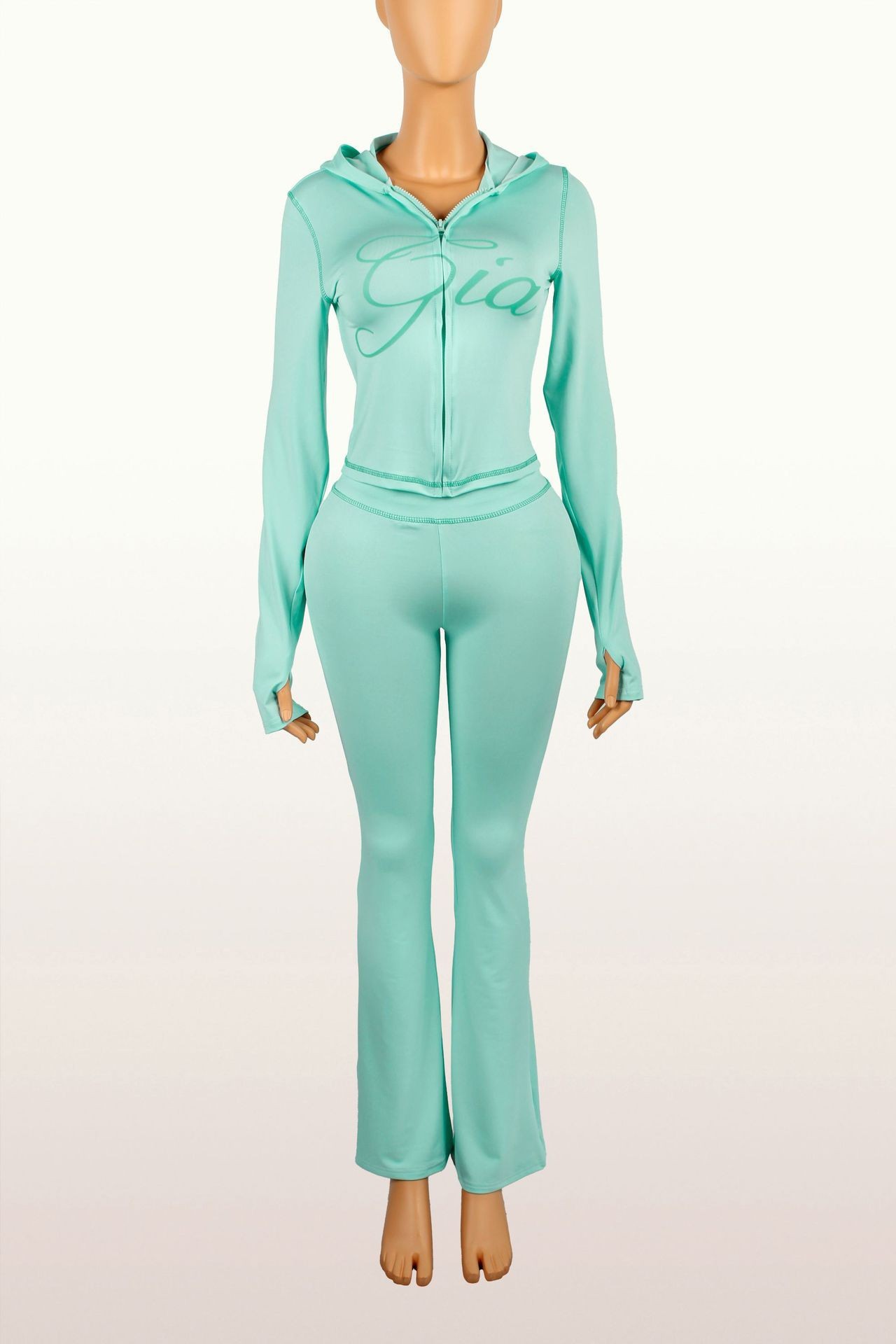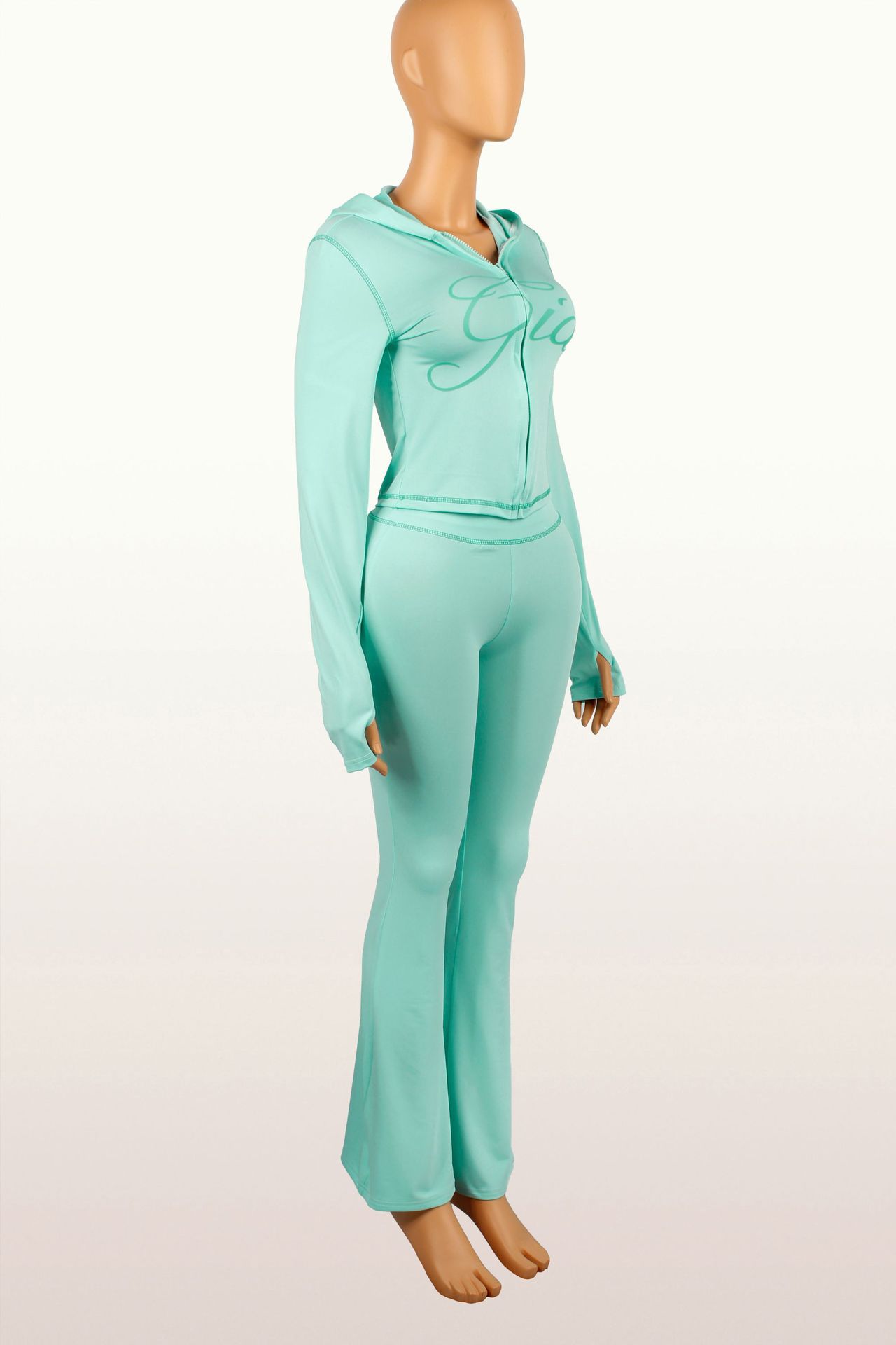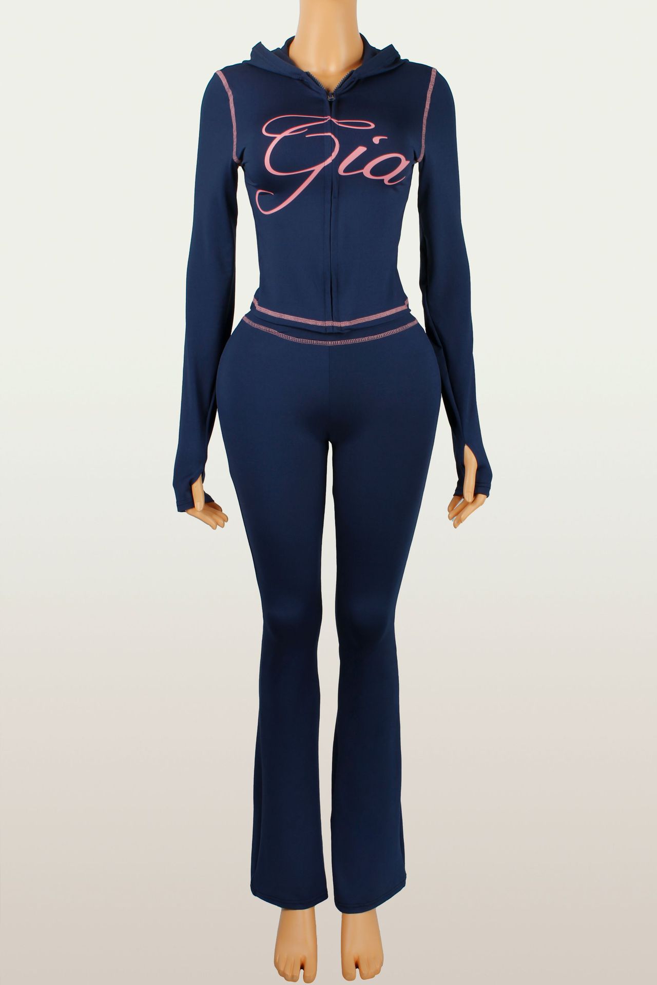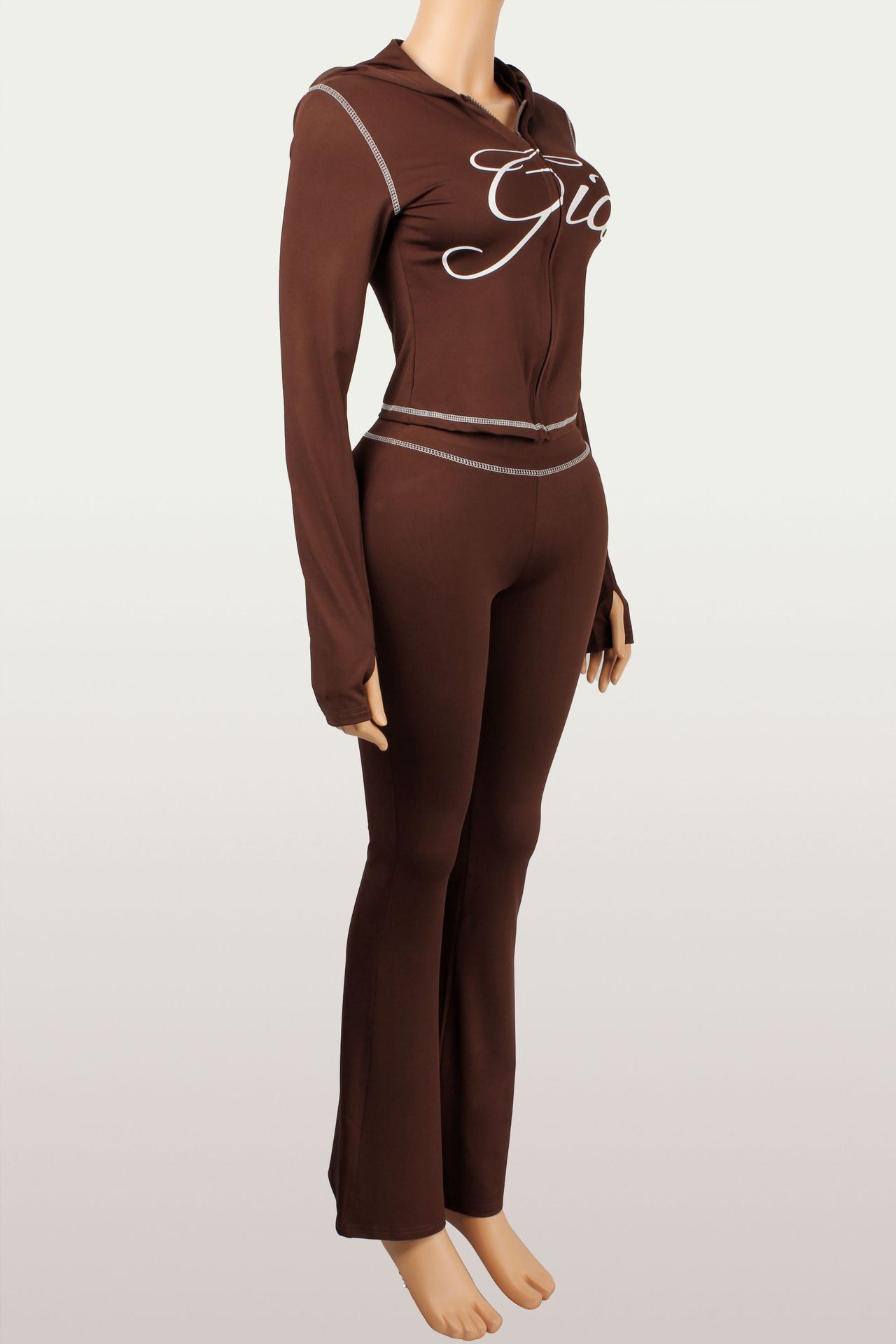 Комплект из укороченной куртки на молнии с капюшоном и брюк в спортивном стиле с принтом, в европейском и американском стиле, приталенный крой, модный дизайн INS.
