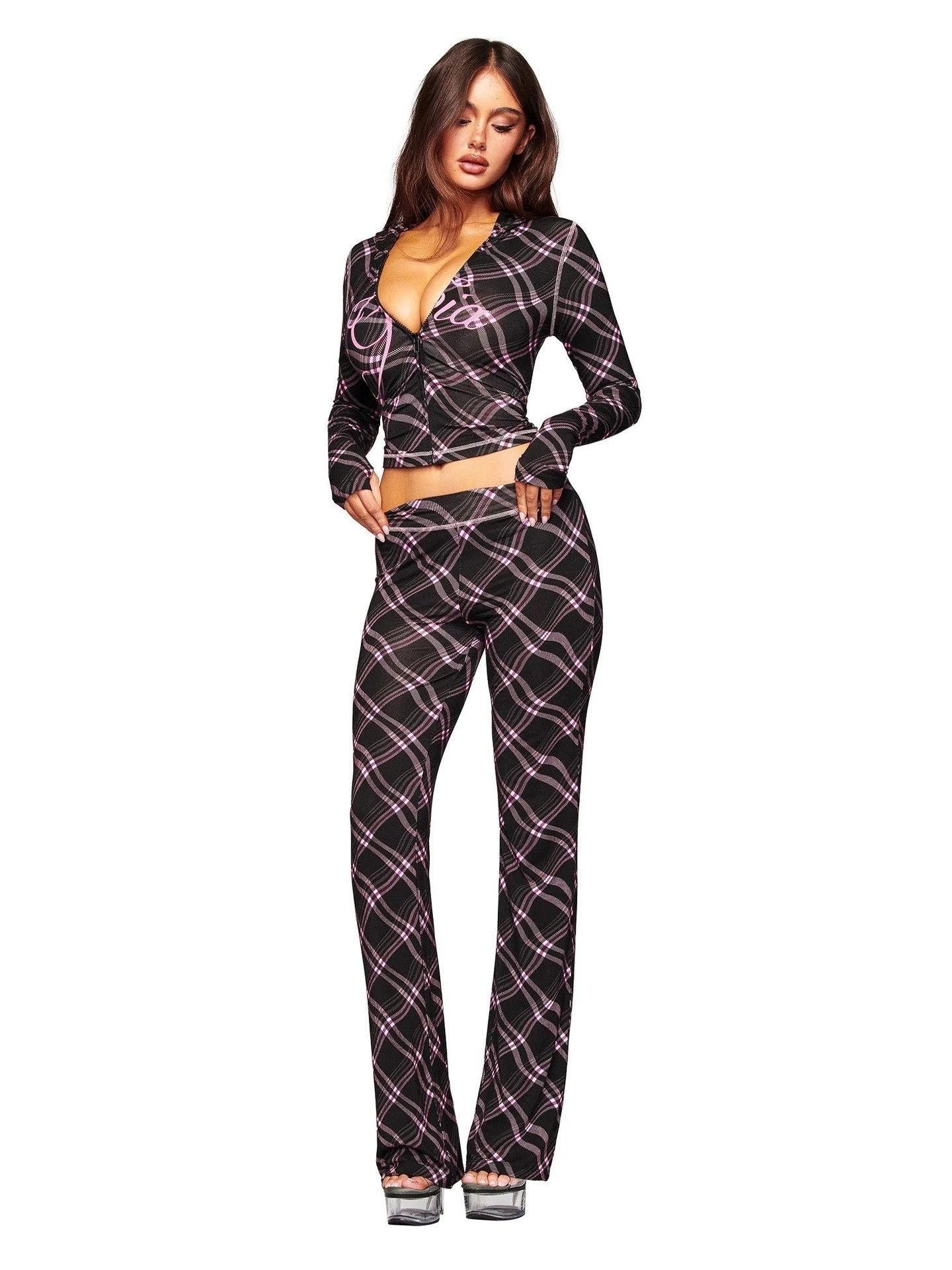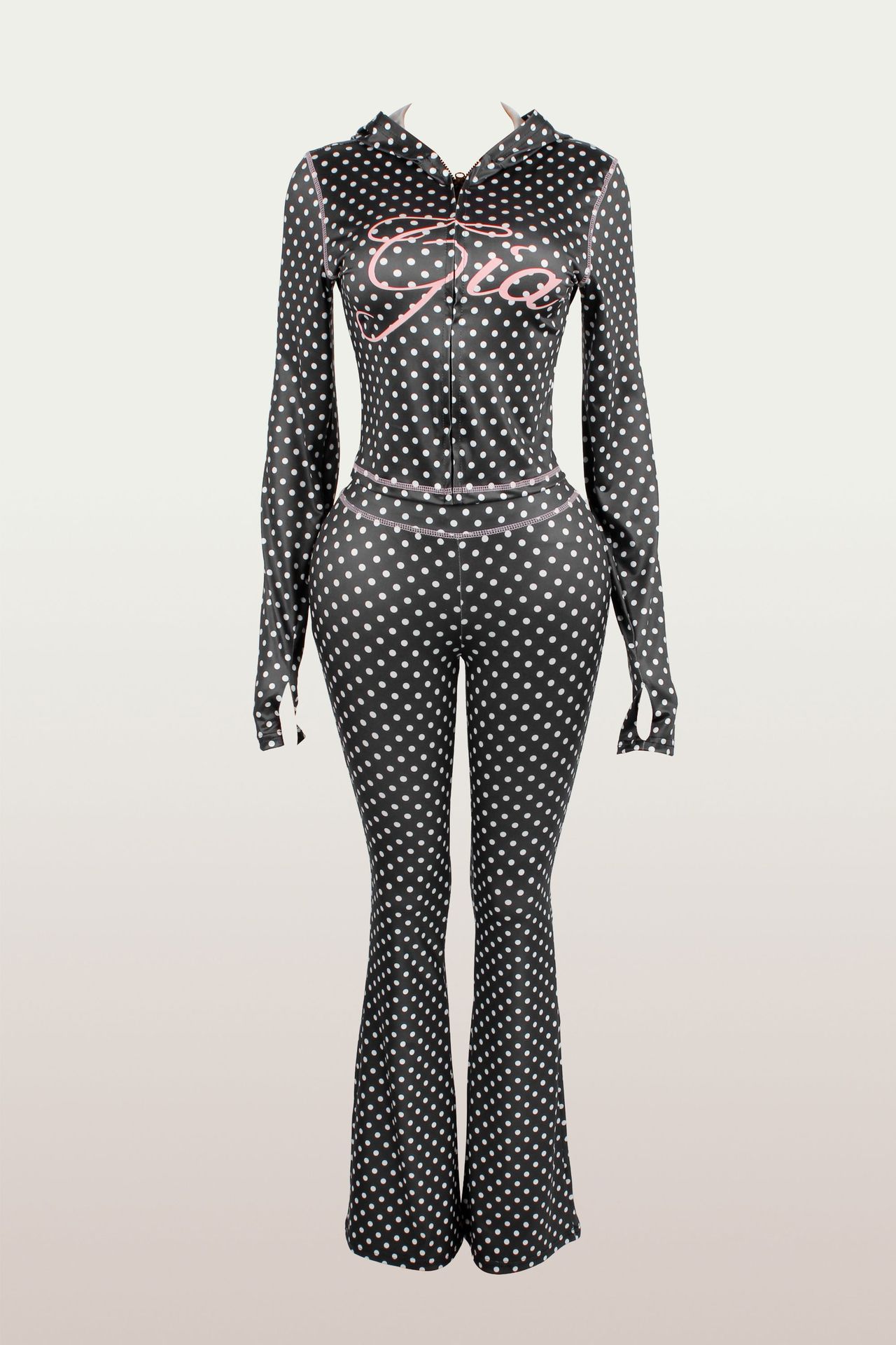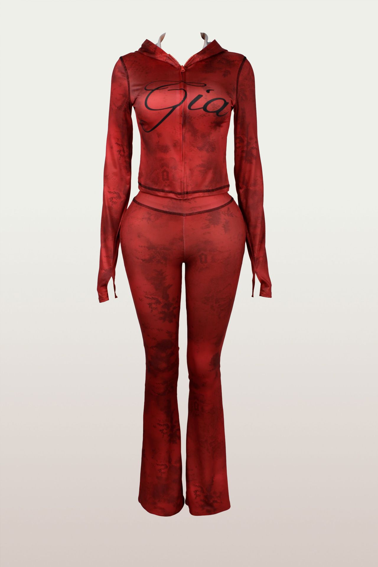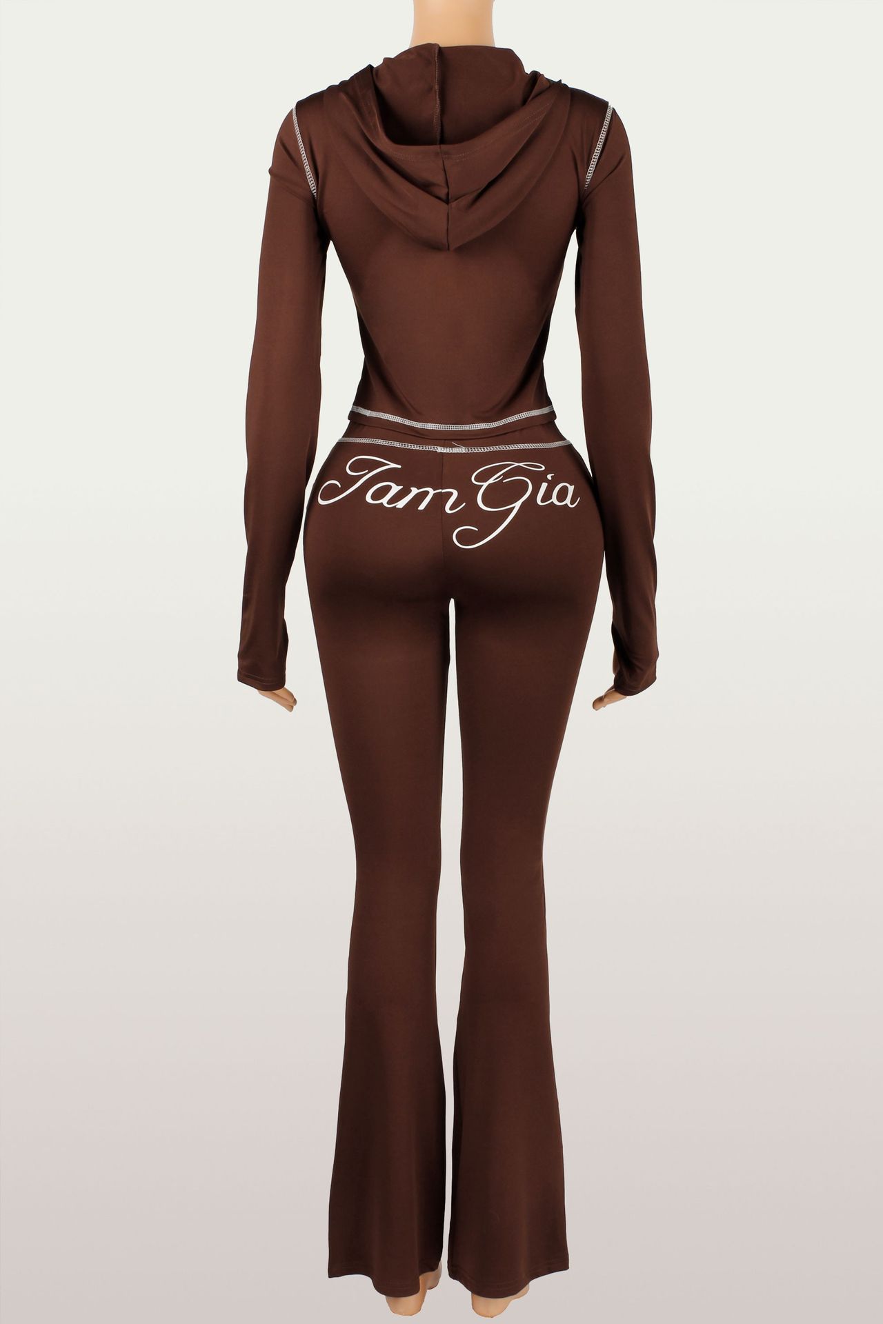 Комплект из укороченной куртки на молнии с капюшоном и брюк в спортивном стиле с принтом, в европейском и американском стиле, приталенный крой, модный дизайн INS.