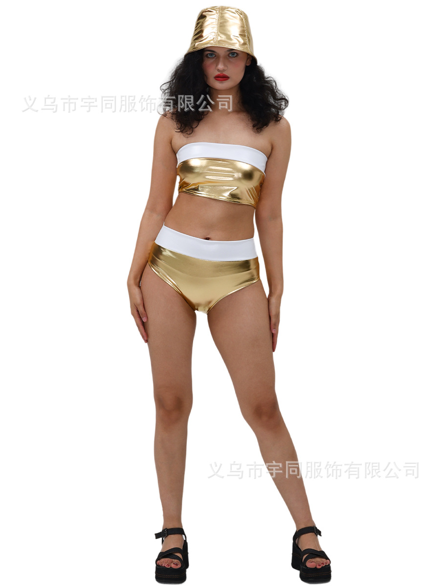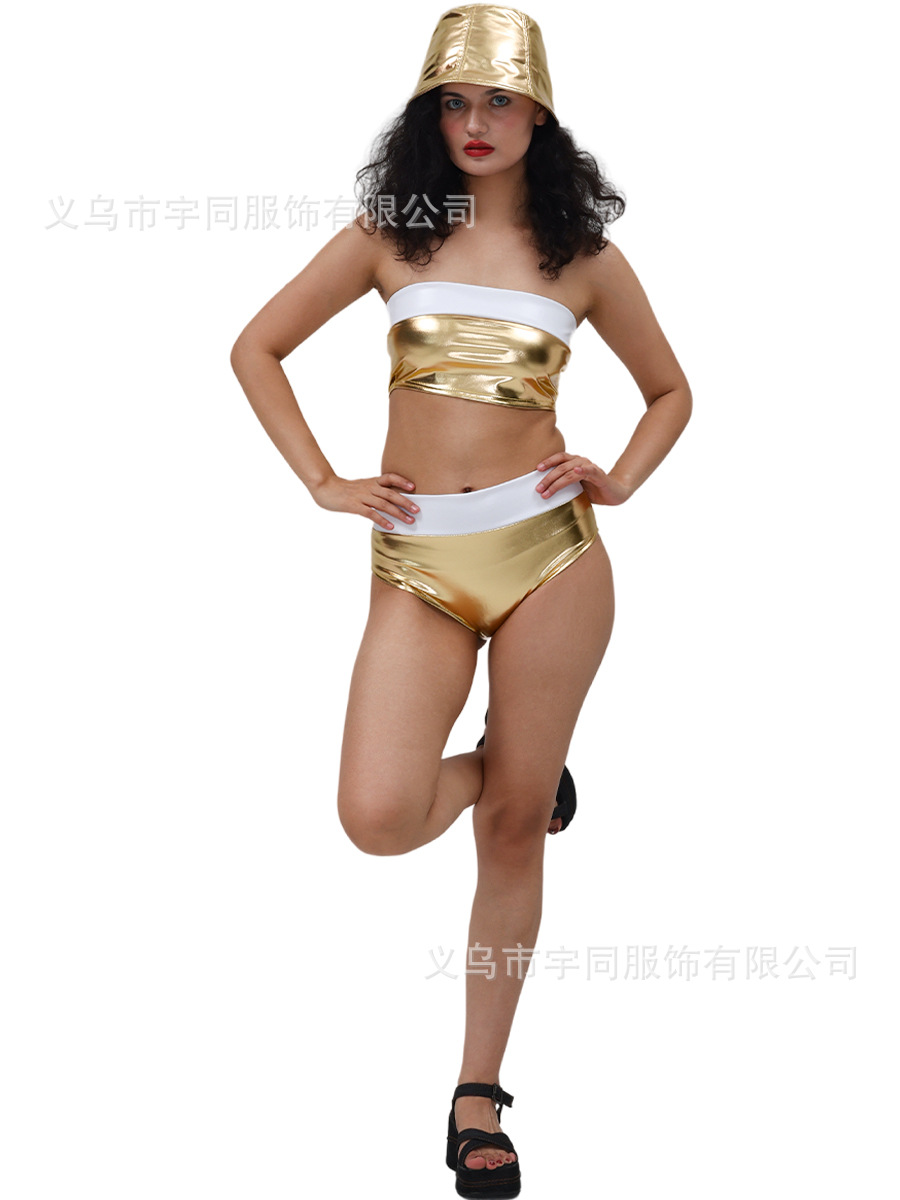 Бикини в европейском и американском стиле позолоченные лакированные кожаные ткани