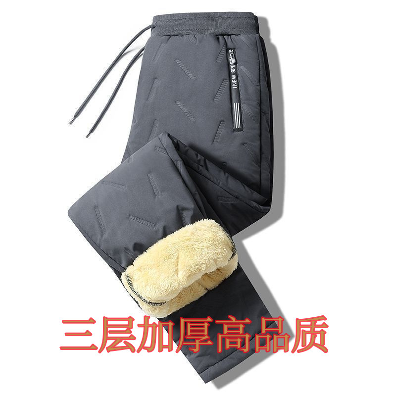 Новые улучшенные трехслойные утепленные брюки на флисовой подкладке для мужчин, теплые осенне-зимние брюки из овечьего флиса и хлопка для дома и активного отдыха, зимние хлопковые брюки.