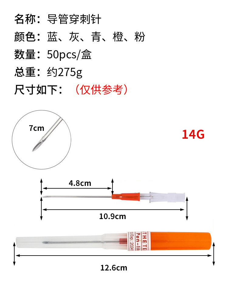 产品内径: 14G=1.6mm 16G=1.2mm 18G=1.0mm 20G=0.8mm