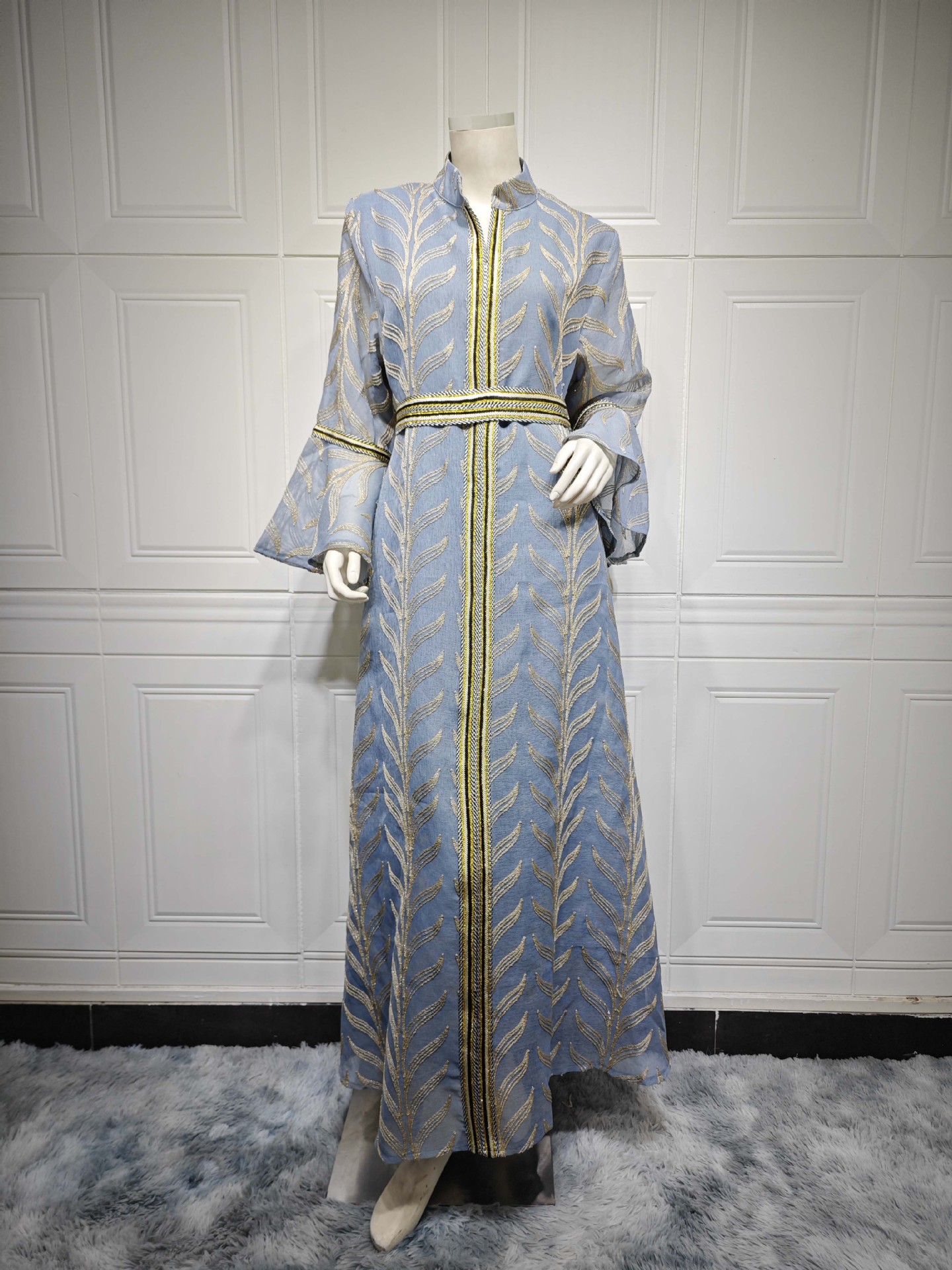 AB401 中东跨境刺绣喇叭袖套头欧美迪拜优雅长裙外贸女装连衣裙