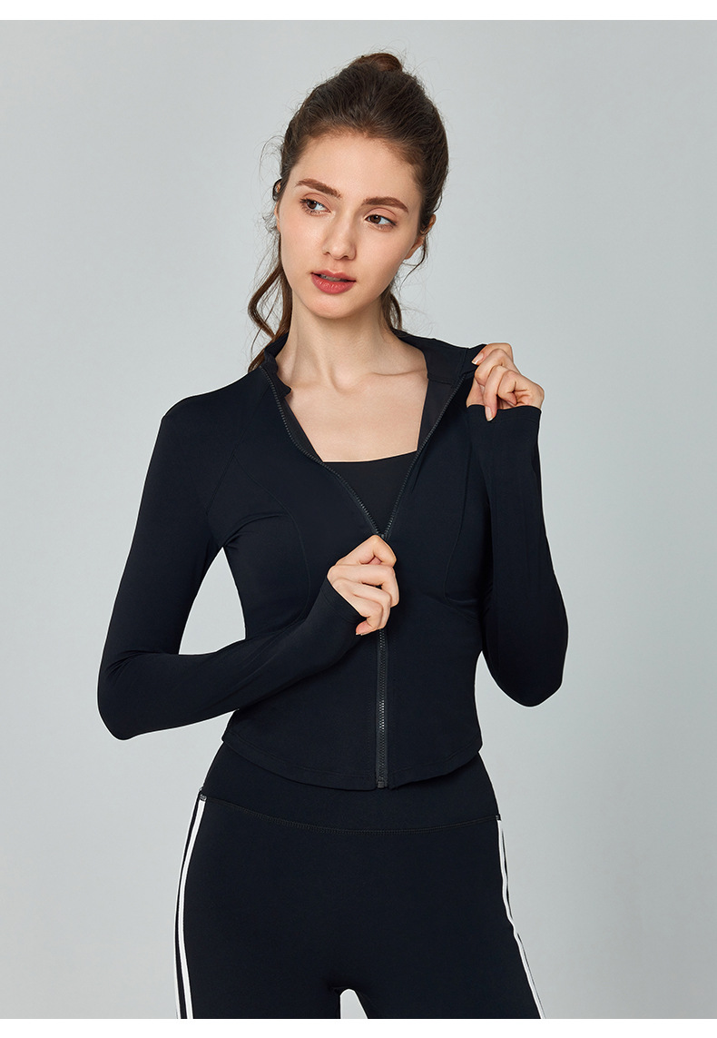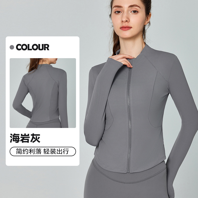 Трансграничная европейская и американская одежда для йоги куртка с длинными рукавами осенью и зимой кардиган на молнии с длинными рукавами