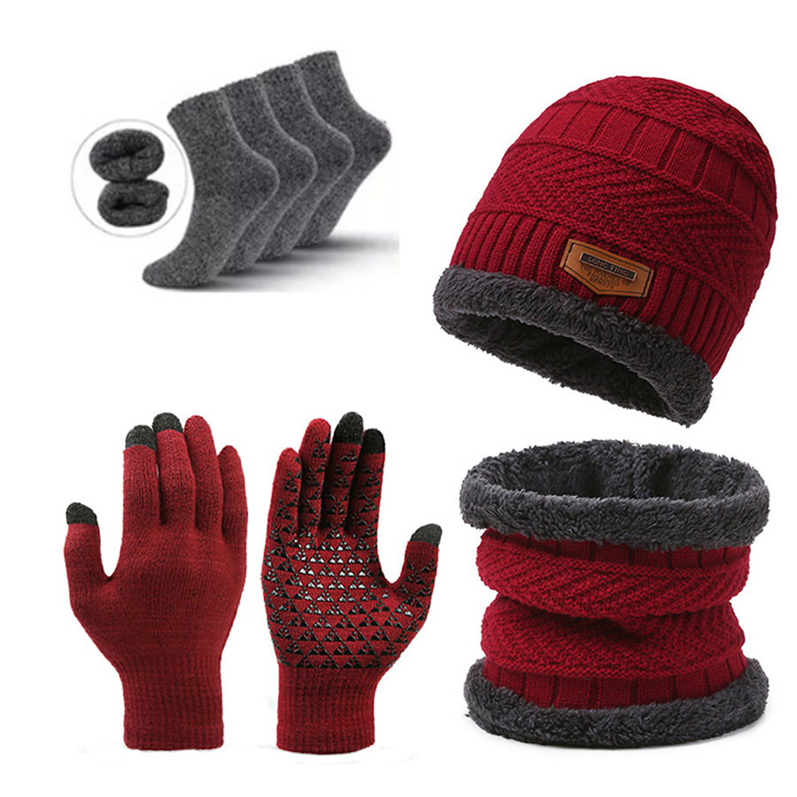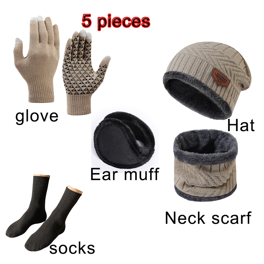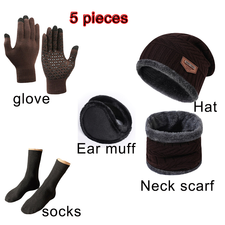 Комплект из 5 предметов: зимняя теплая шапка, шарф, перчатки, носки, шерстяная шапка с сенсорным экраном, оптовая продажа, вязаный стиль