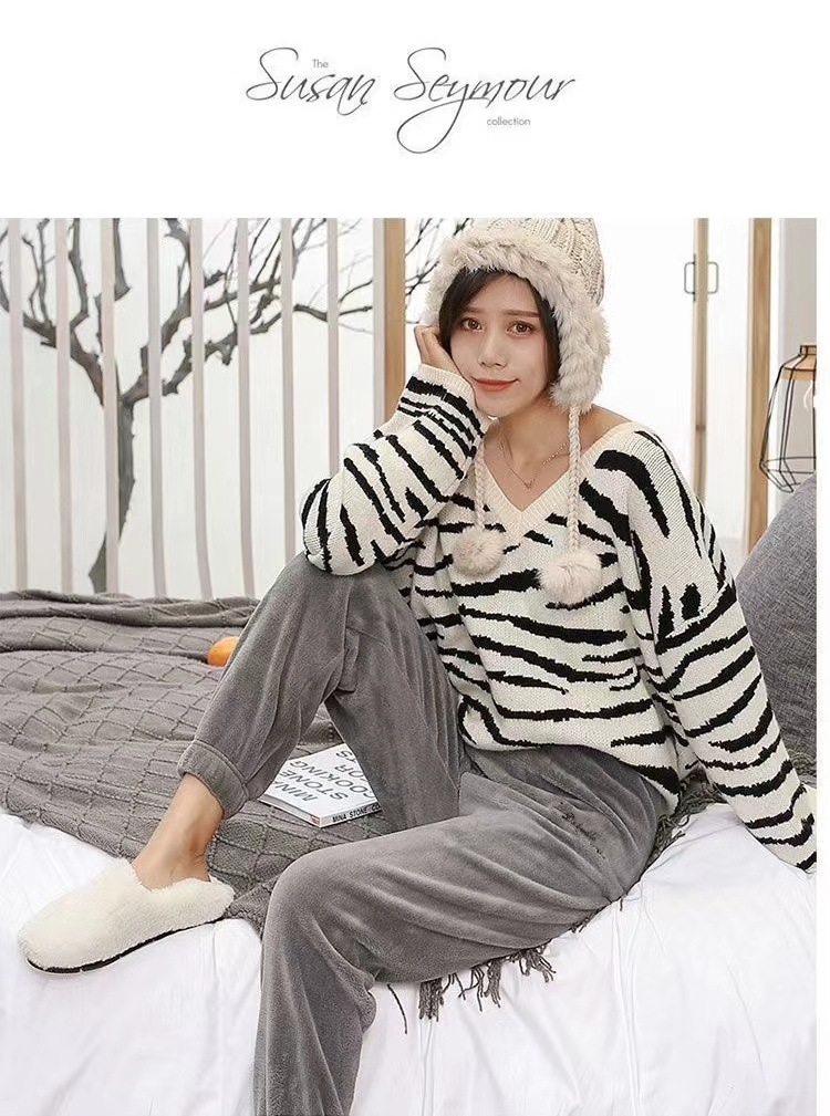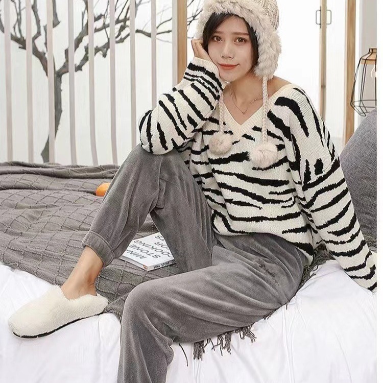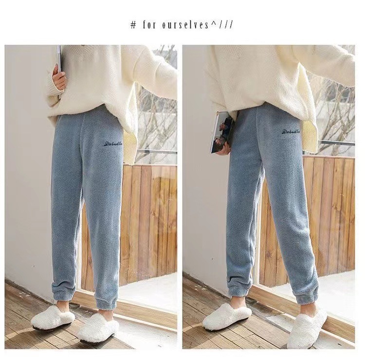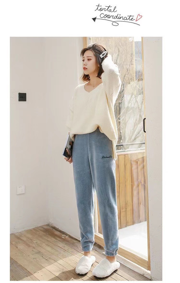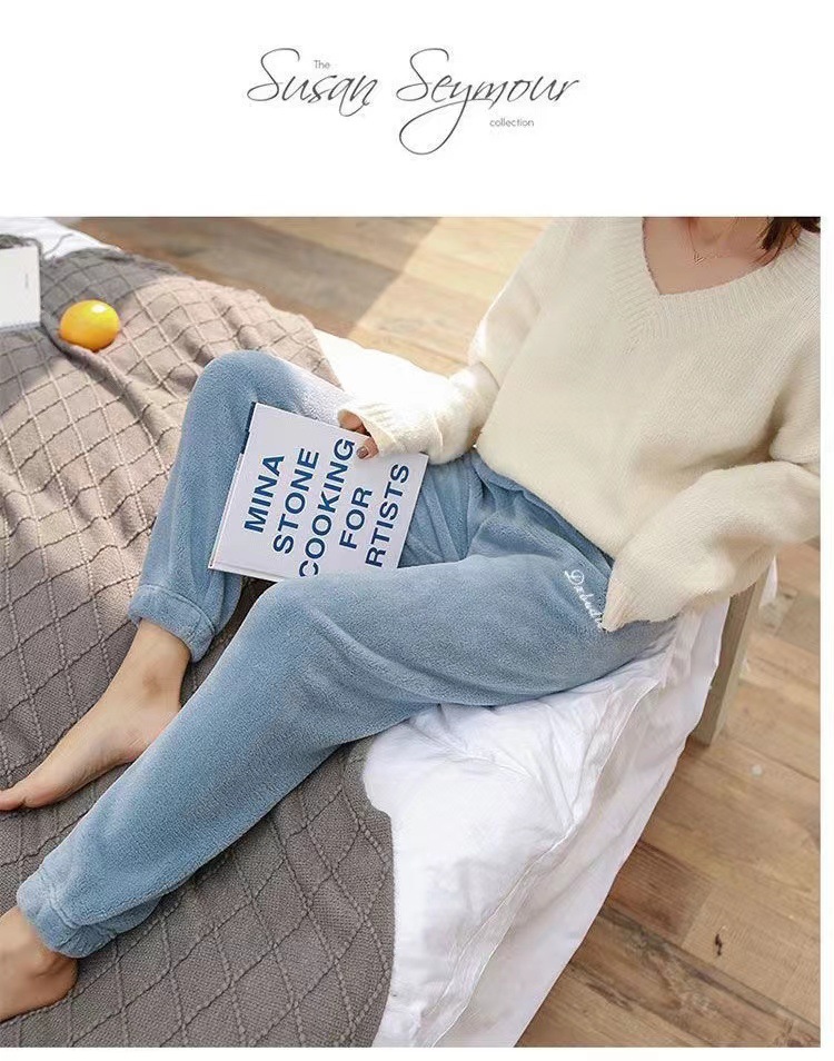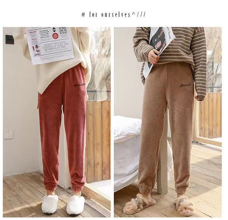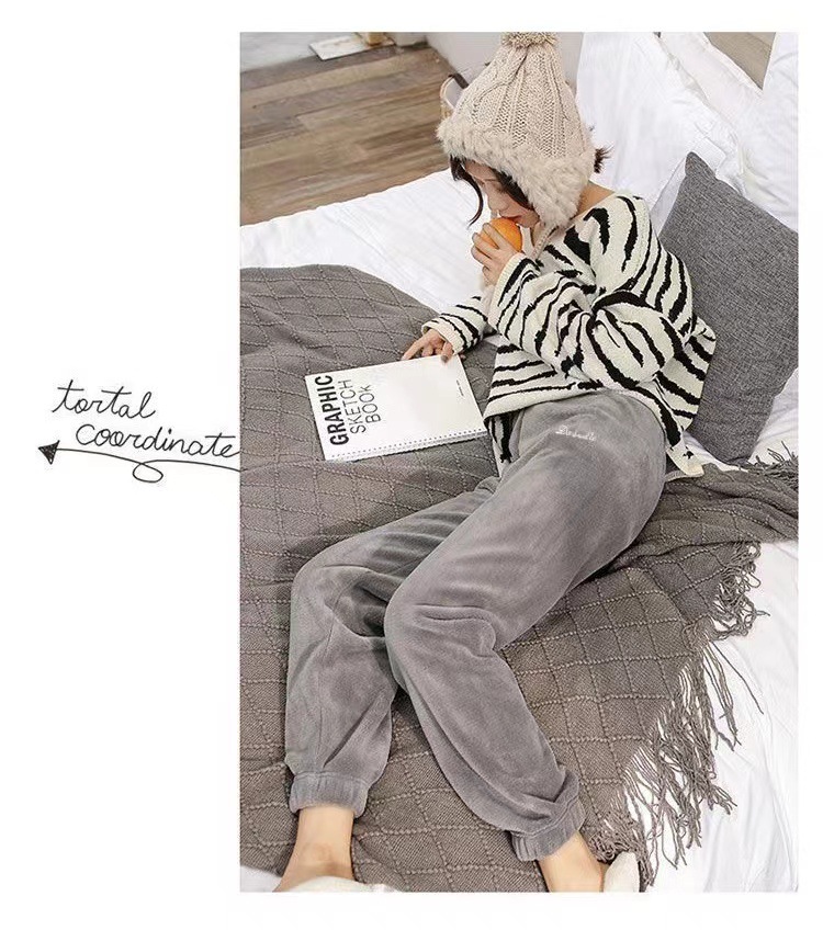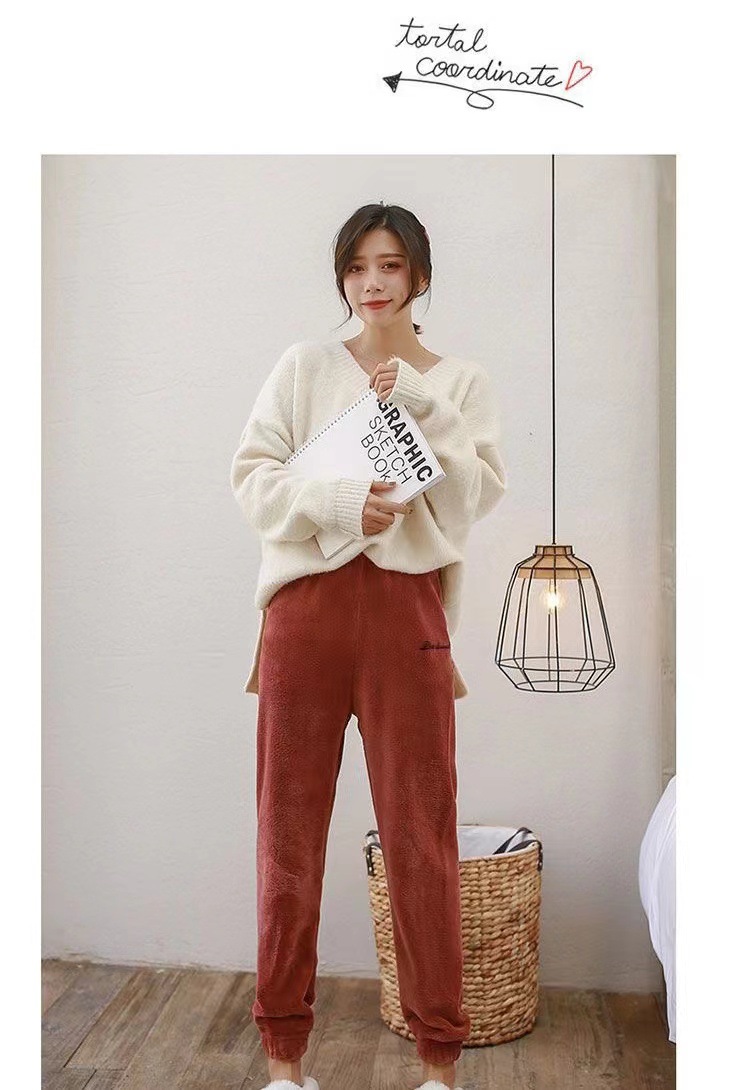 Теплые коралловые бархатные домашние пары повседневные ленивые пижамы теплые брюки носить толстые свободные пижамы девять очков оптом