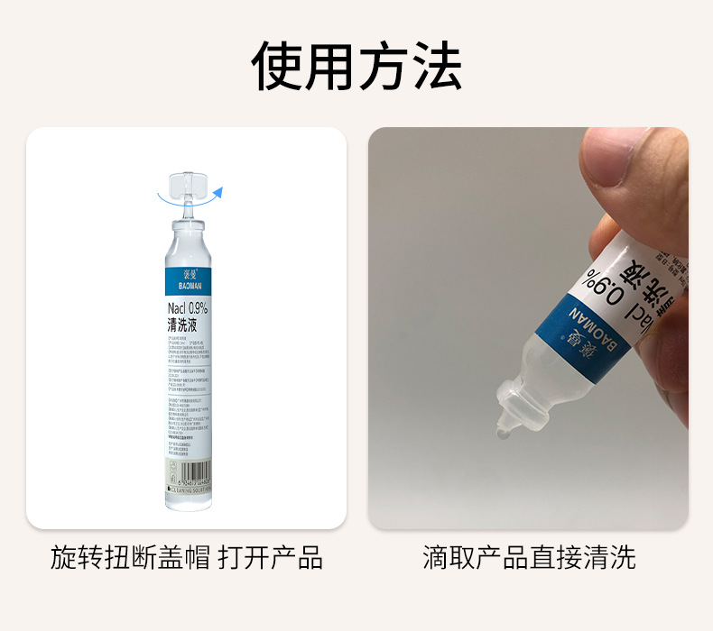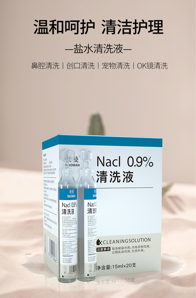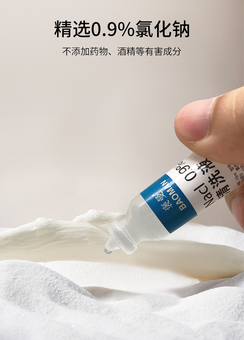 Раствор солевый одноразовый Bao Man, 15 мл, для очистки ран и носовых полостей, для очистки контактных линз, аналог раствора солевого Aierhai Hainuo, оптом.