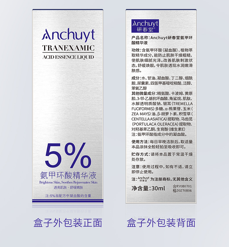 Essence Essence для транексамовой кислоты в Яньчунтане улучшает тусклый и осветляет цвет кожи Экстракт Pentacentine 5% раз