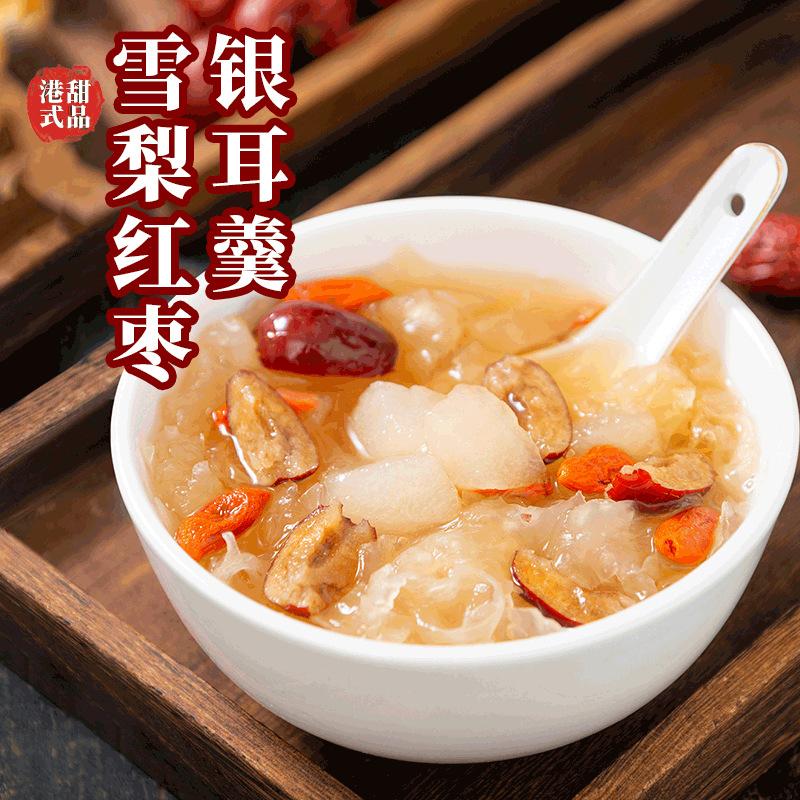 Полуфабрикаты сладкого супа в кантонском стиле от Хайчаньюань: маш, красная фасоль, снежная груша, красные финики, белые грибы, готовые к употреблению, оптовая продажа.