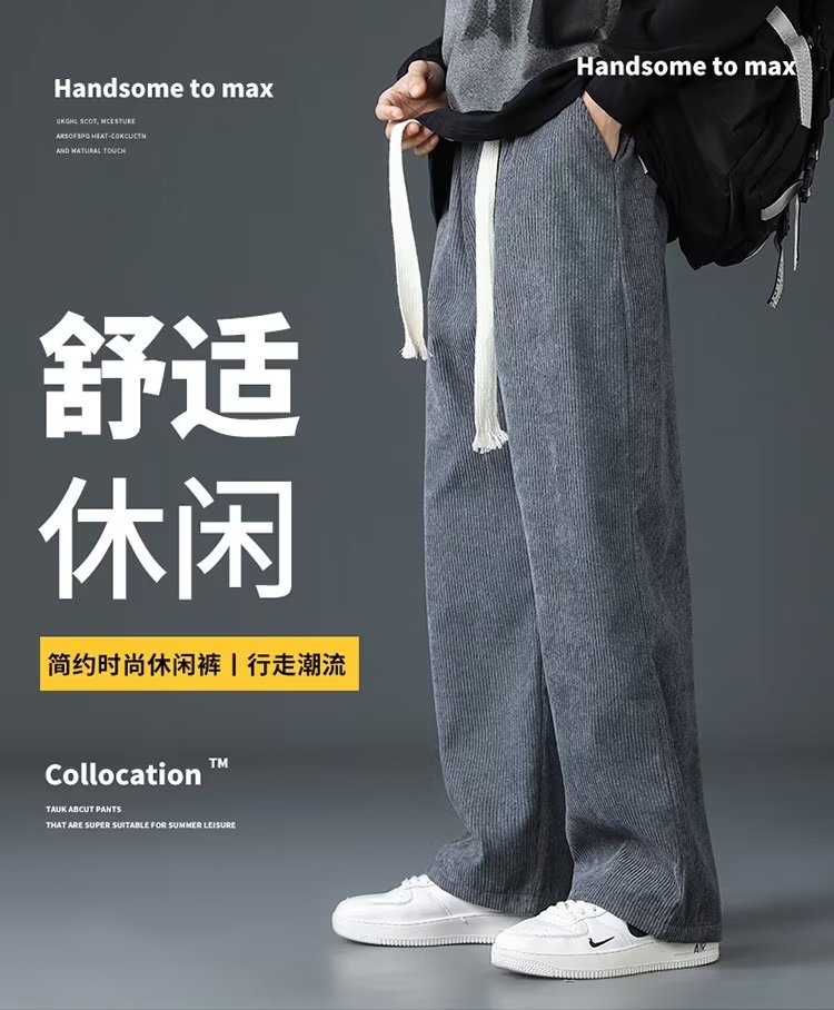Брюки мужские бархатные толстые свободные прямые вельветы широкие ноги подростковые повседневные брюки мужские спортивные брюки длинные