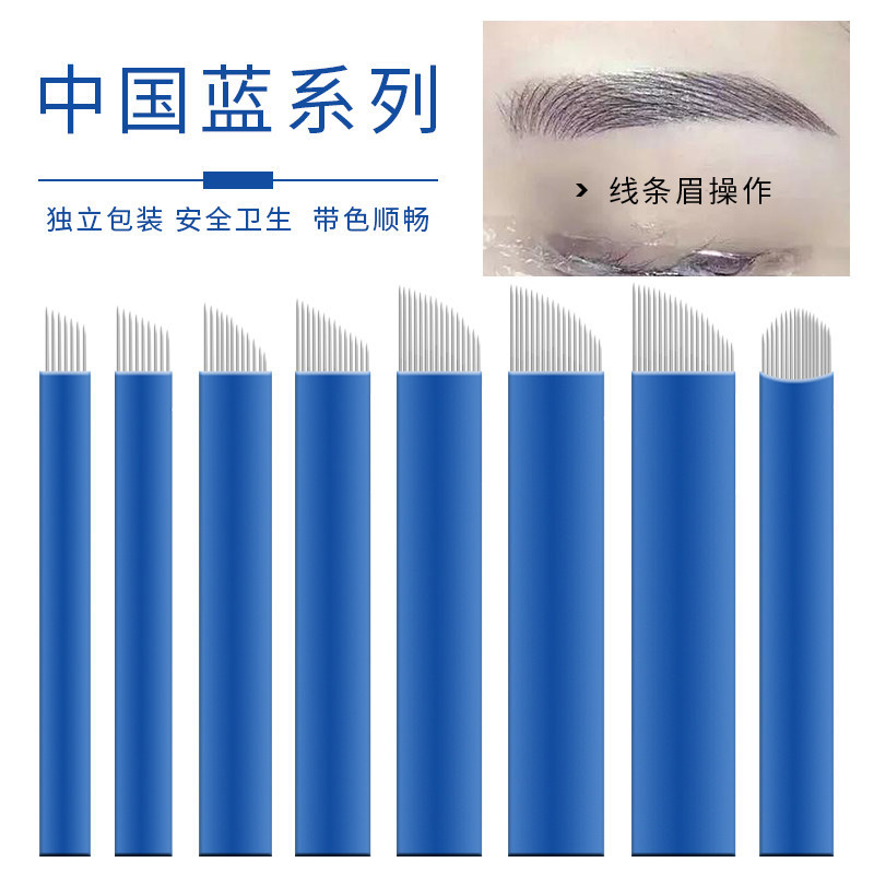 Подлинные полупостоянные китайские синие иглы для вышивания 14 иглы 17 иглы 18 иглы для бровей ручной работы синие кожаные иглы легко окрашены