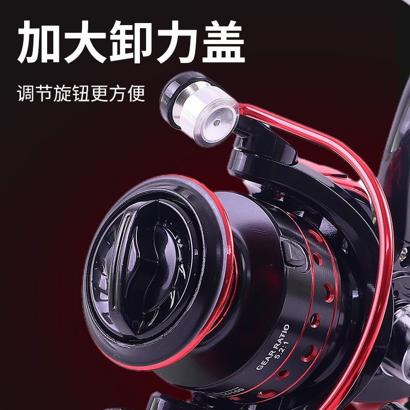产品特点:弧形轮座,不晃动;加粗抛线环,阻力小,不晃动;铝合金线杯,硬拽不伤线。