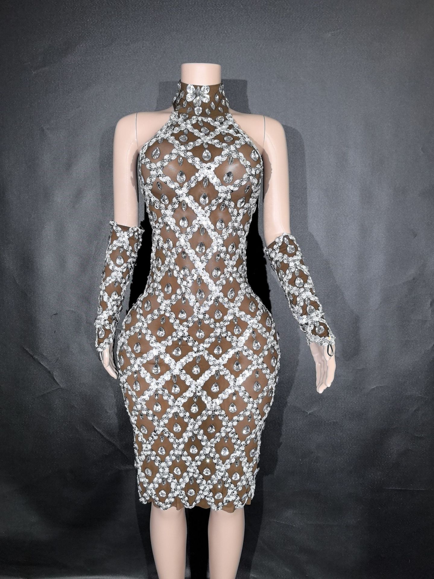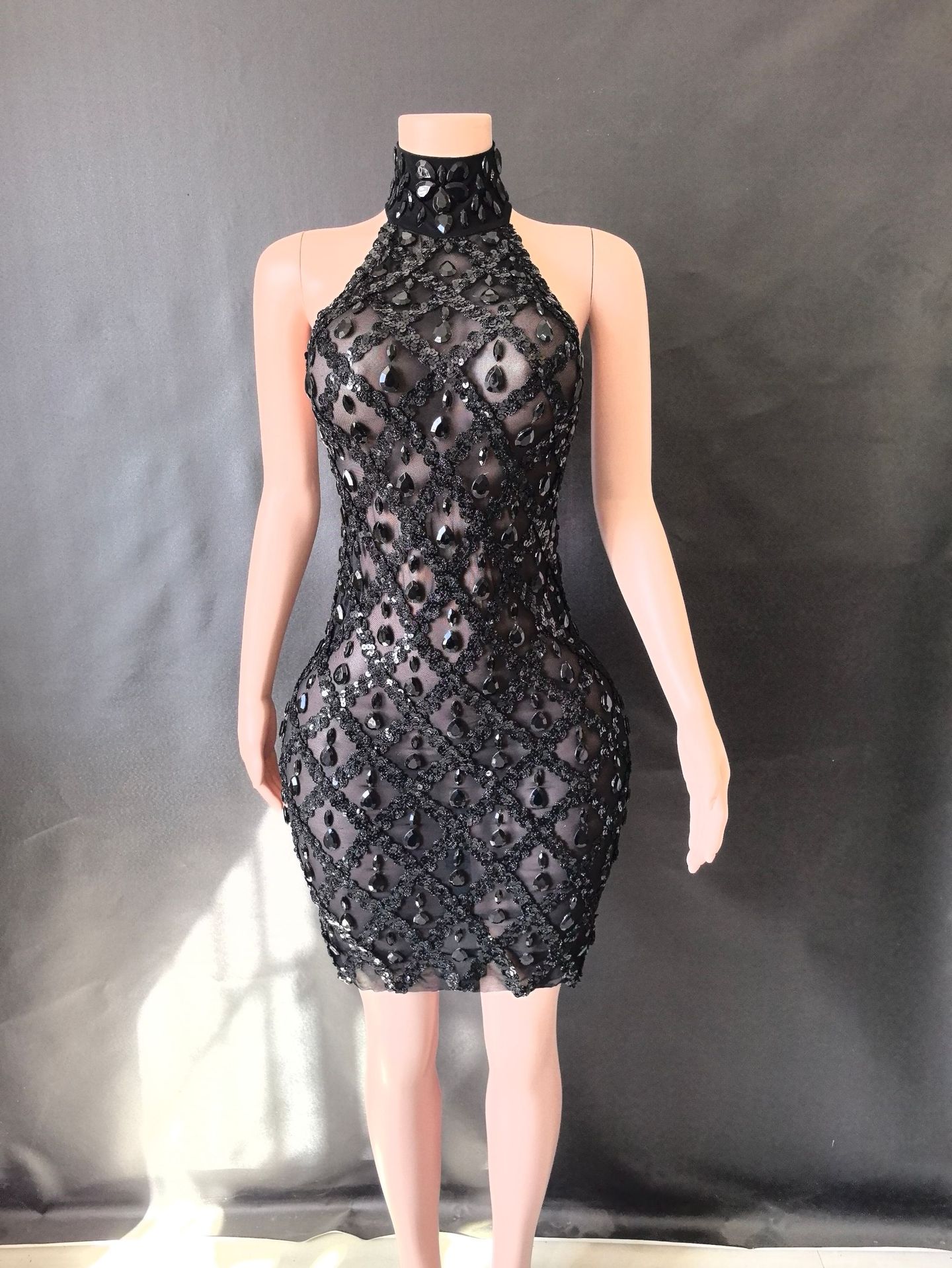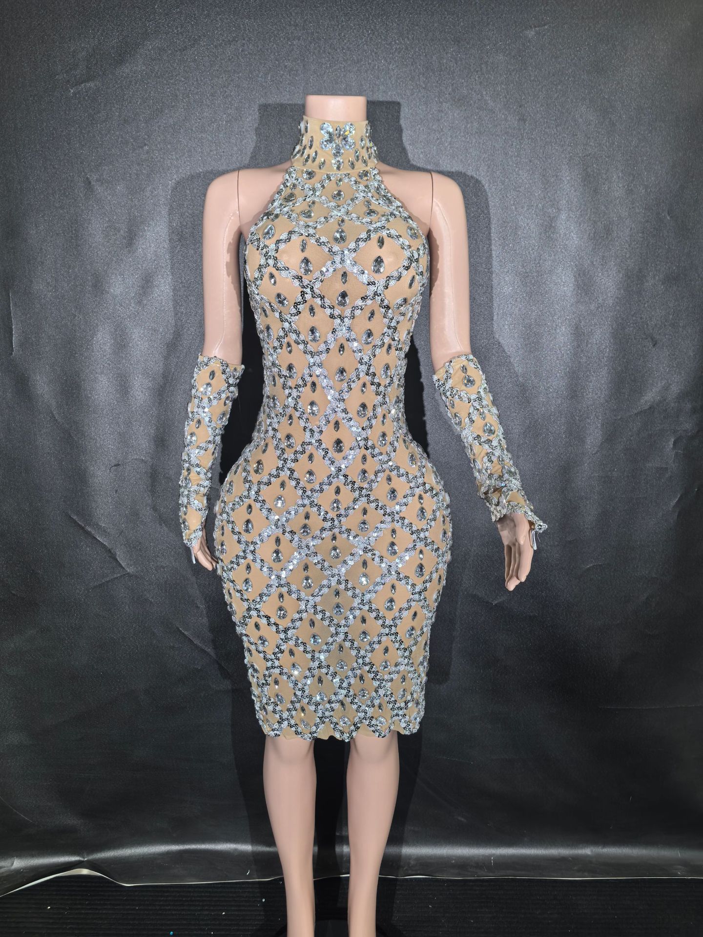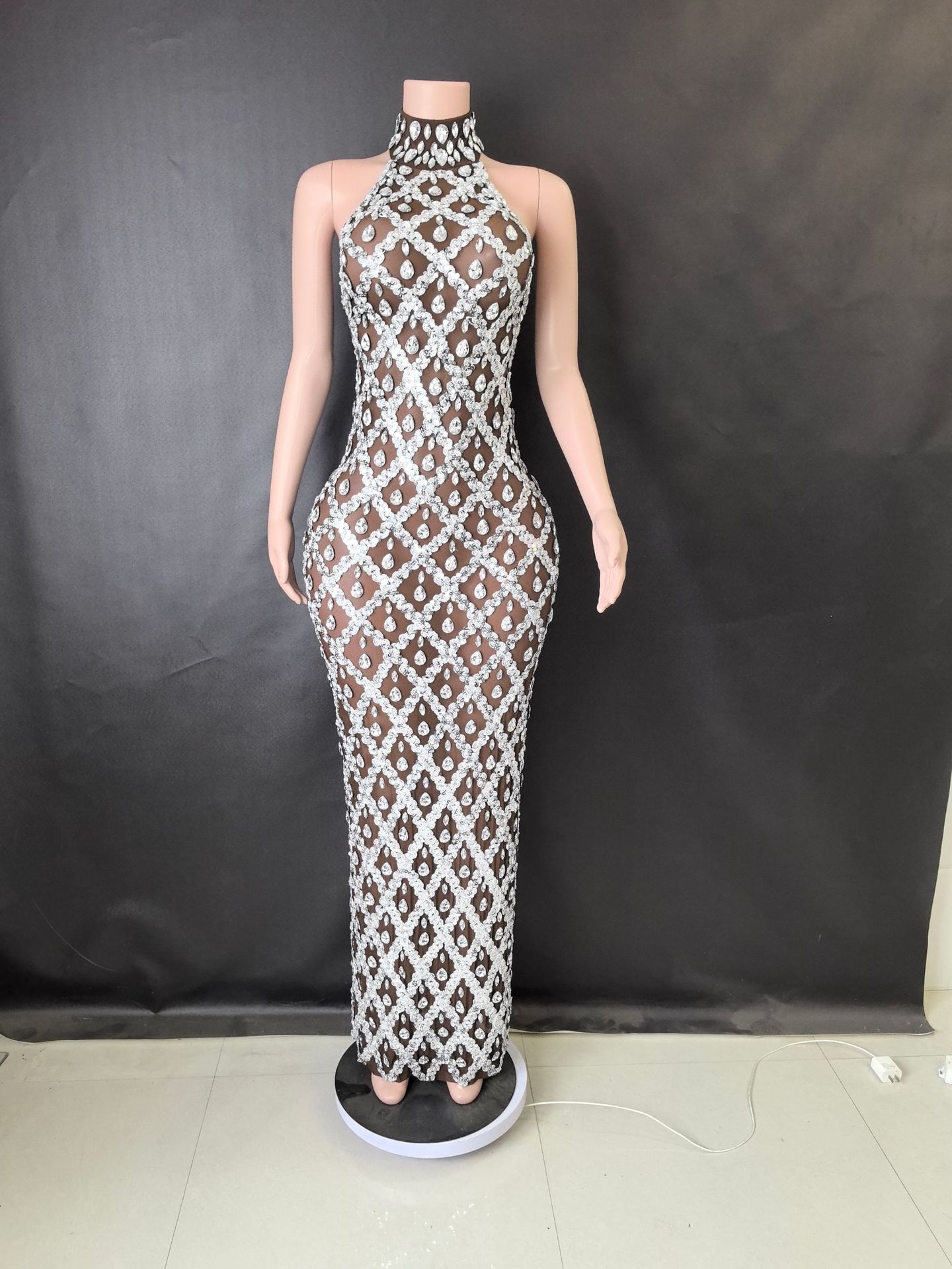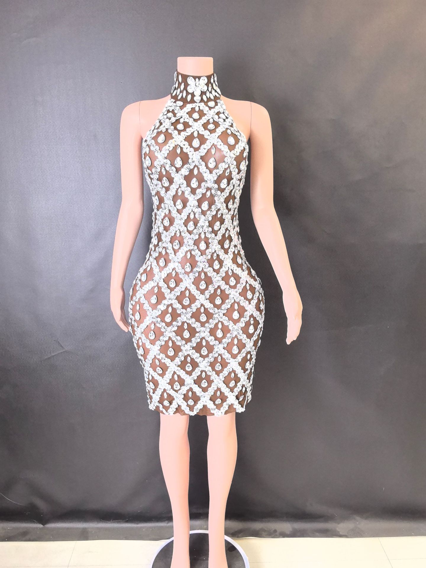 В наличии: сексуальное вечернее коктейльное платье с высоким воротом, без рукавов, из сетки с блестящими стразами, прозрачное, в клетку, с вырезами, для ночных клубов