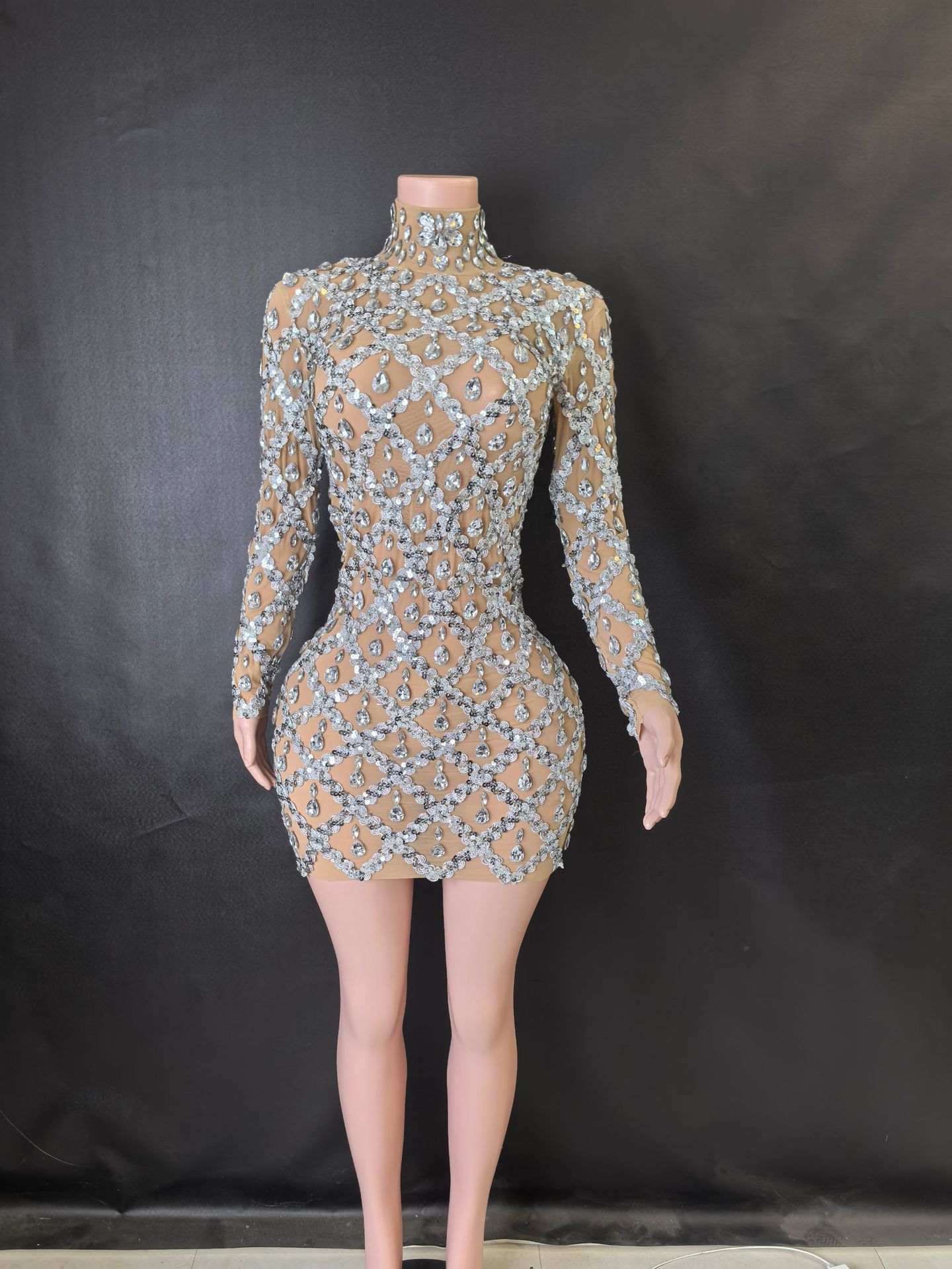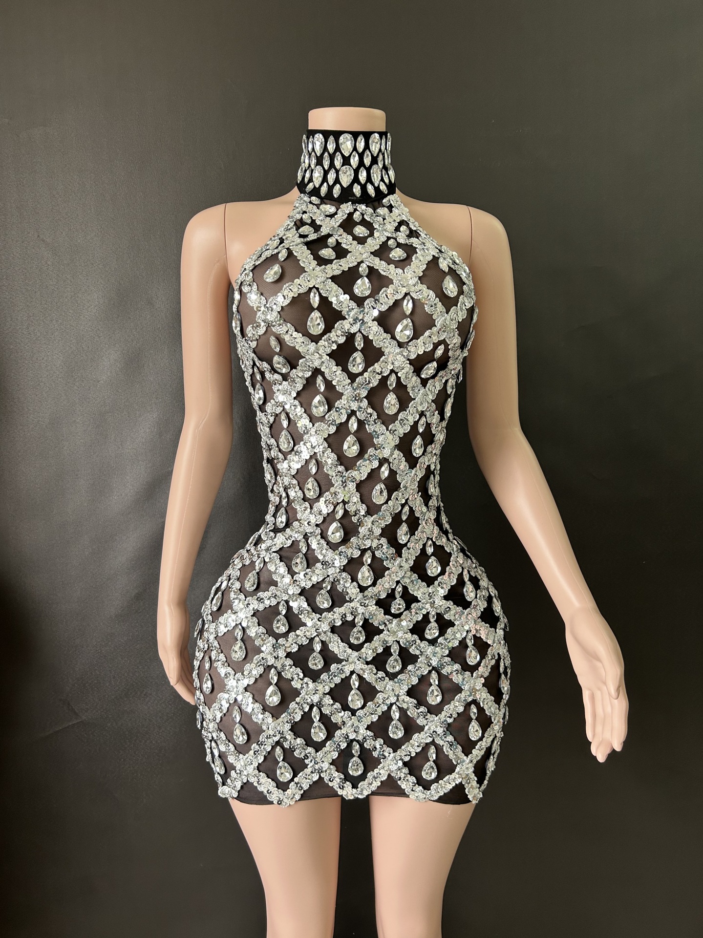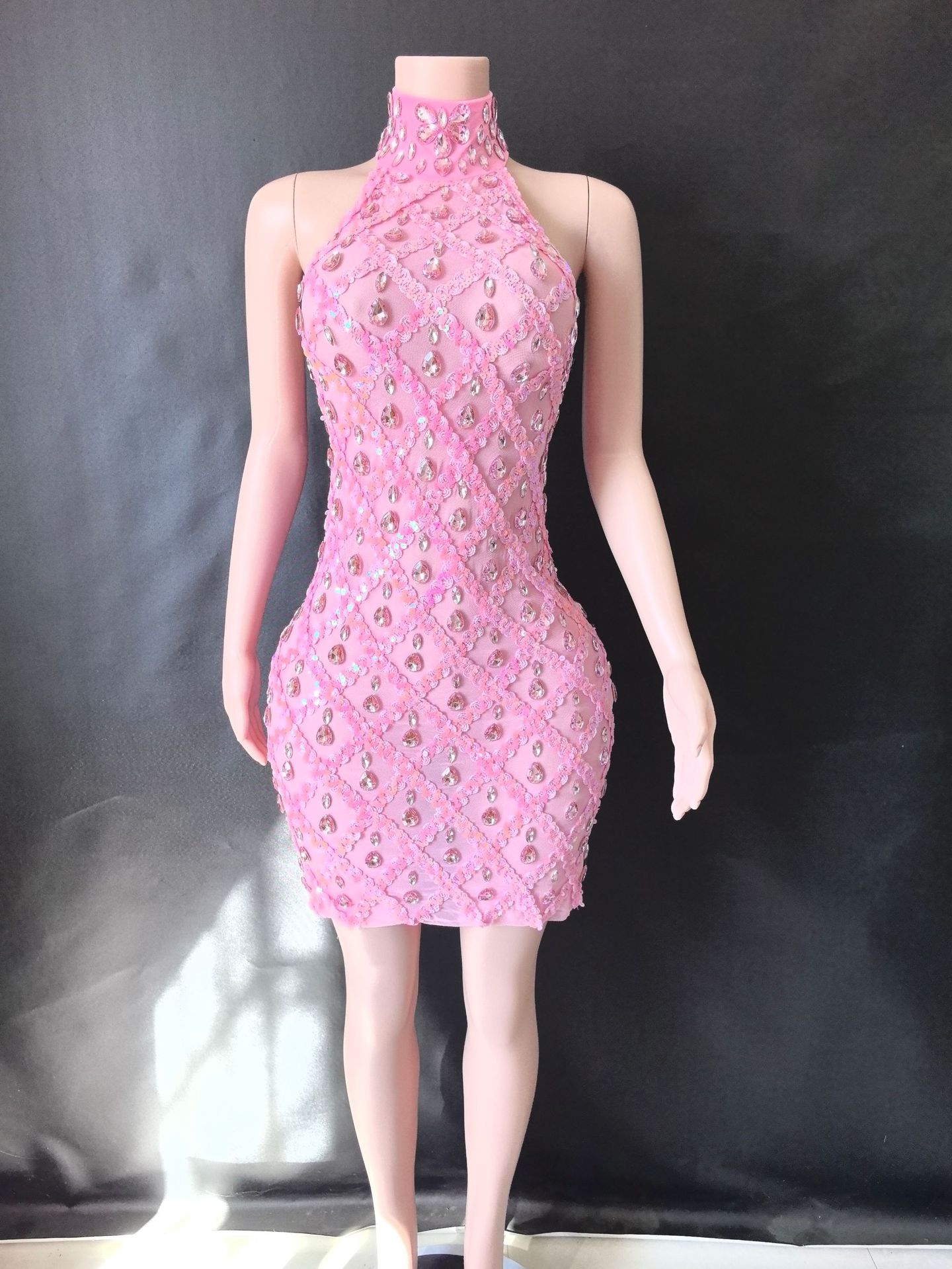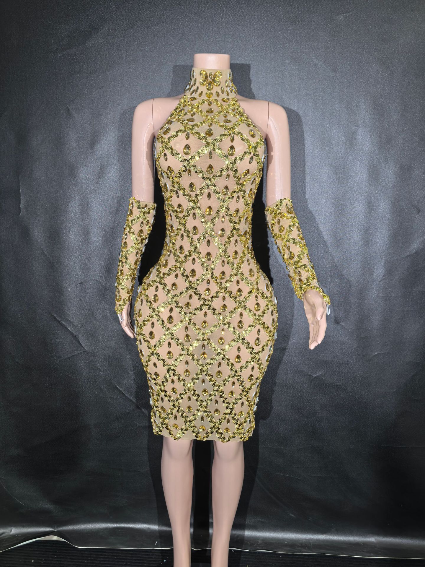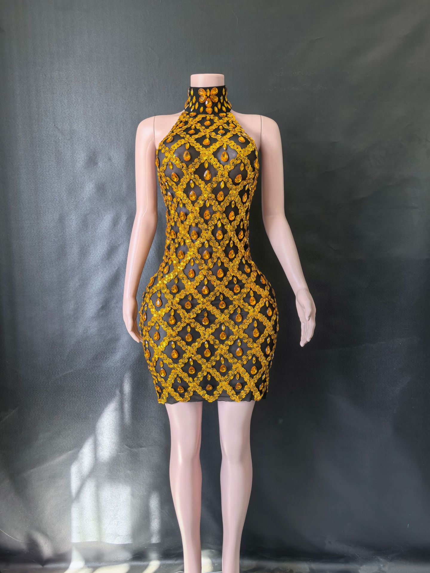 В наличии: сексуальное вечернее коктейльное платье с высоким воротом, без рукавов, из сетки с блестящими стразами, прозрачное, в клетку, с вырезами, для ночных клубов