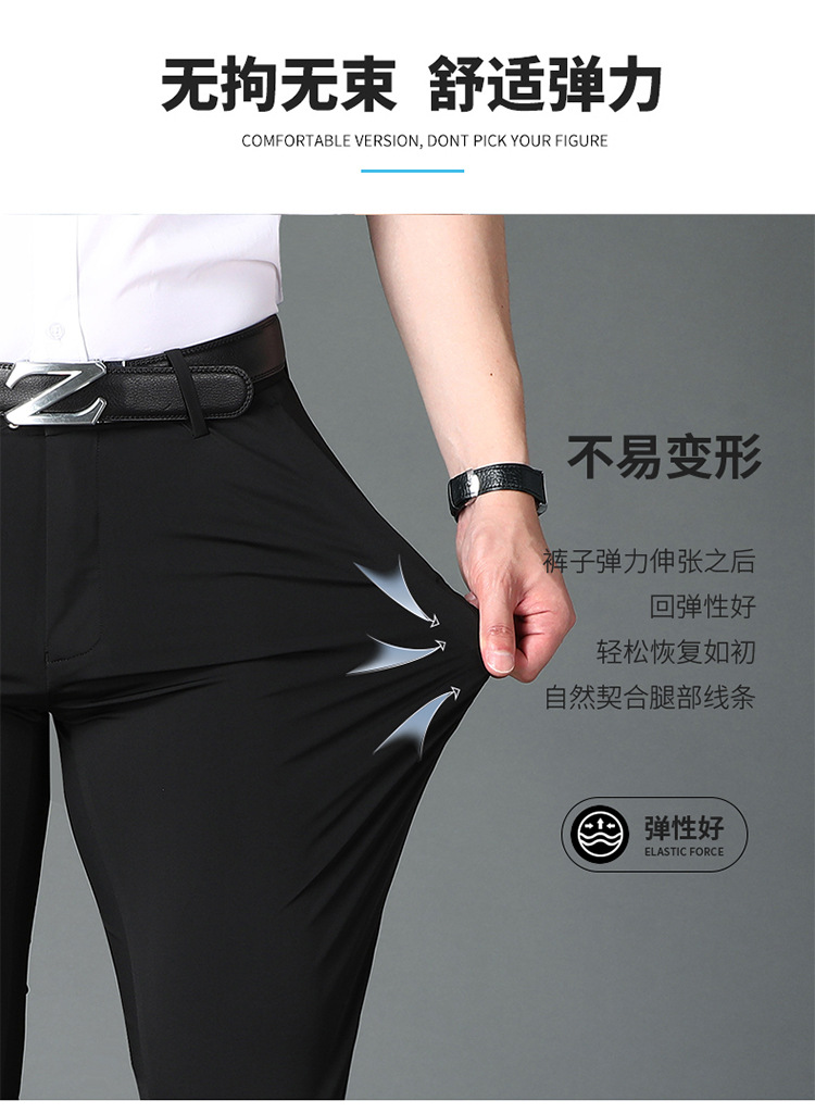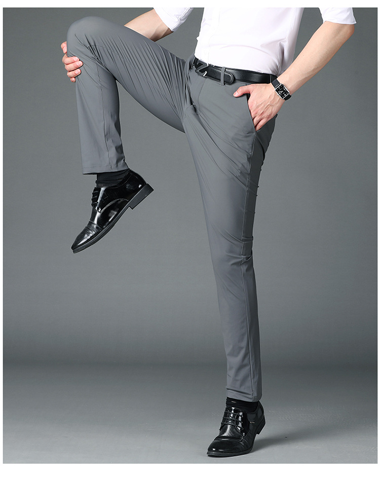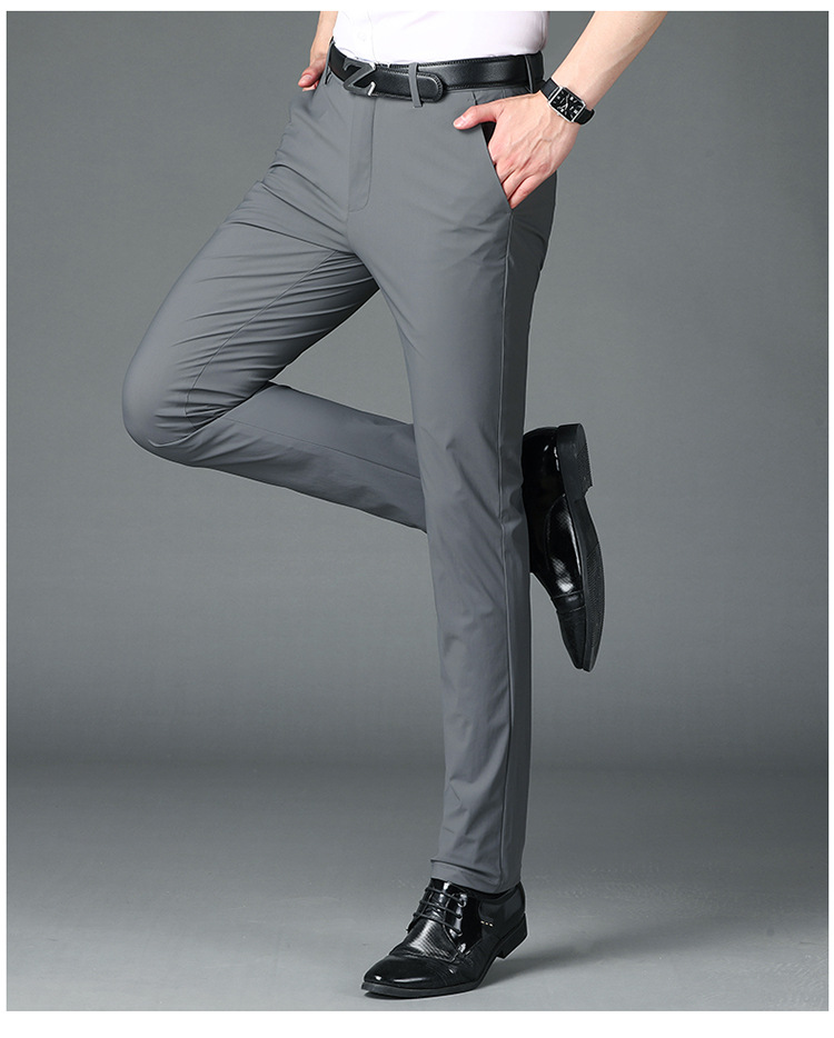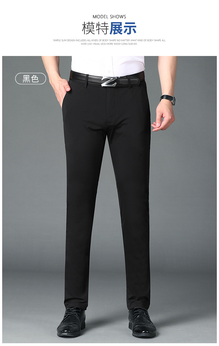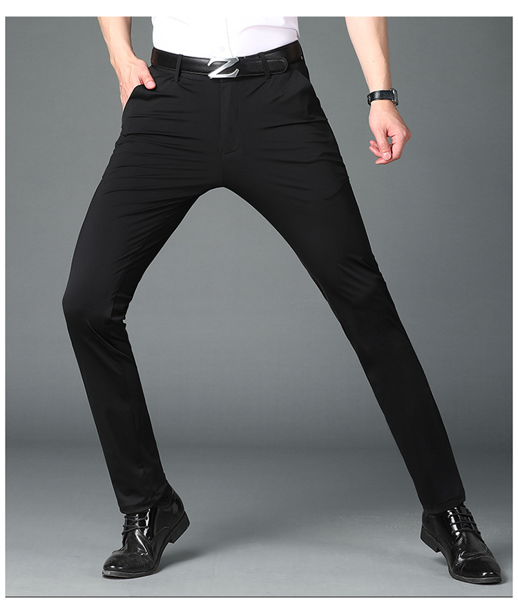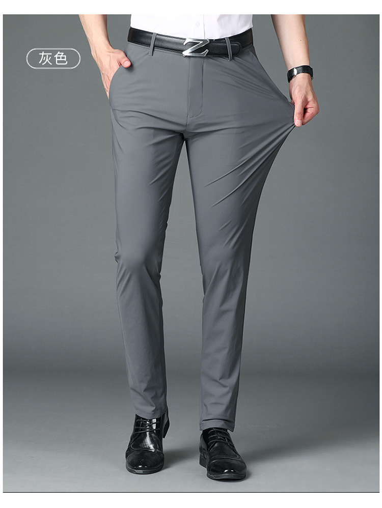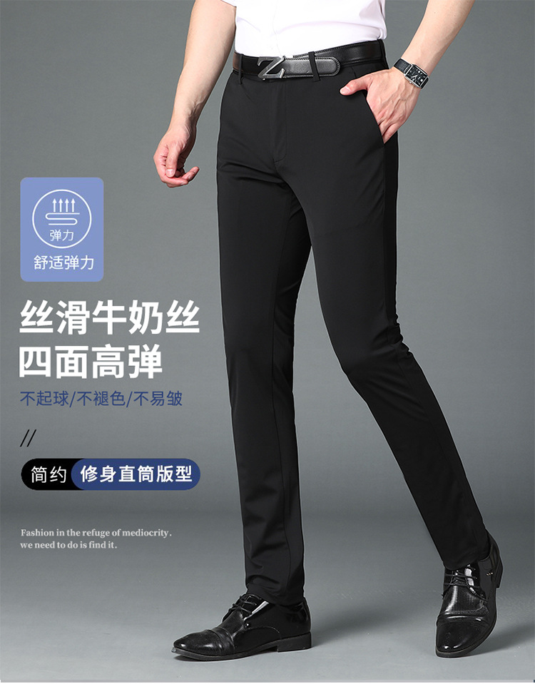 Весна и лето тонкие мужские брюки с четырьмя сторон эластичные молочные молочные штаны новые деловые гладкие мужские брюки