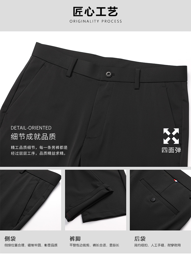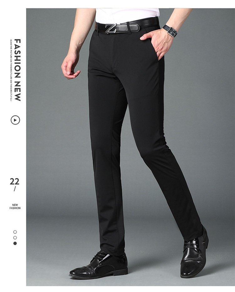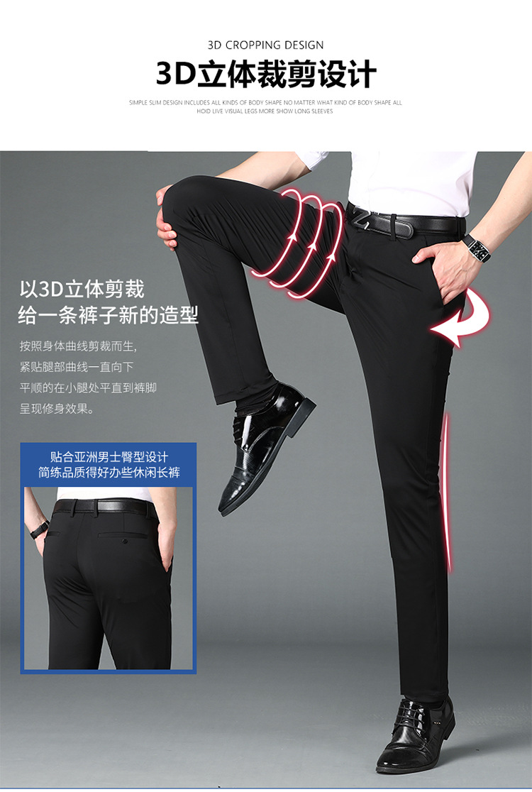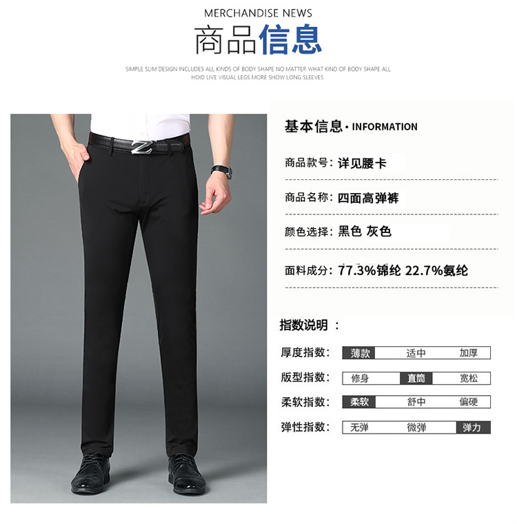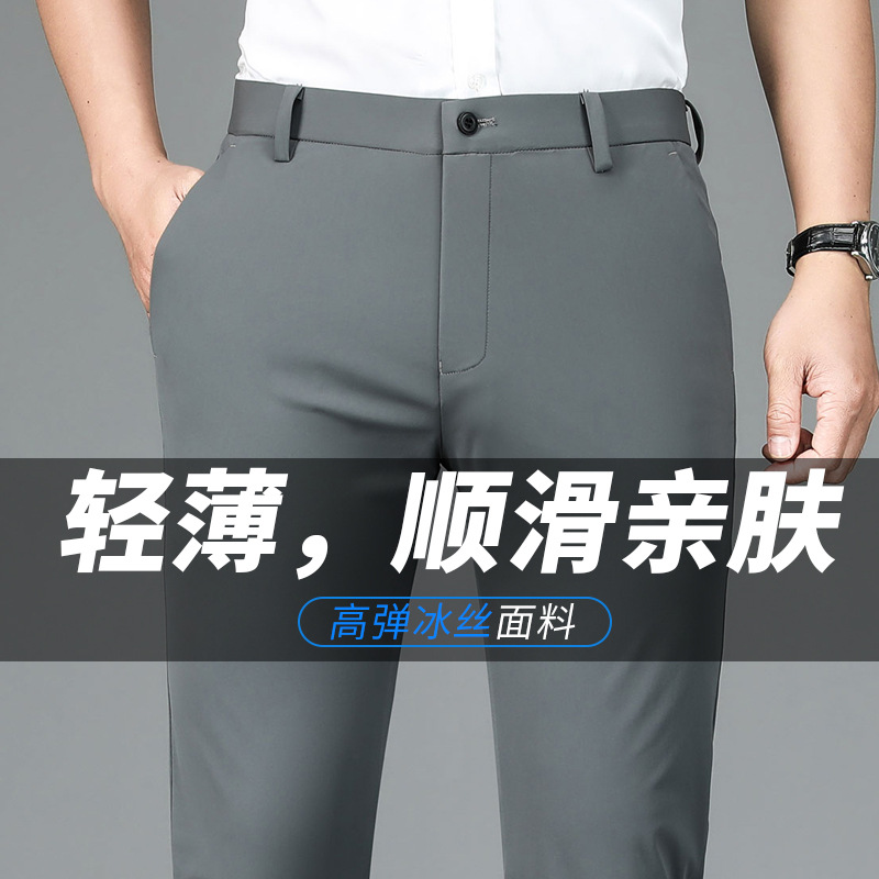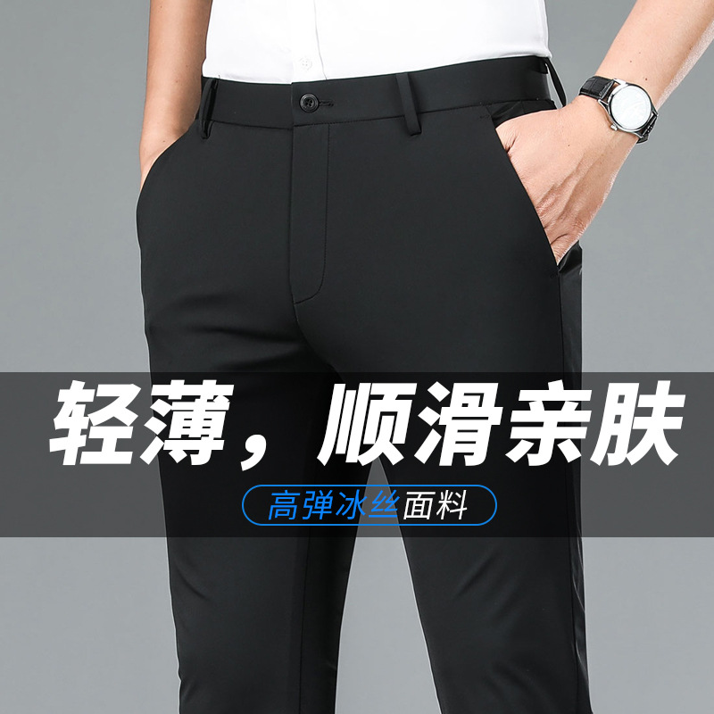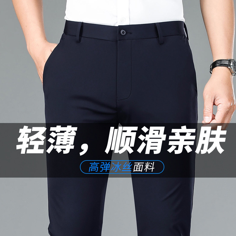 Весна и лето тонкие мужские брюки с четырьмя сторон эластичные молочные молочные штаны новые деловые гладкие мужские брюки
