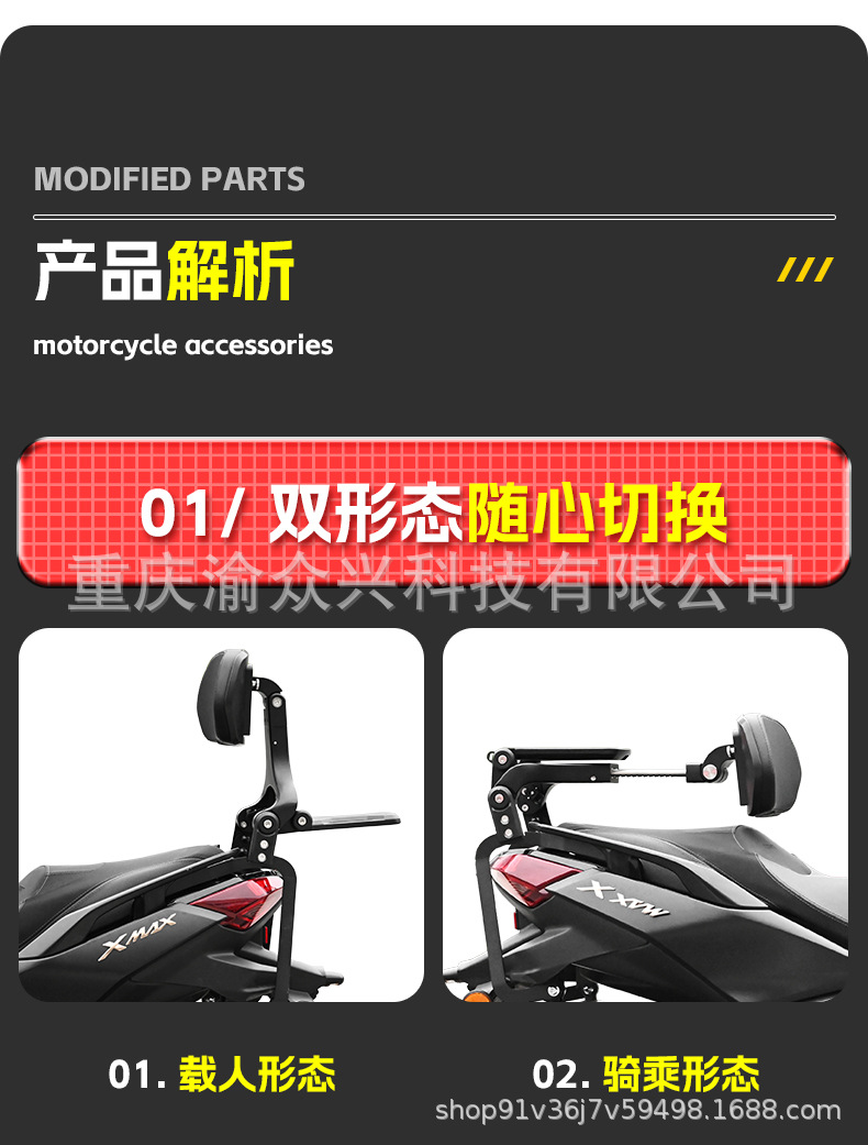 Применимо Yamaha XMAX300 складной спинки водителя пассажира телескопическое кресло самокат из алюминиевого сплава талии