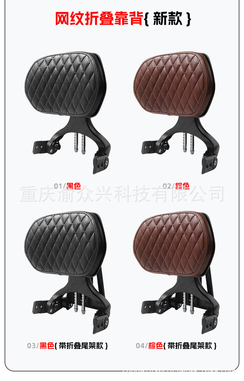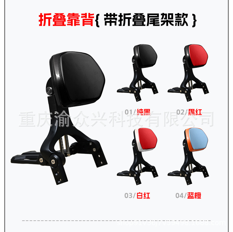 Складная спинка чистого черного цвета; Черно-красная складная спинка; Белая и красная складная спинка; Синяя и оранжевая складная спинка.; Складная спинка чистого черного цвета со складной хвостовой стойкой.; Черно-красная складная спинка со складной хвостовой стойкой.; Белая и красная складная спинка со складной хвостовой стойкой.; Синяя и оранжевая складная спинка со складной хвостовой полкой.; Складная спинка с гальваническим покрытием и складной хвостовой полкой.; Складная опора из черной сетки; Складная спинка из коричневой сетки; Складная спинка из черной сетки со складной хвостовой стойкой.; Складная спинка из коричневой сетки со складной хвостовой полкой.