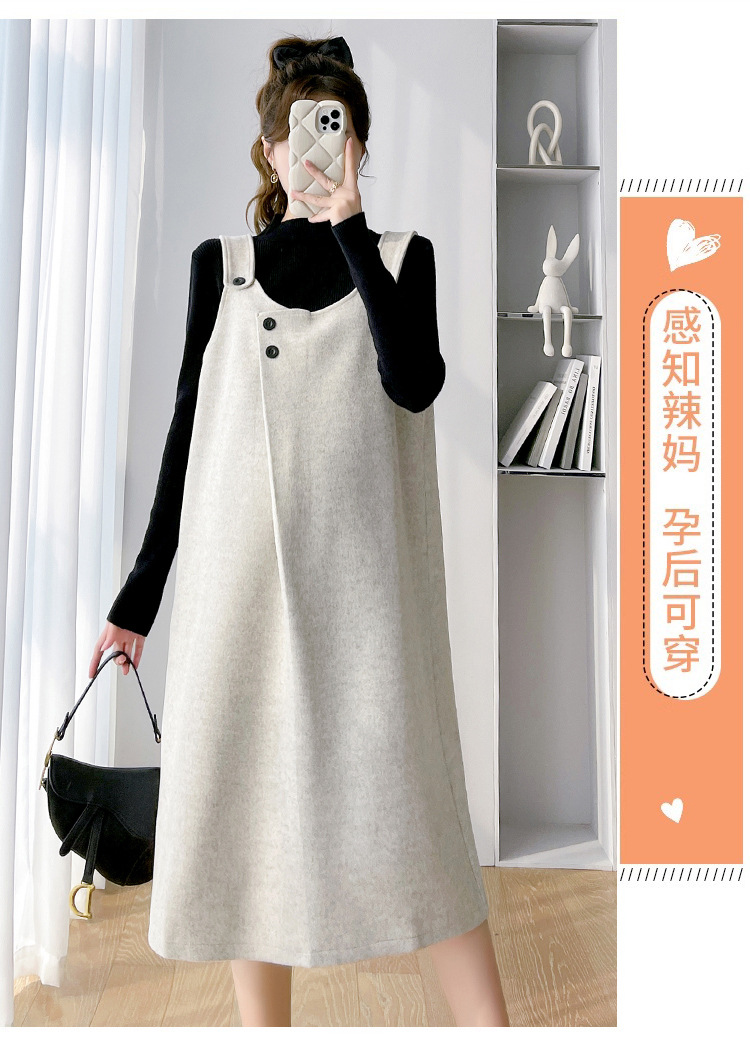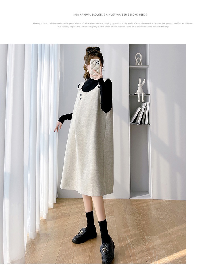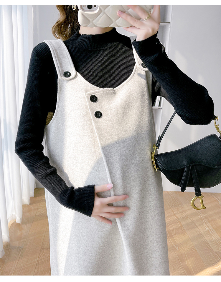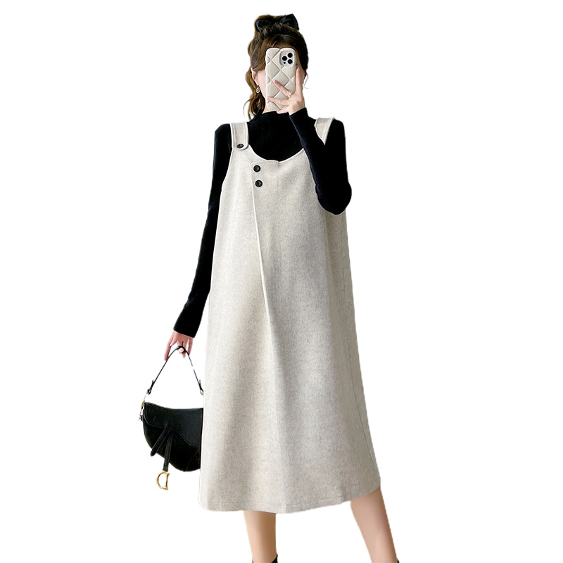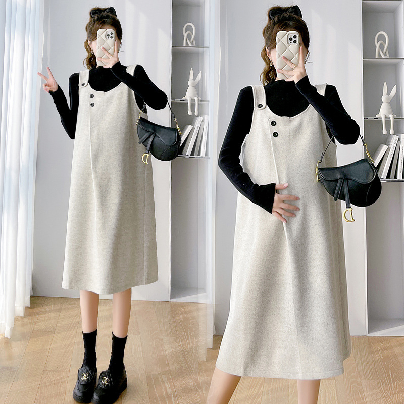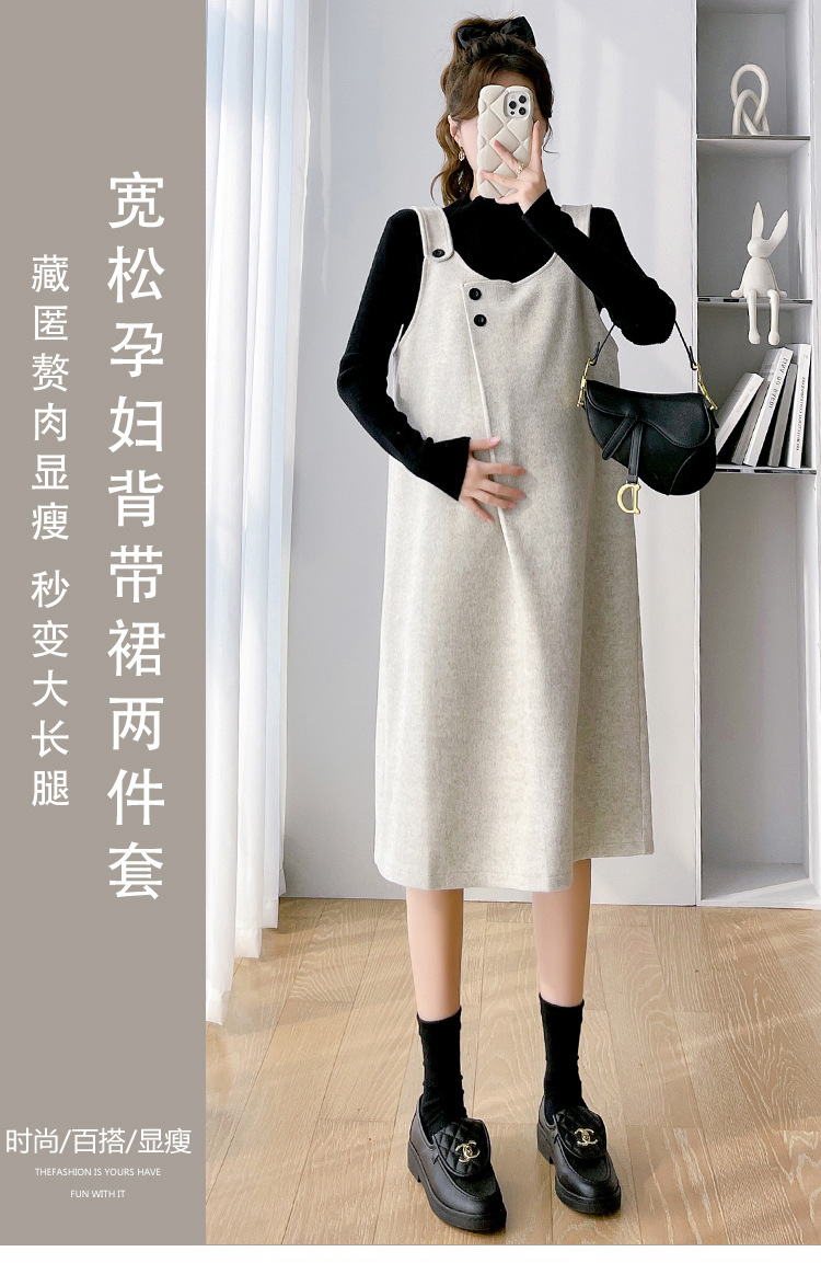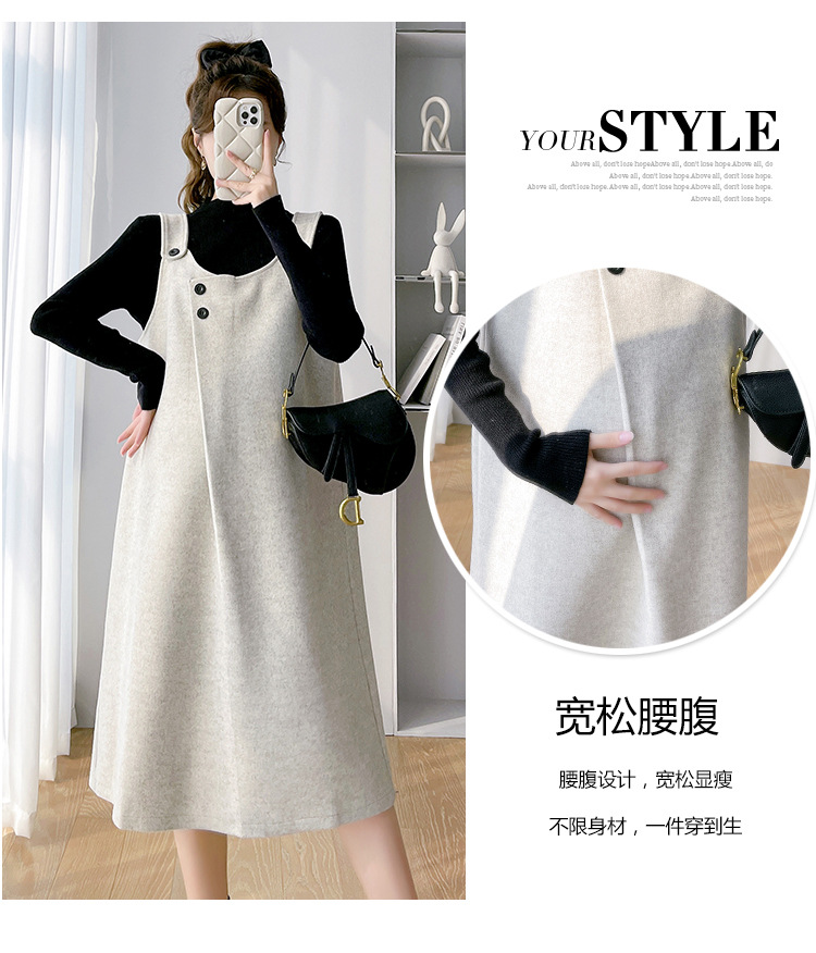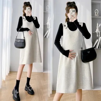Фото реального образца: комплект для беременных 2025 года, осенне-зимний свитер-базовый слой и модный свободный шерстяной жилет-платье, комплект из двух предметов.