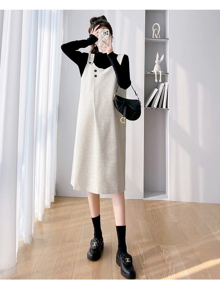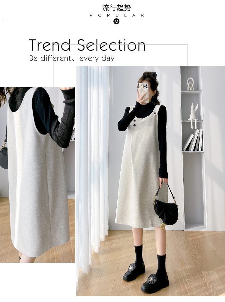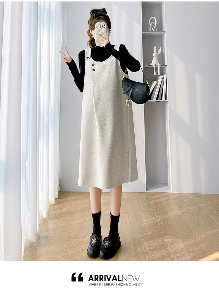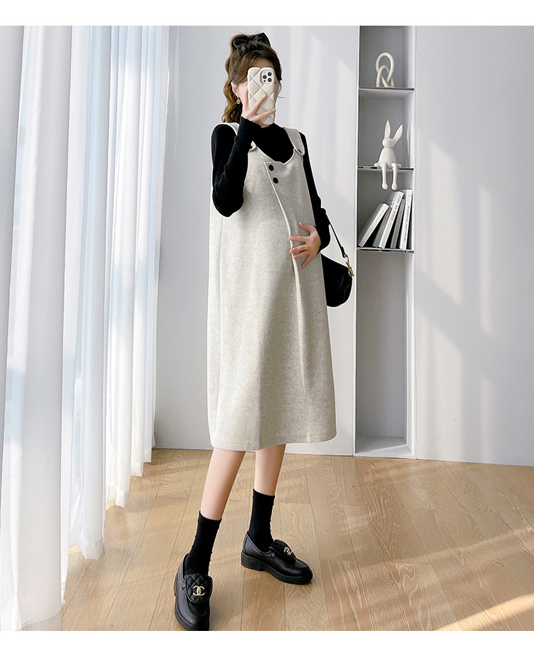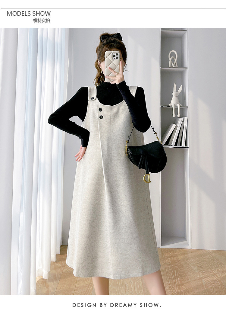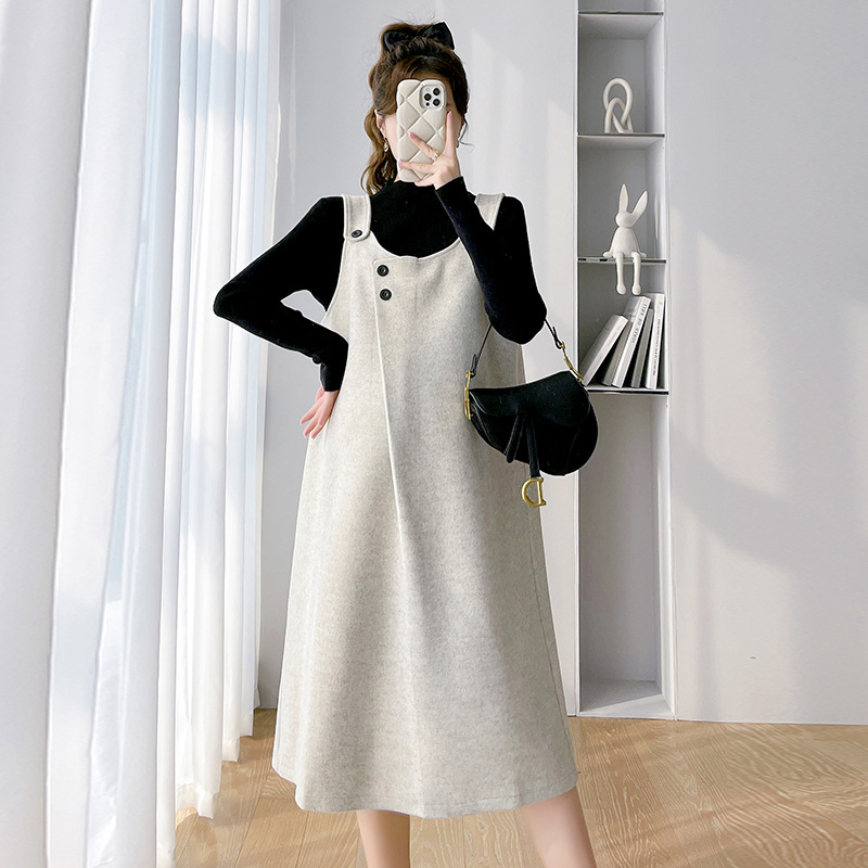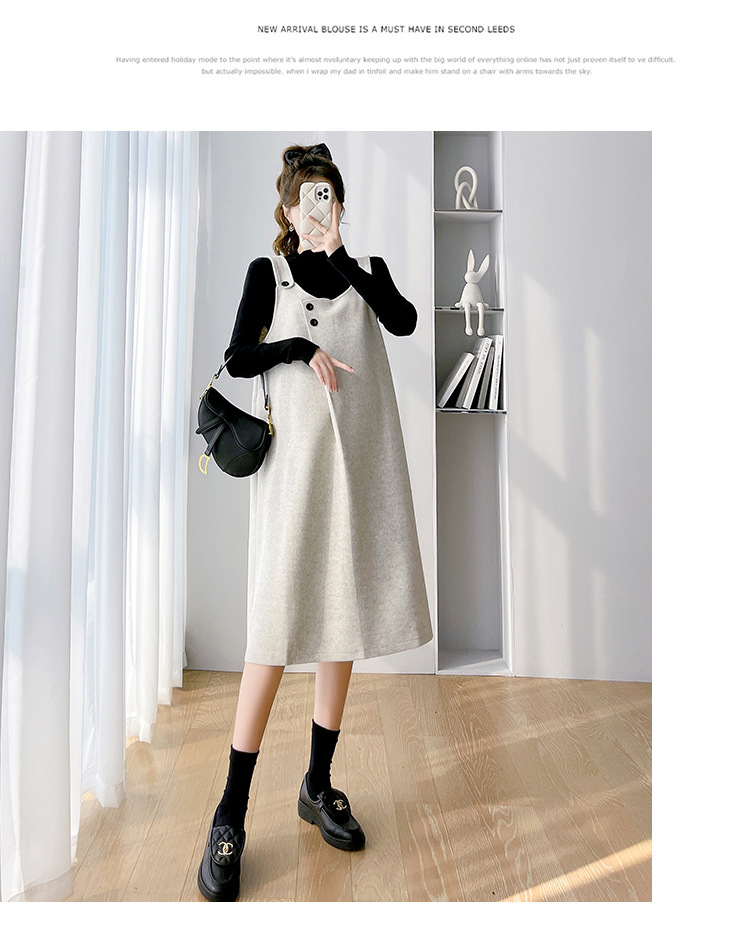 Фото реального образца: комплект для беременных 2025 года, осенне-зимний свитер-базовый слой и модный свободный шерстяной жилет-платье, комплект из двух предметов.