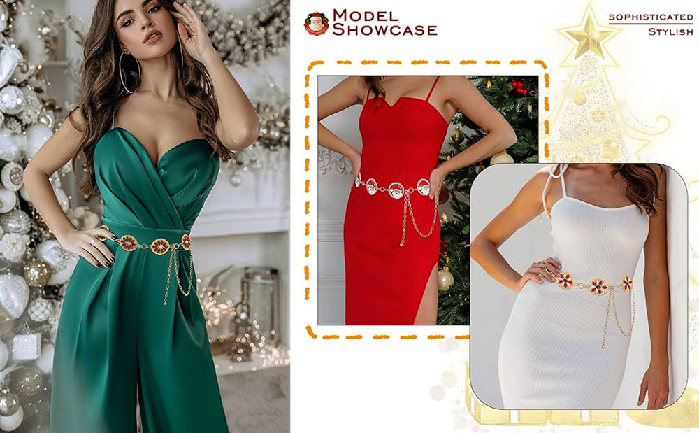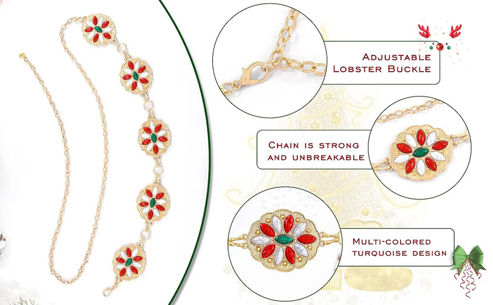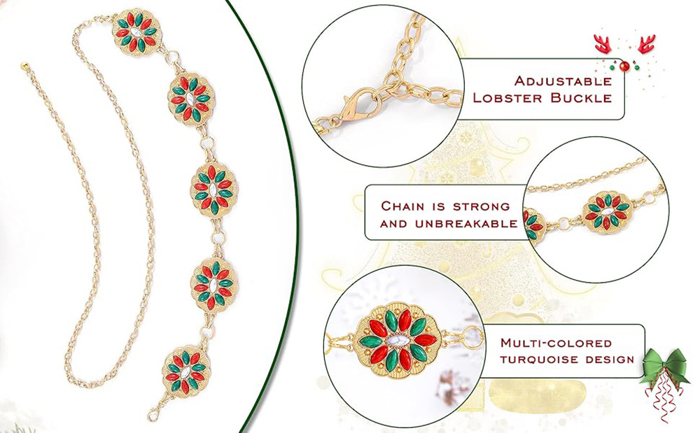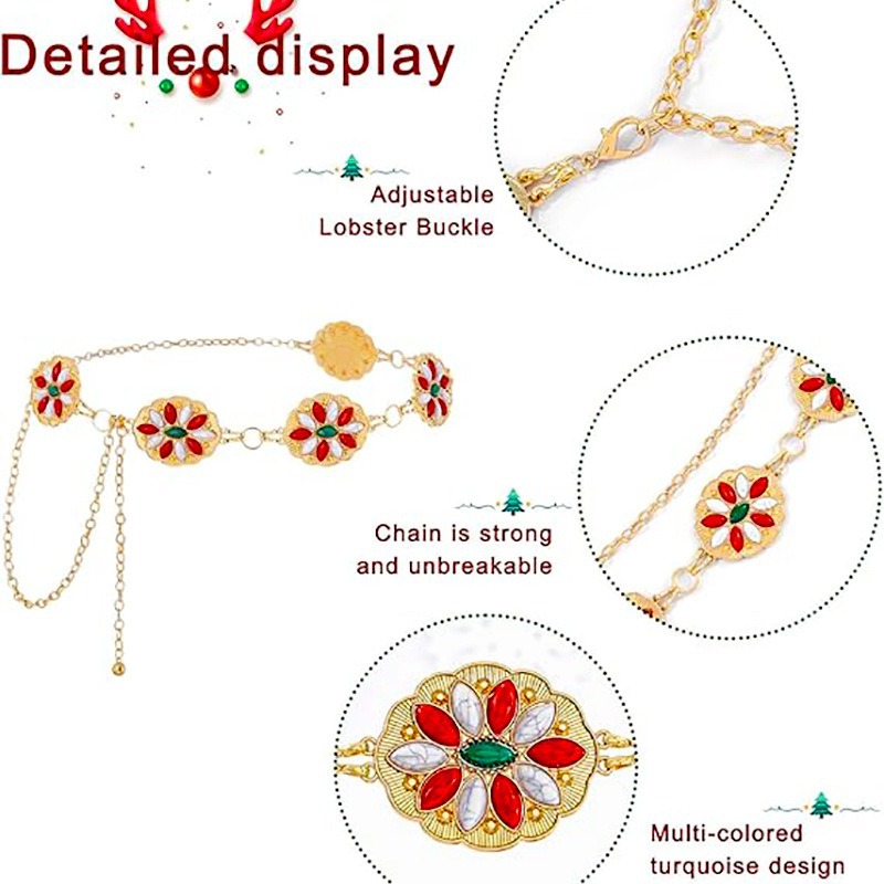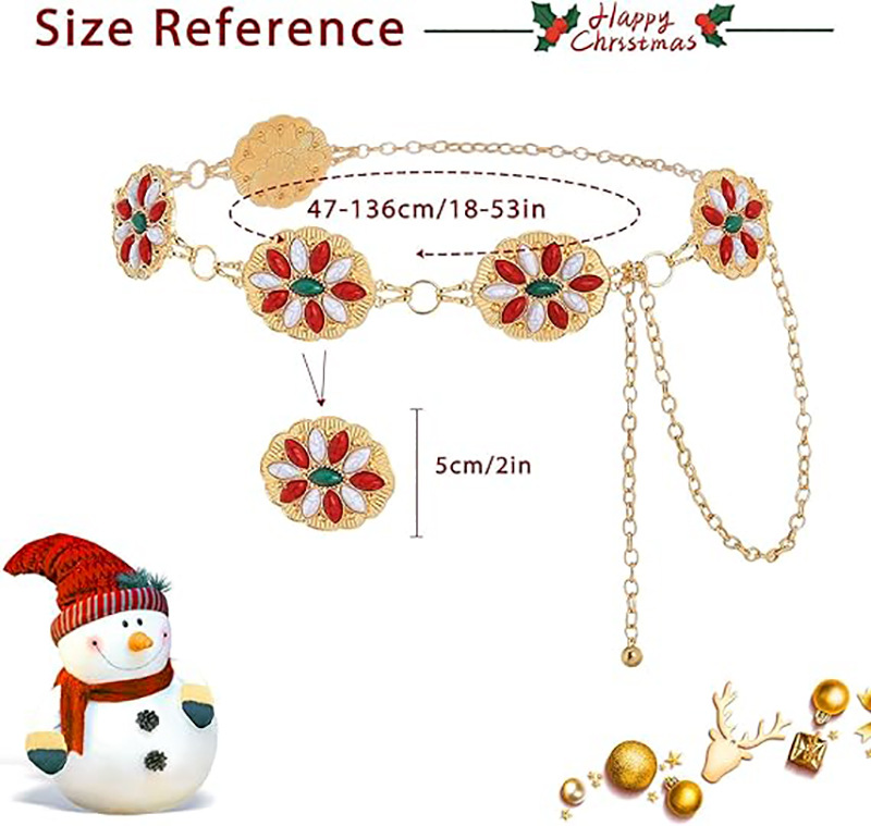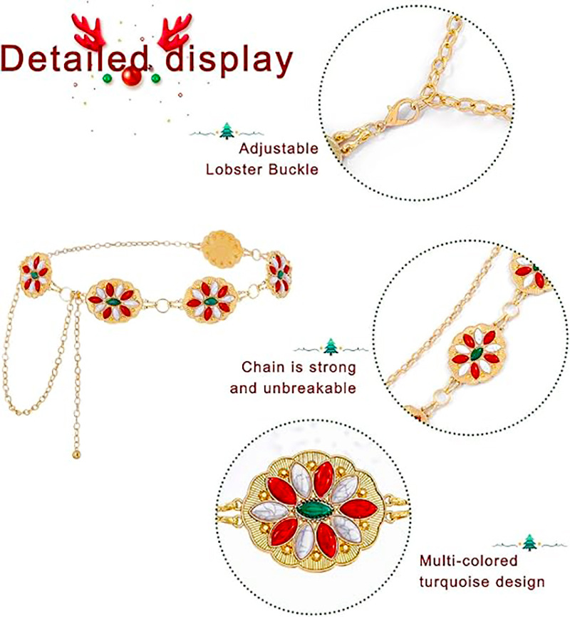 Рождественская ювелирная цепочка талии, европейская и американская бирюза, инкрустированная экологически чистым цинковым сплавом, металлическая резьба, праздничная талия