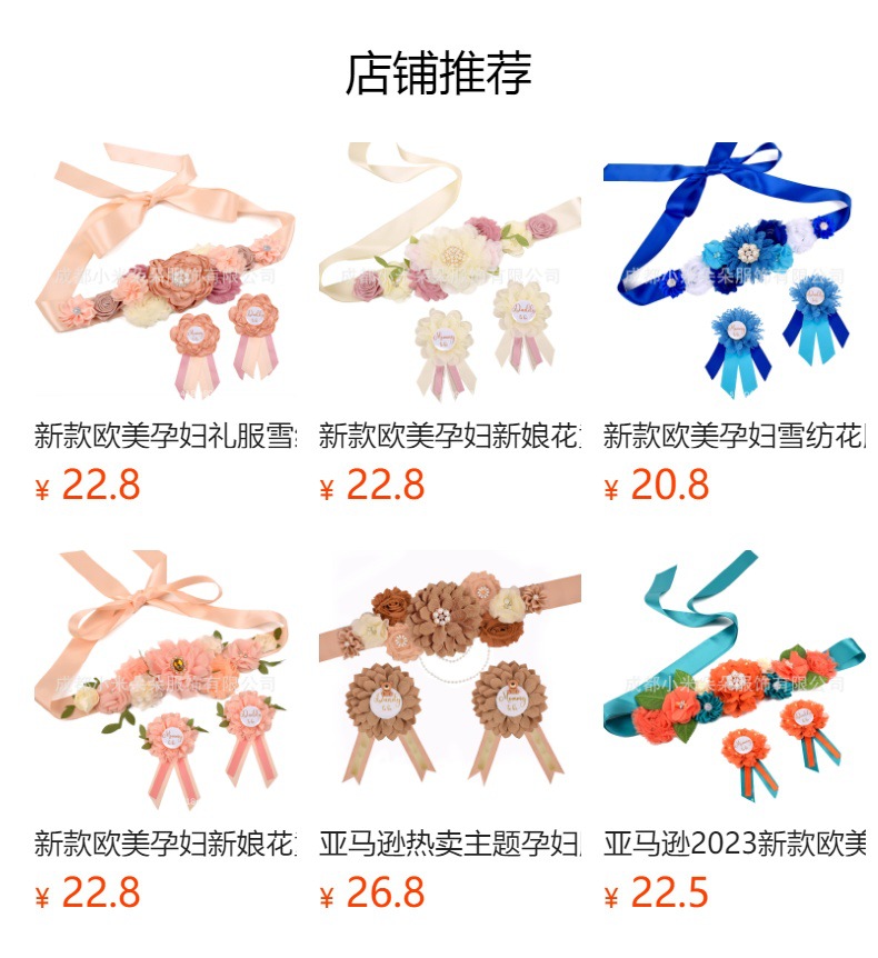 跨境亚马逊热销孕妇雪纺花朵腰带 迎婴派对孕妇装饰腰饰道具