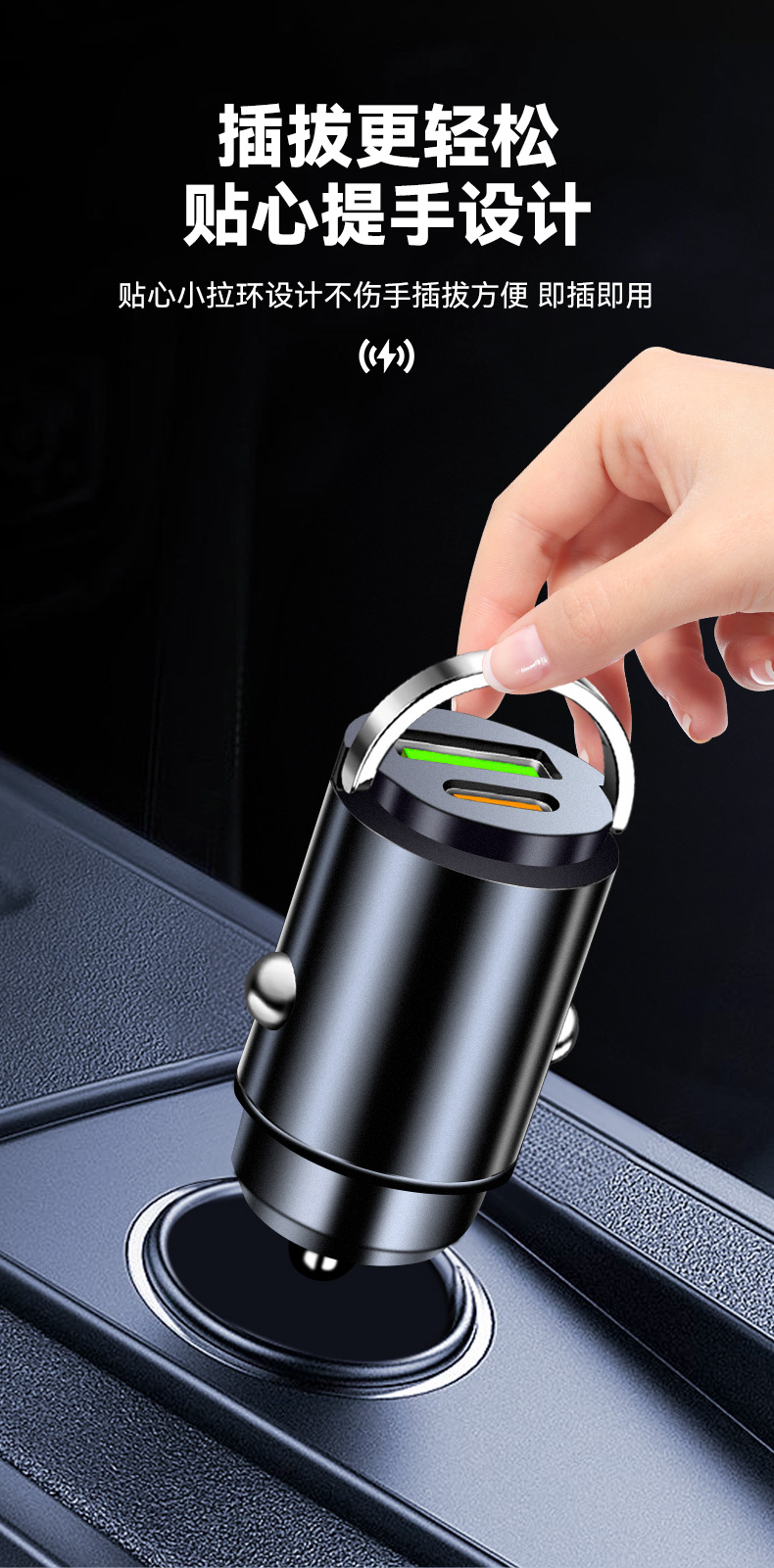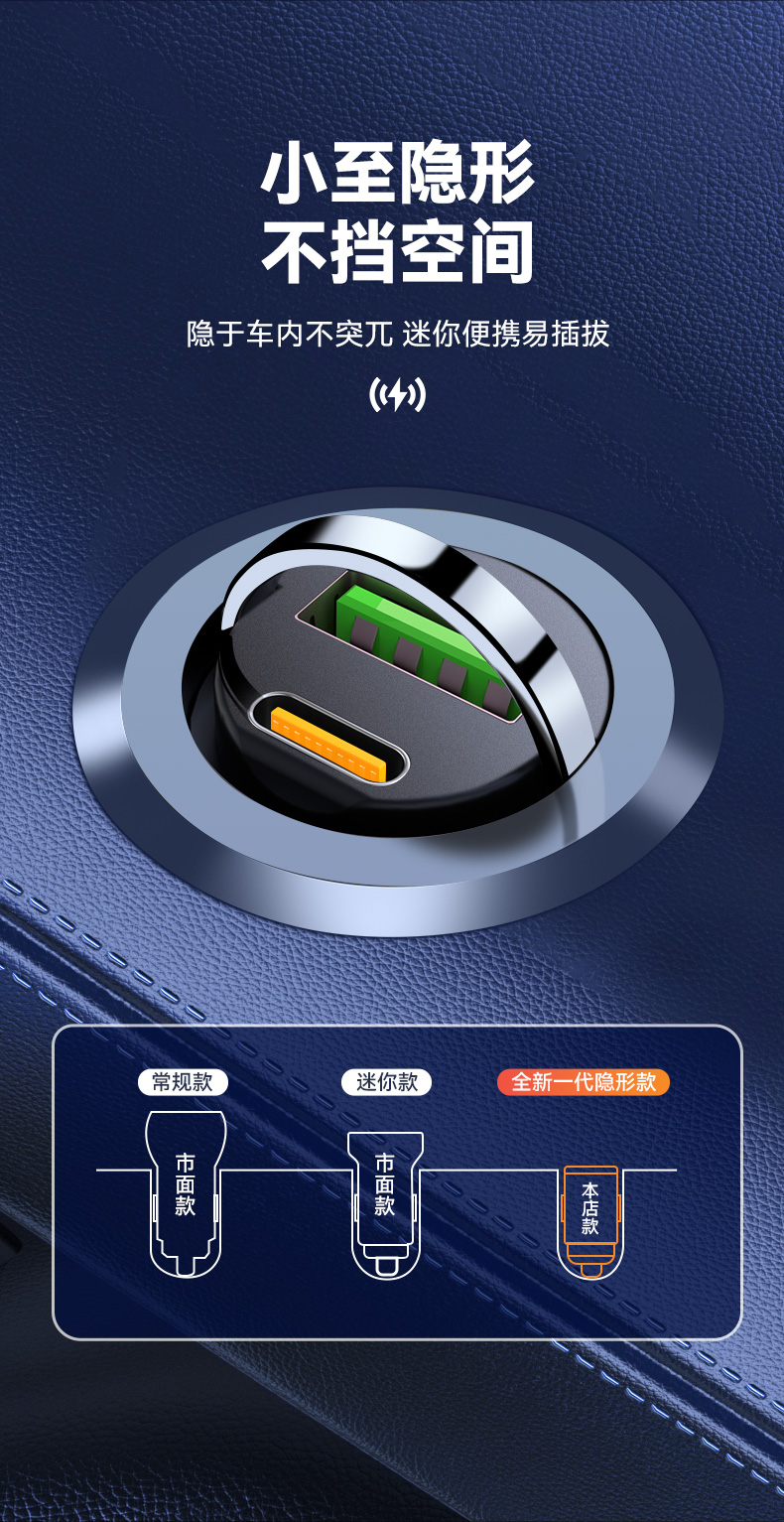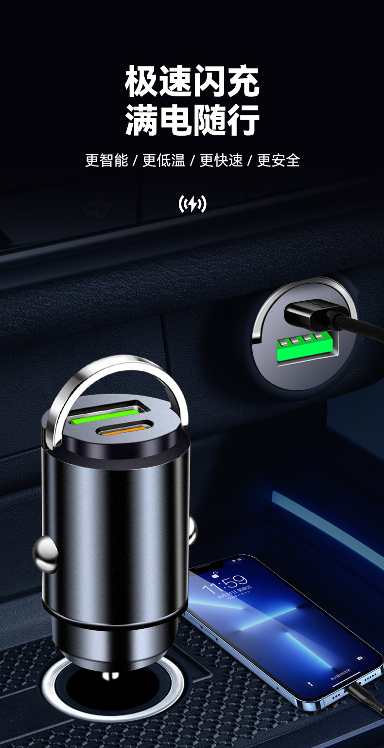 Трансграничное мини-невидимое автомобильное зарядное устройство PD30W, сверхбыстрая зарядка, автомобильный прикуриватель, автомобильное зарядное устройство для мобильного телефона, зарядная головка.