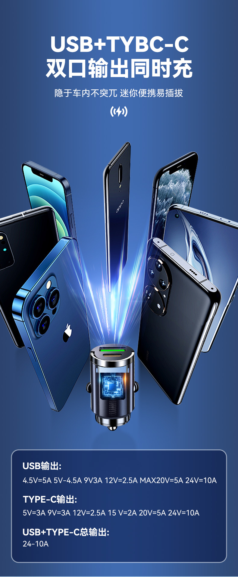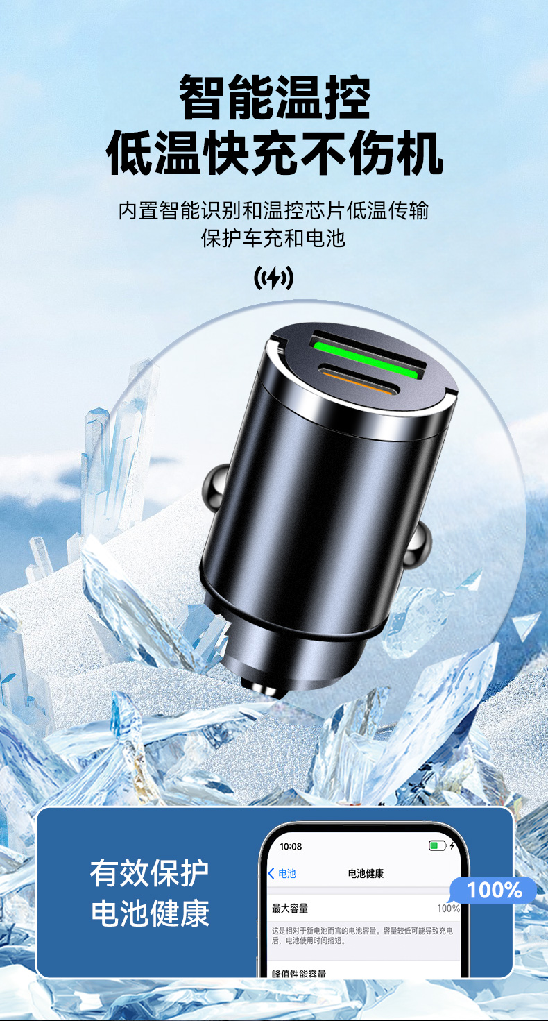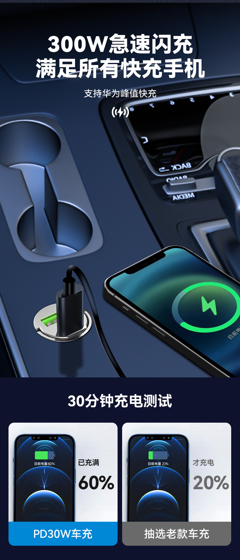 Трансграничное мини-невидимое автомобильное зарядное устройство PD30W, сверхбыстрая зарядка, автомобильный прикуриватель, автомобильное зарядное устройство для мобильного телефона, зарядная головка.