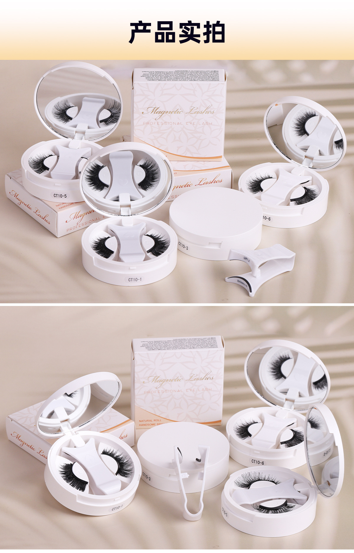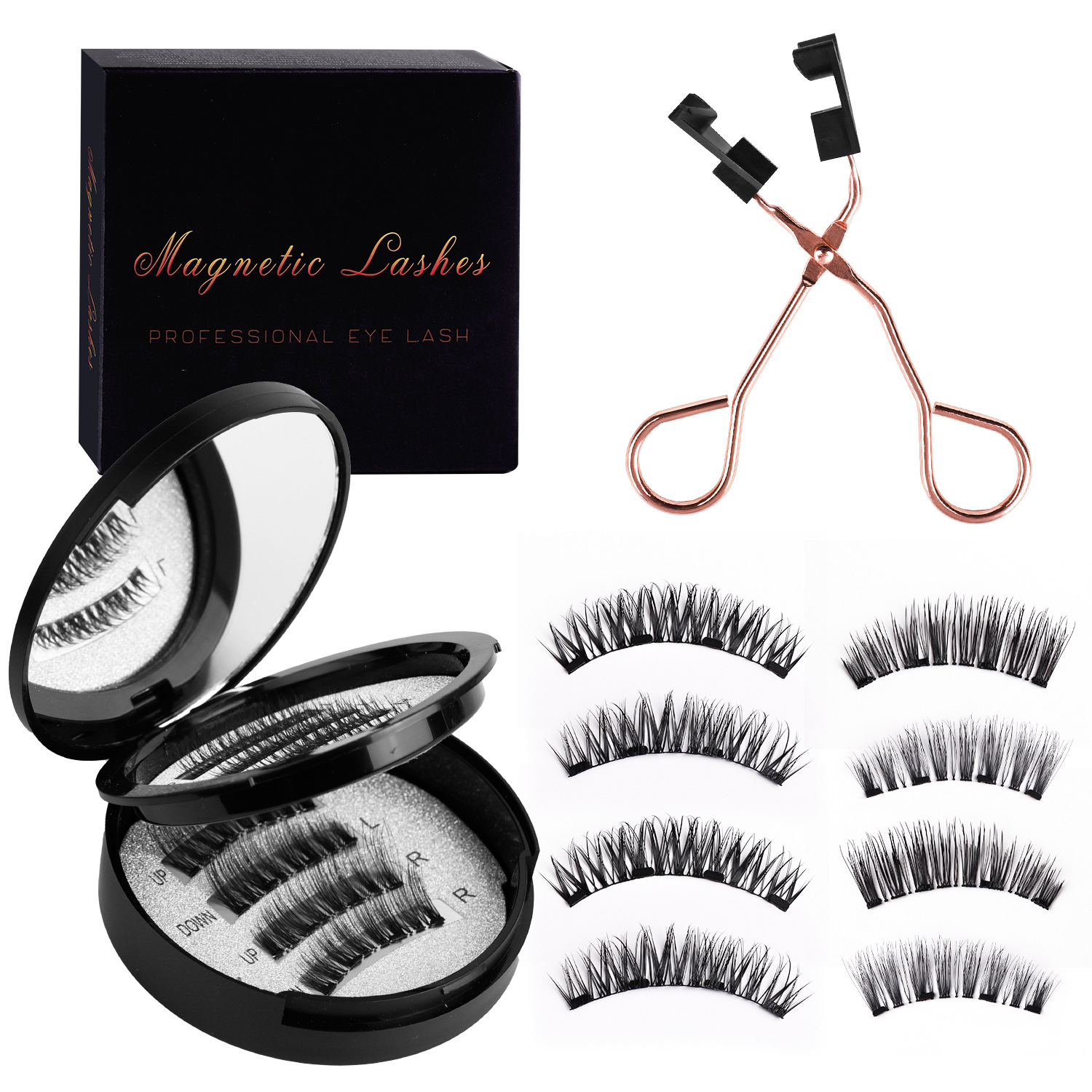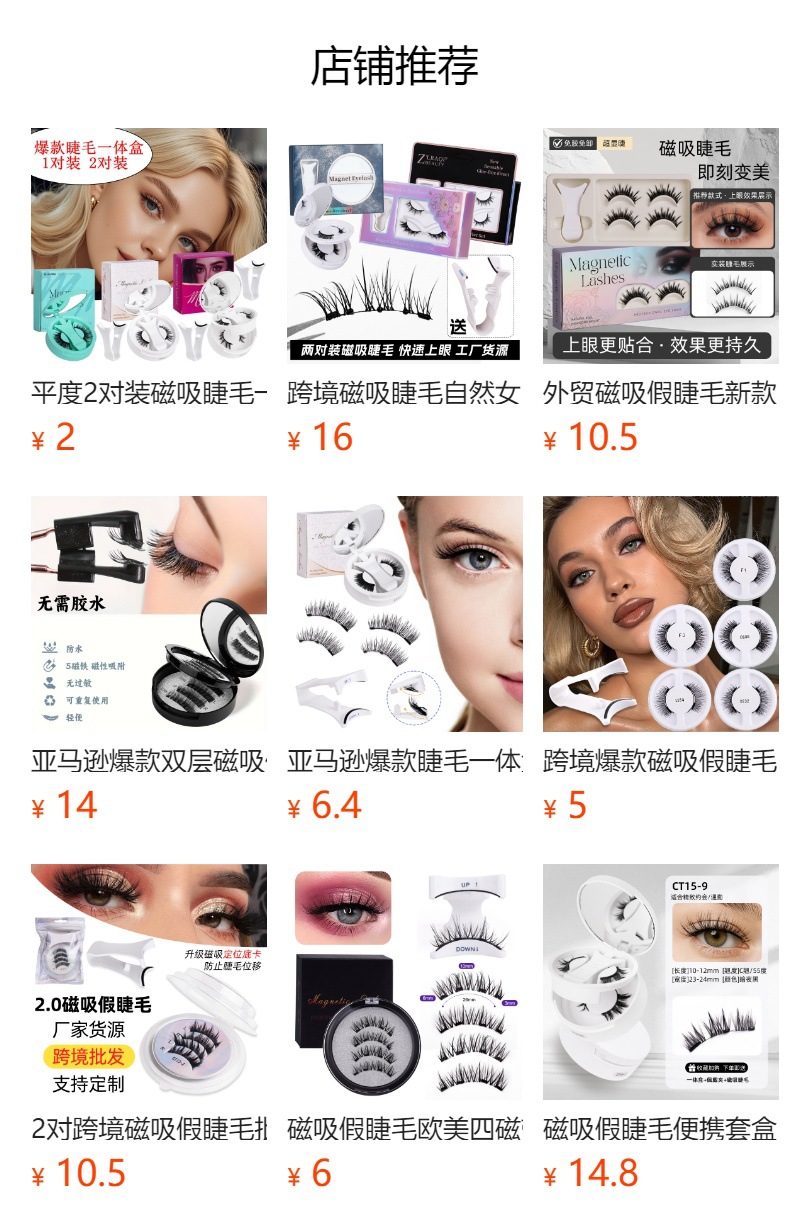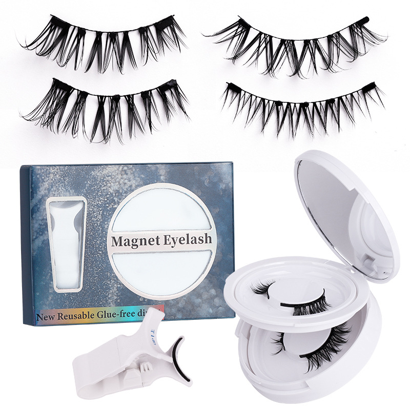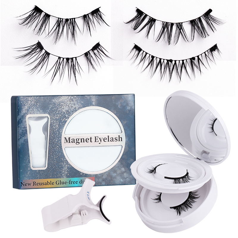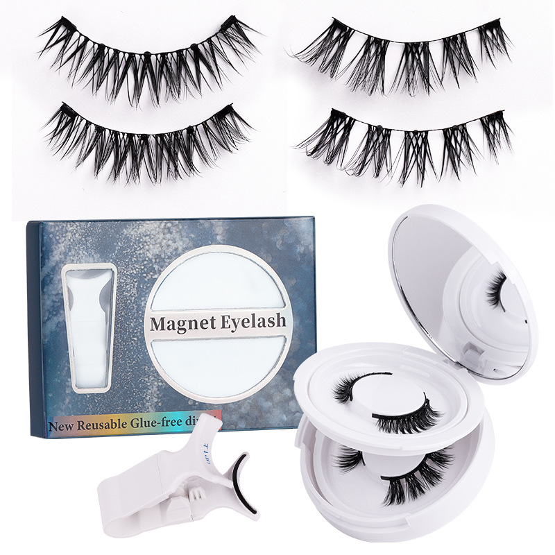 磁吸假睫毛双层圆盒 亚马逊欧美浓密强磁2对黑梗睫毛夹子套装工厂