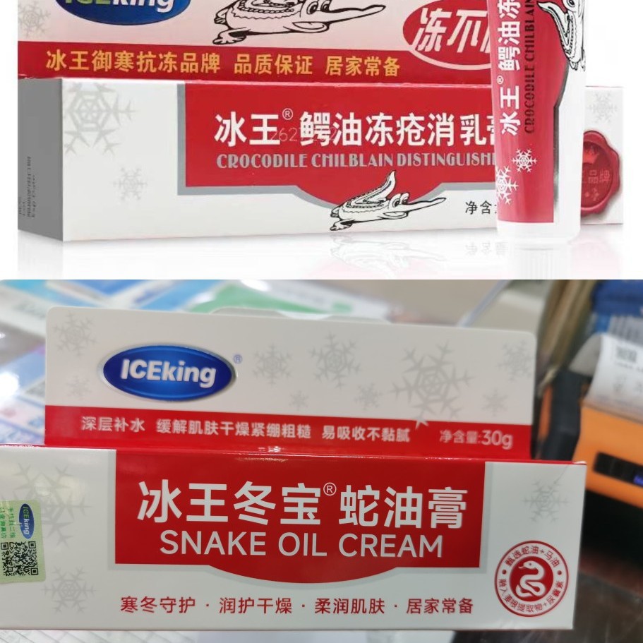 Крем Ice King Crocodile Frostbite, новая и старая упаковка отправляются случайным образом. Крем Ice King Dongbao Snake Oil, крем Crocodile Frostbite.