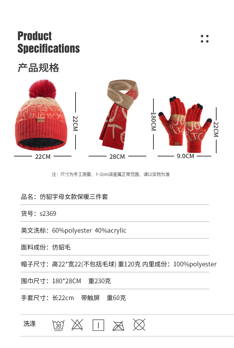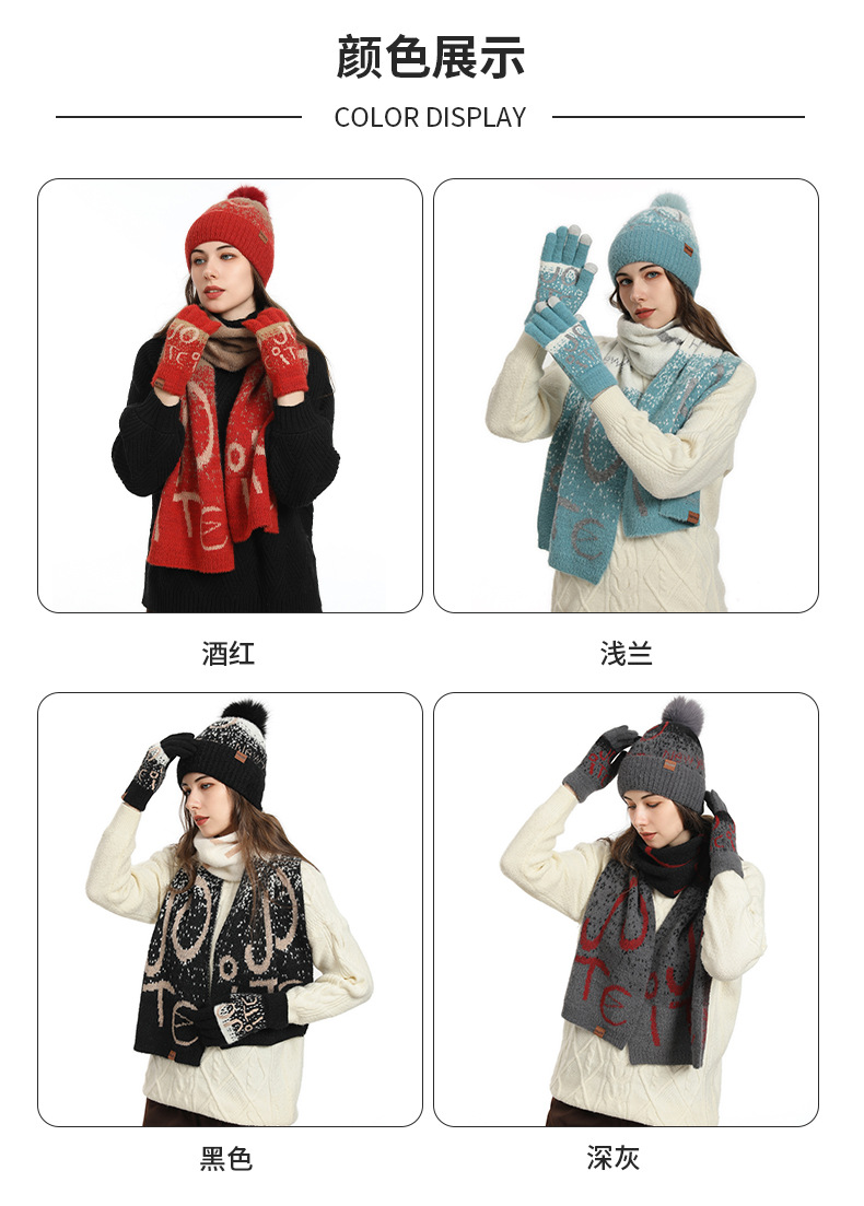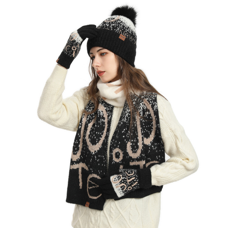 2025 трансграничный экспорт Amazon зимний жаккардовый утепленный шарф-шапка-перчатки из искусственного меха норки, набор из трех предметов для женщин