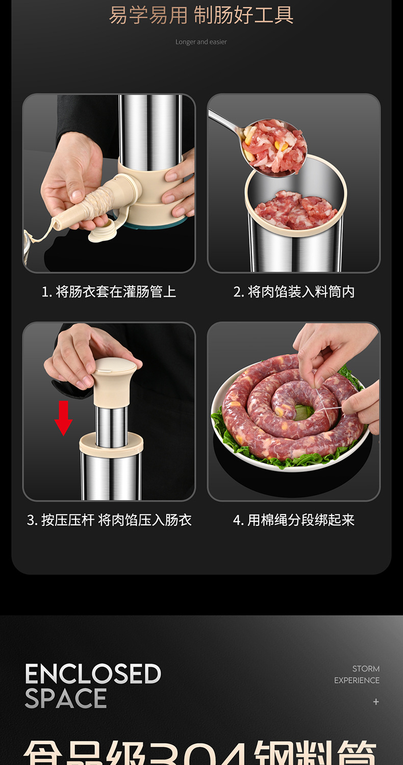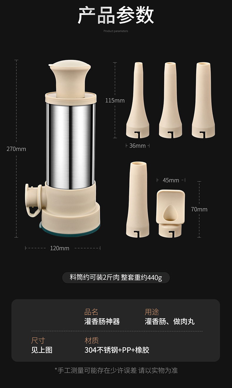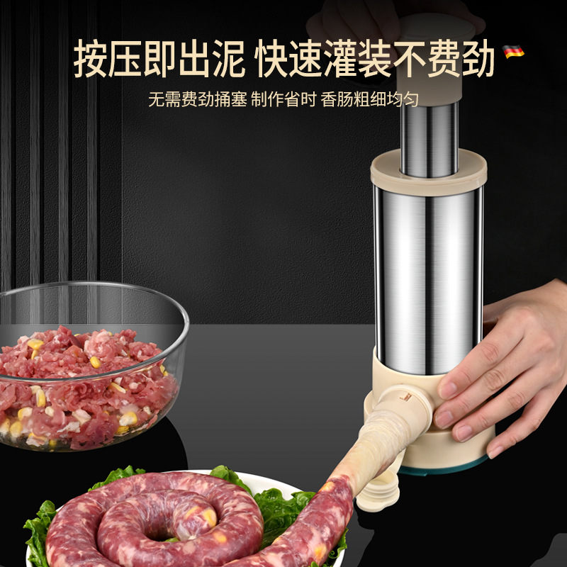 Ручной полив колбасы машина для производства колбасы Бытовая нержавеющая сталь Кизма Кизма ручной толкатель самодельная колбаса инструмент