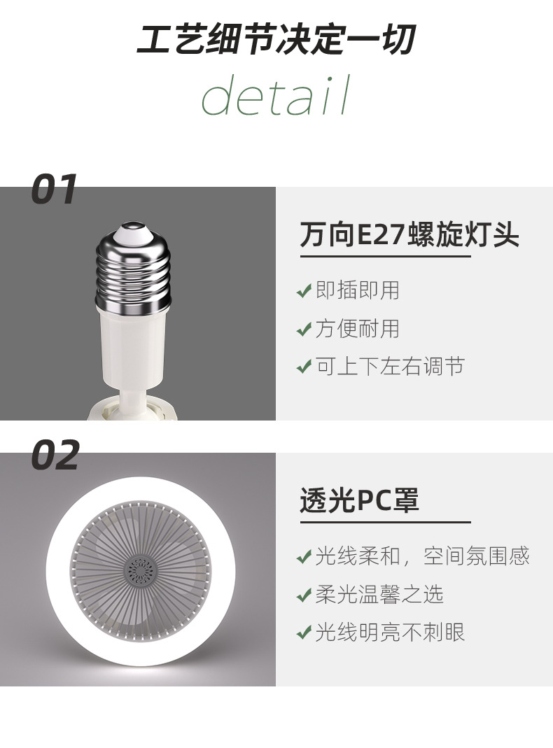 E27E26 Вентилятор E27 Remote-Controlled Fan Light