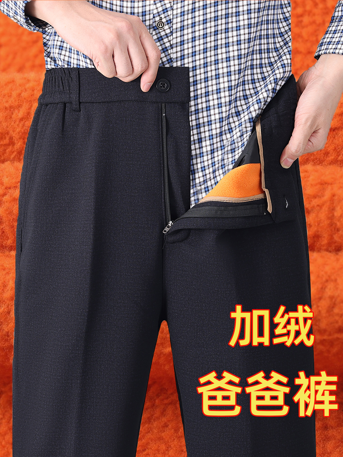 Папа вельстые брюки осенние и зимние модели среднего и пожилого возраста толстые теплые брюки носить зимние мужские повседневные брюки