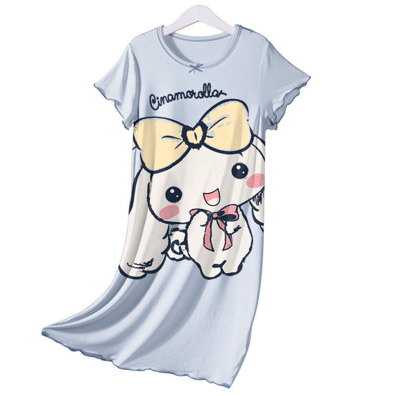 Ледяной шелк летом новый детский пижама девушка ночная рубашка с короткими рукавами летняя тонкая девушка мультфильм милый домашний костюм прилив