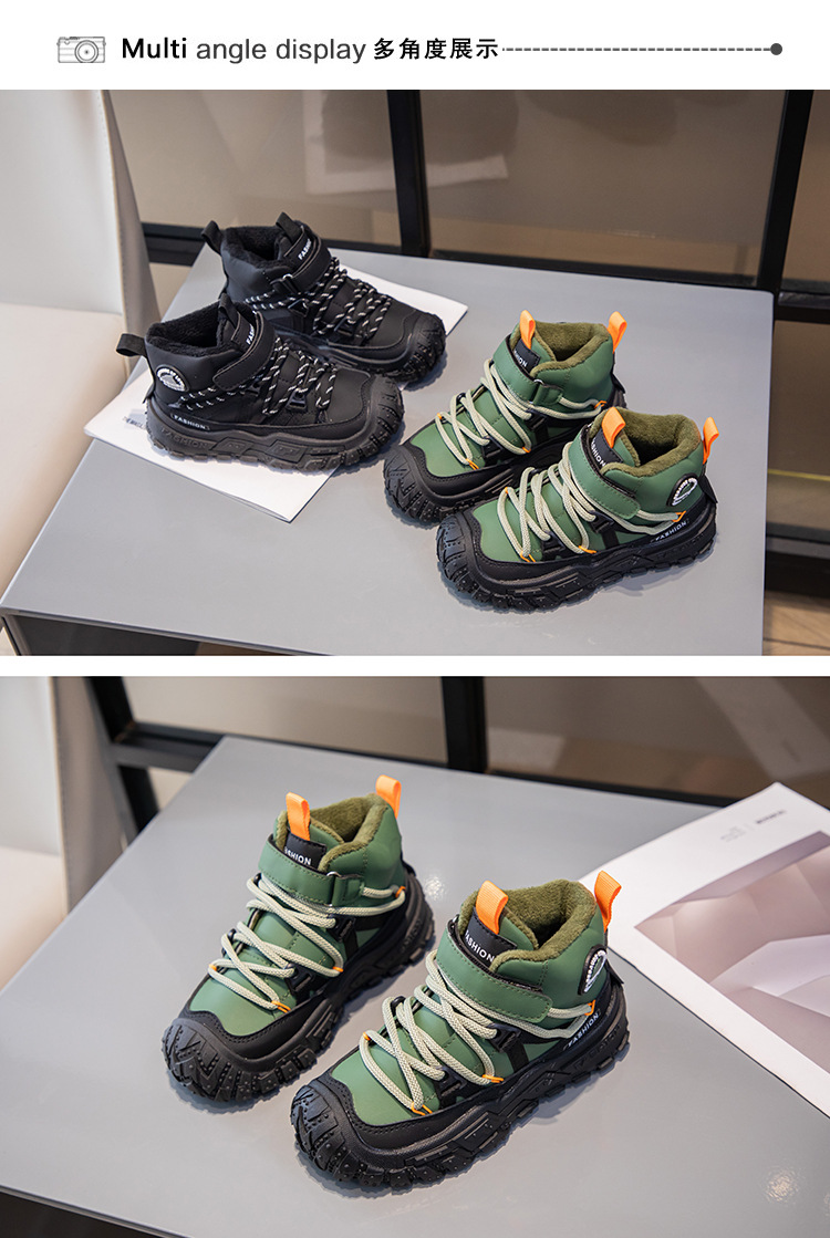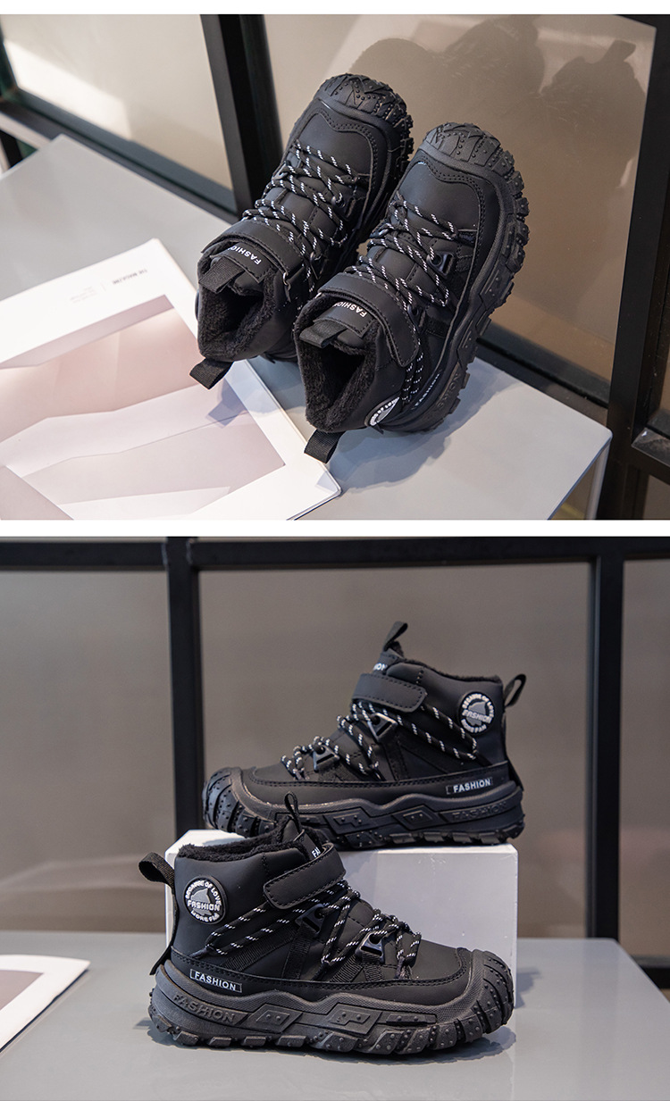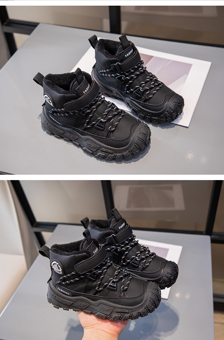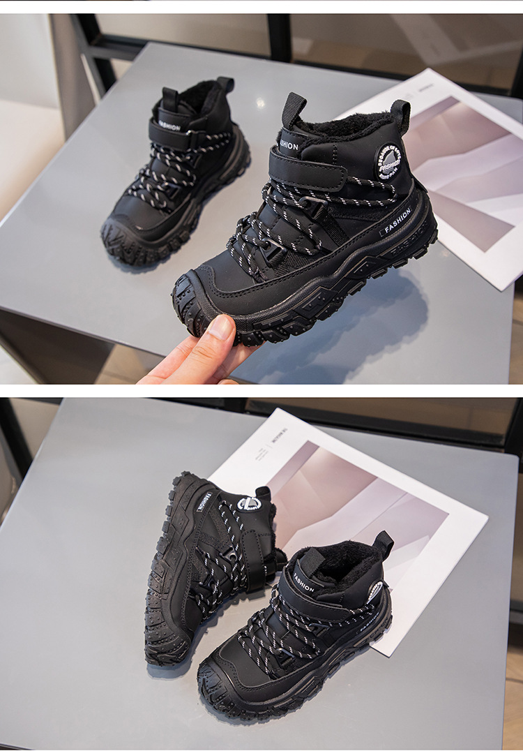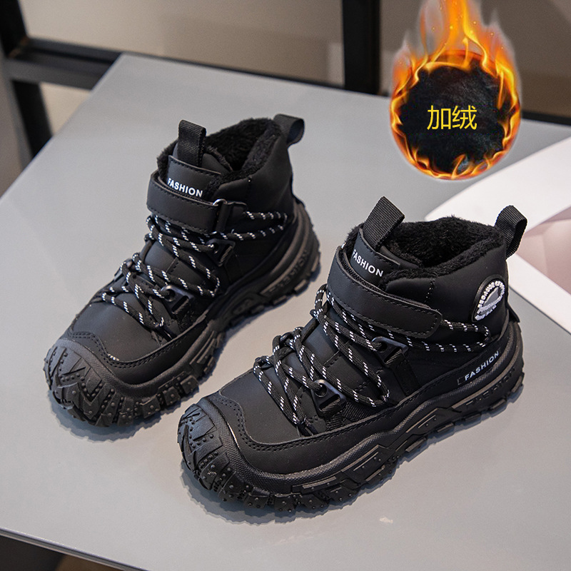 Детские ботинки на флисовой подкладке, спортивные ботинки средней высоты, зима 2025, новые, для девочек, мягкая подошва, двухслойные, повседневные, для мальчиков, кроссовки