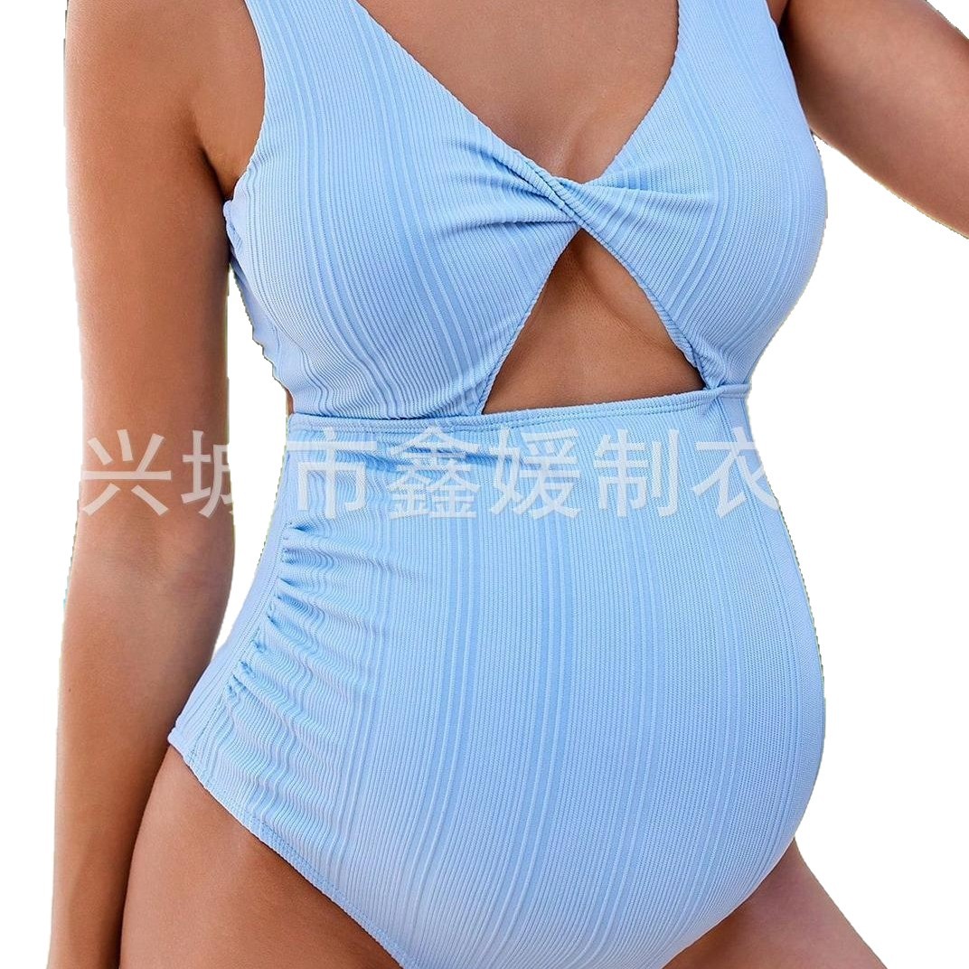2025 новые женщины беременные европейские и американские купальники бикини светло-синий цельный купальник для солнцезащитного крема