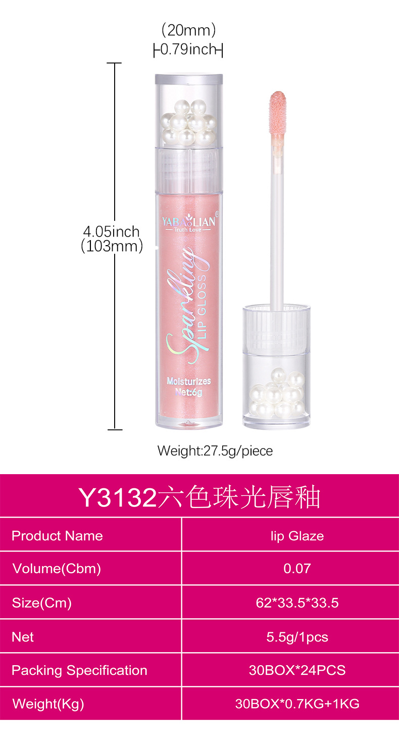 Жемчужная глазурь для губ трансграничная амазонка взрывной YABAOLIAN водонепроницаемый блестящий блеск для губ водяной свет влажный блеск для губ глазурь