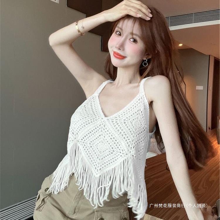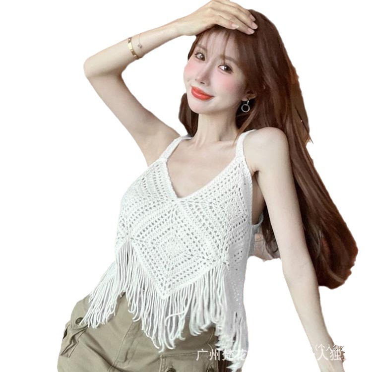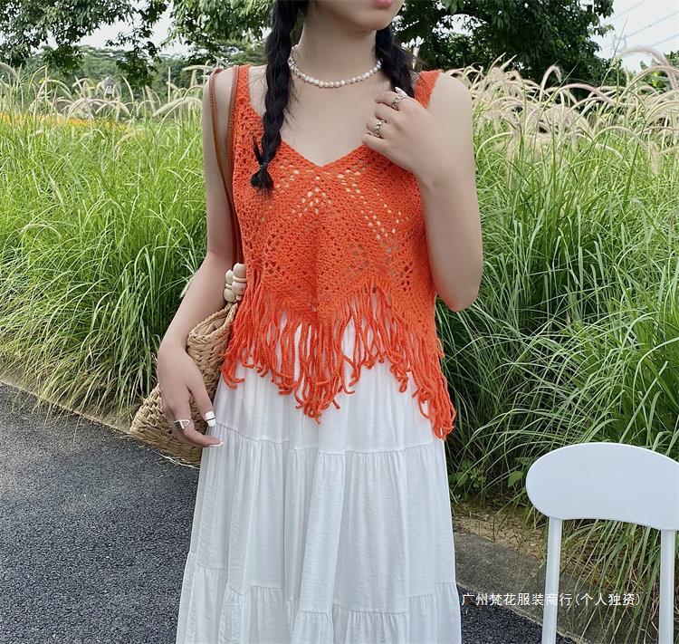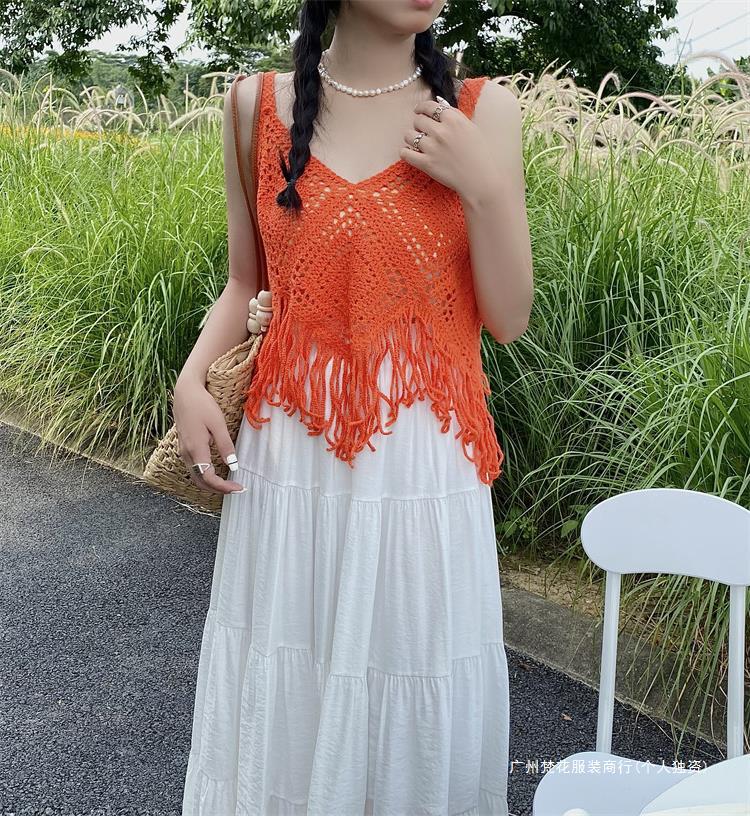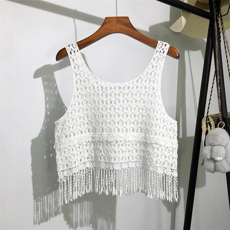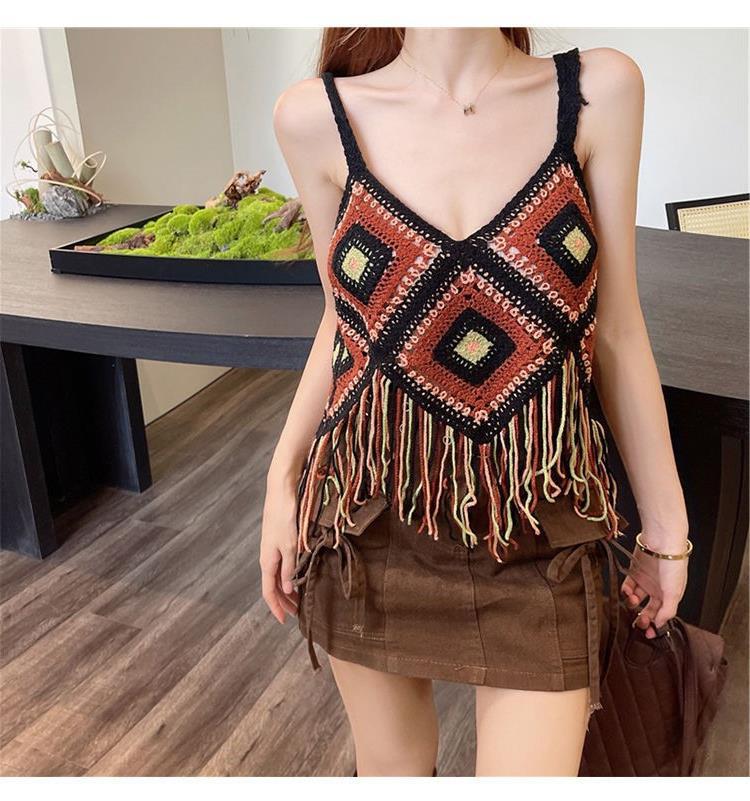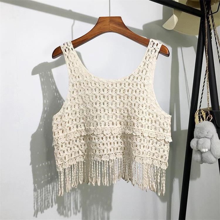 Вязаный жилет с кисточками с полым крючком для женщин топ ретро свободный без рукавов