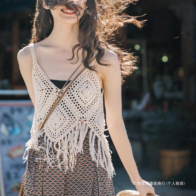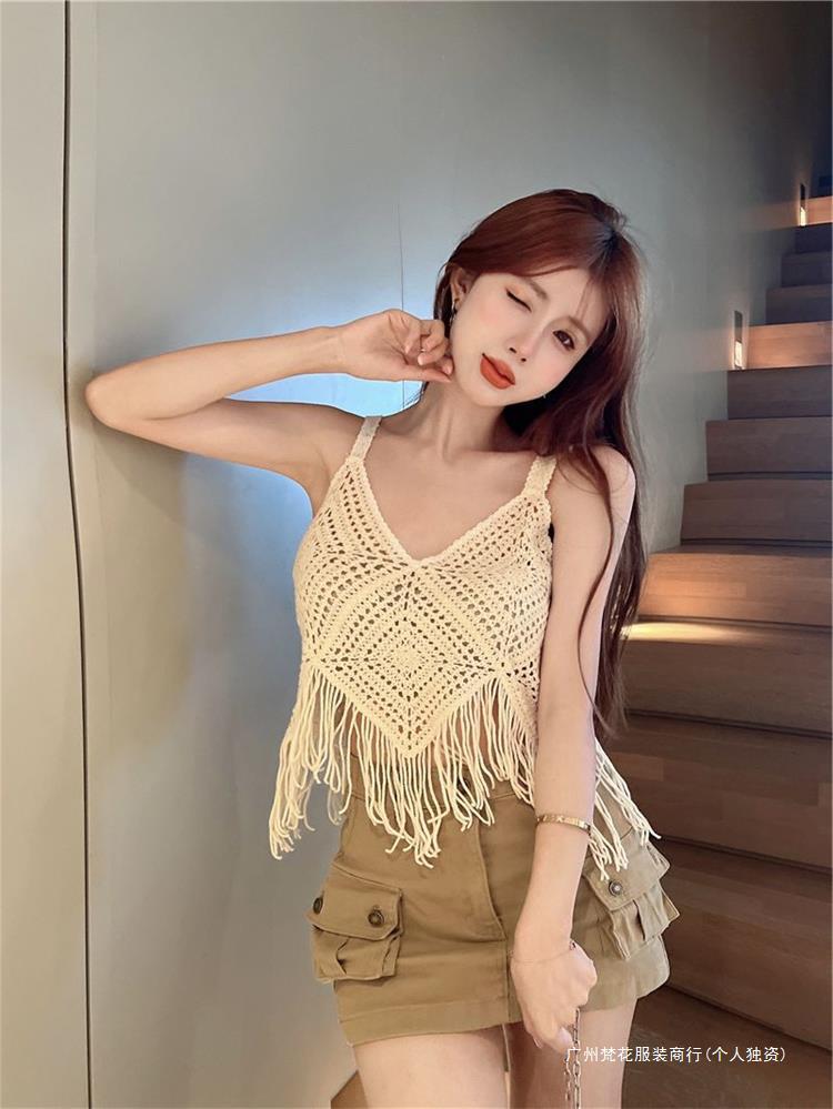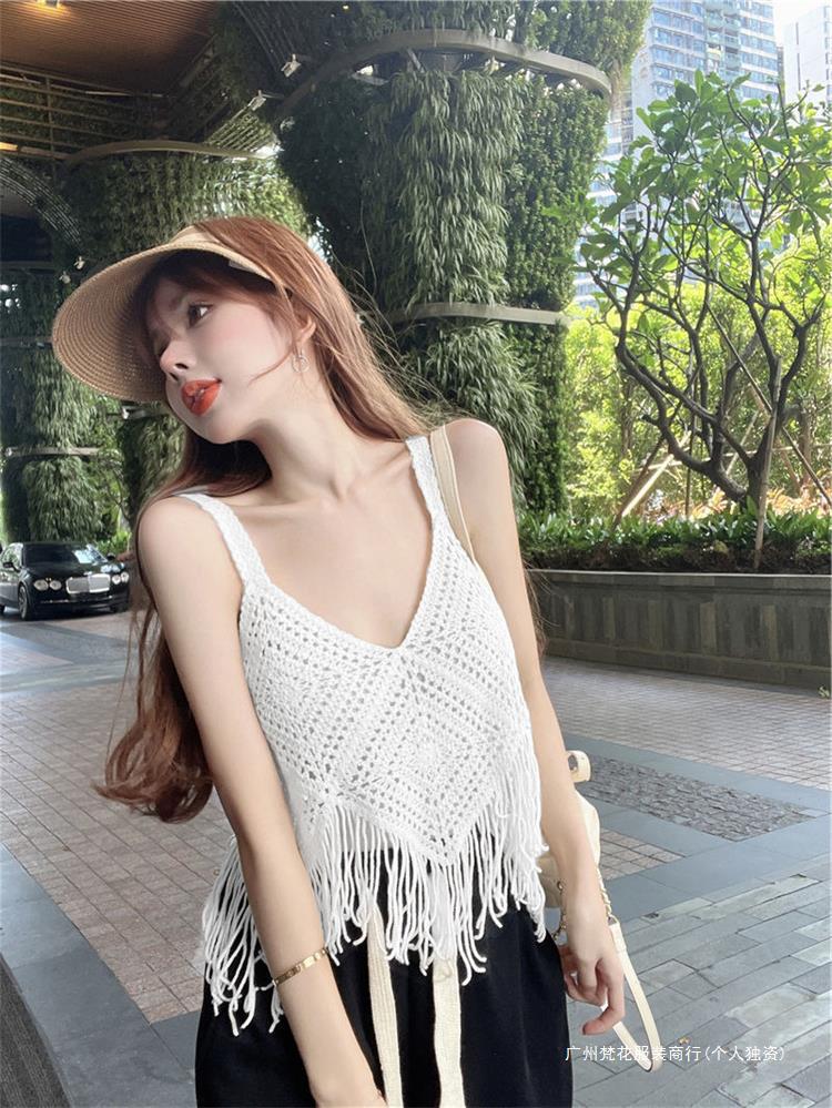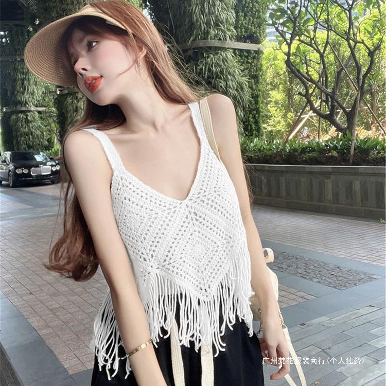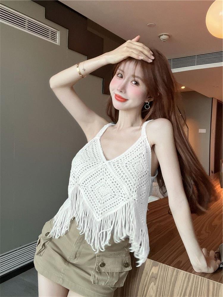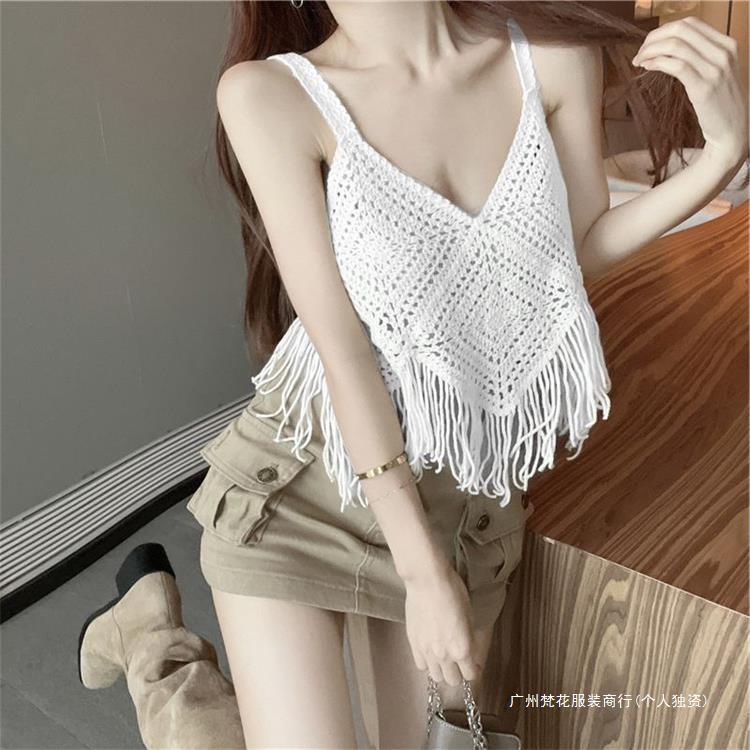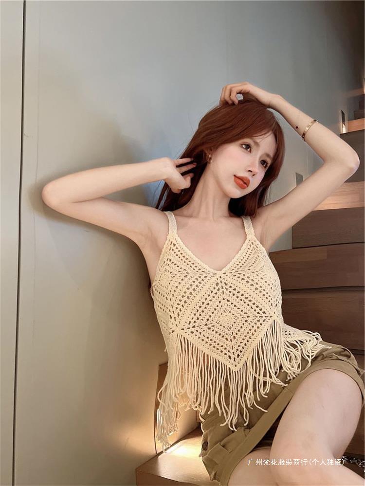 Вязаный жилет с кисточками с полым крючком для женщин топ ретро свободный без рукавов