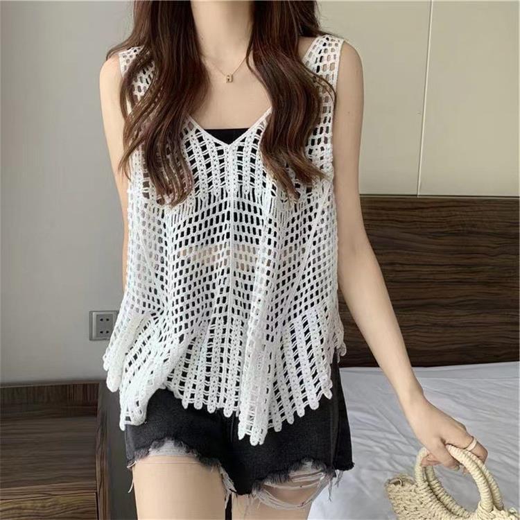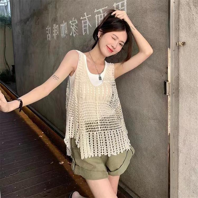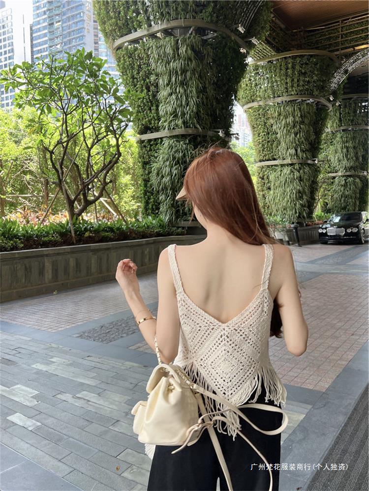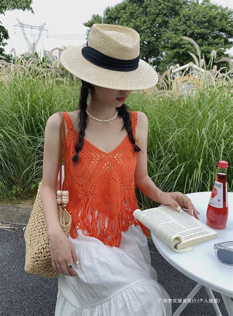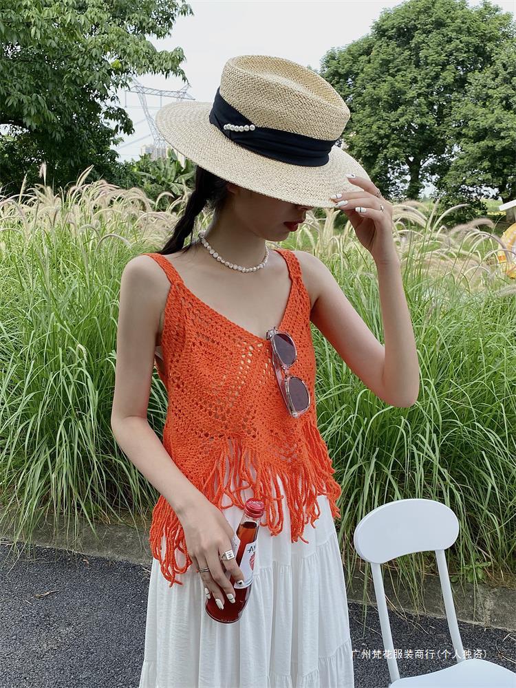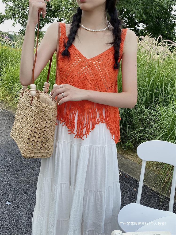 Вязаный жилет с кисточками с полым крючком для женщин топ ретро свободный без рукавов