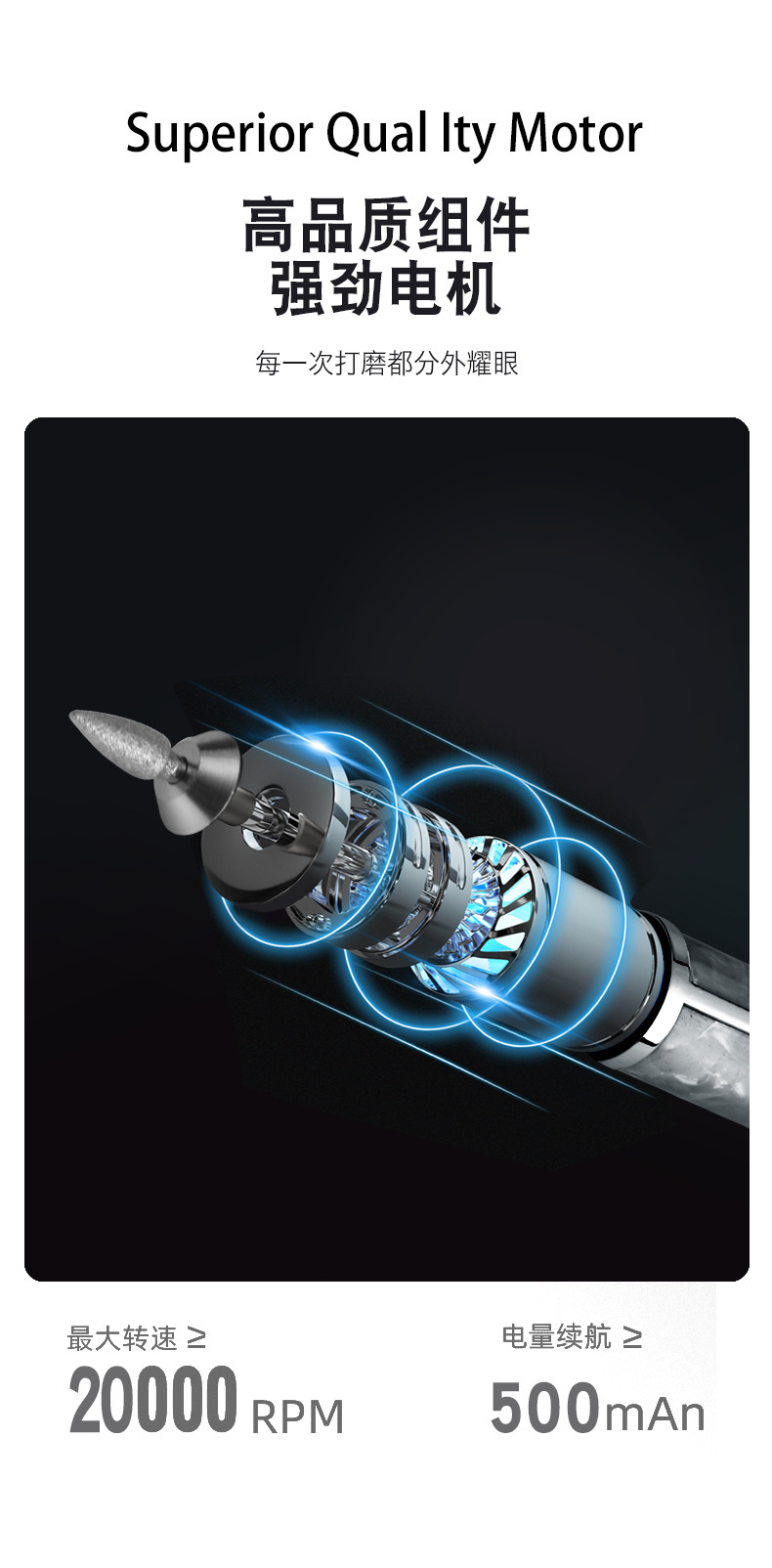 Шлифовальный станок для ногтей Малый электрический полированный серый толстый инструмент для ногтей