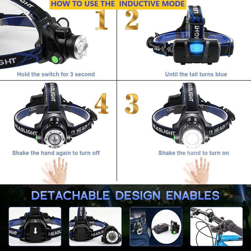 Сильный свет T6 индукционная головная лампа затемненная фокусировка дальнего света мини супер яркий желтый свет ночная рыбалка шахтерская лампа DC перезаряжаемая фара