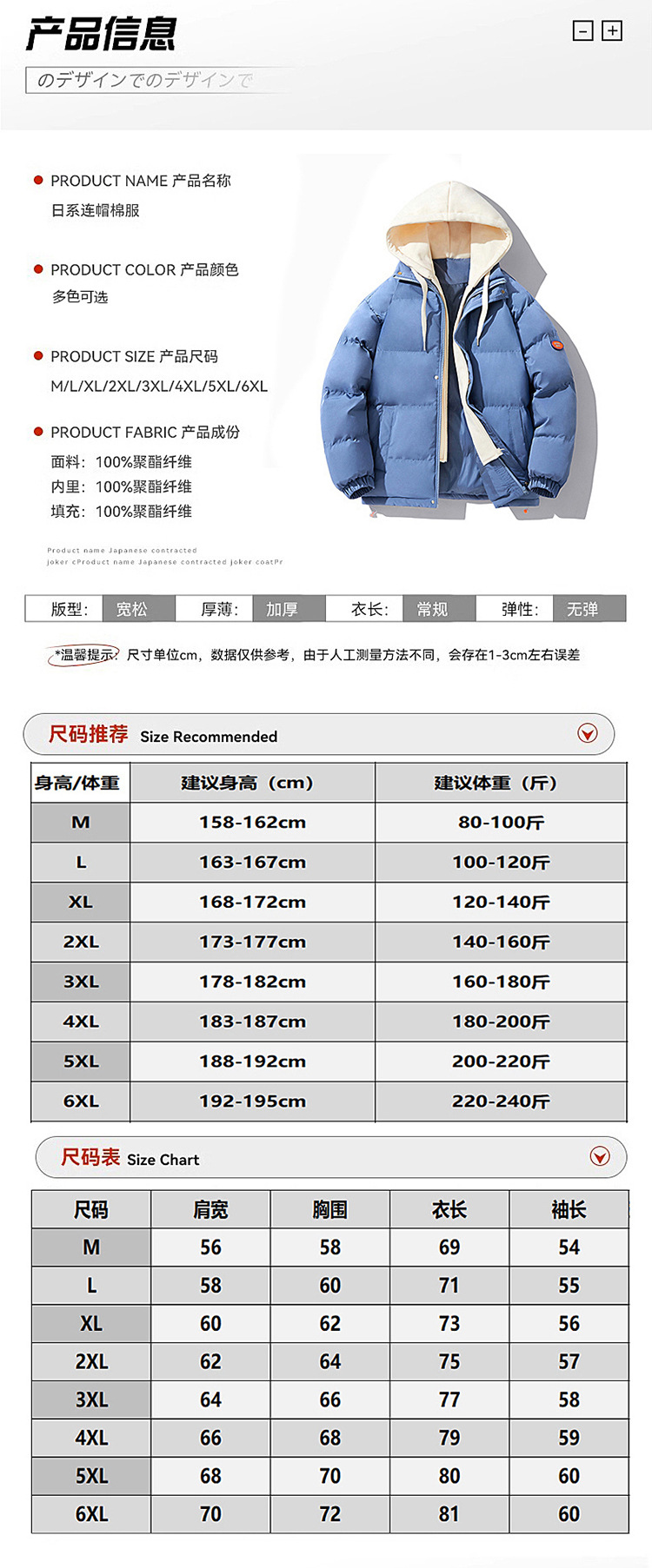 2025 хлопчатобумажная зимняя хлопчатобумажная одежда мужская толстая хлопчатобумажная куртка женская с капюшоном