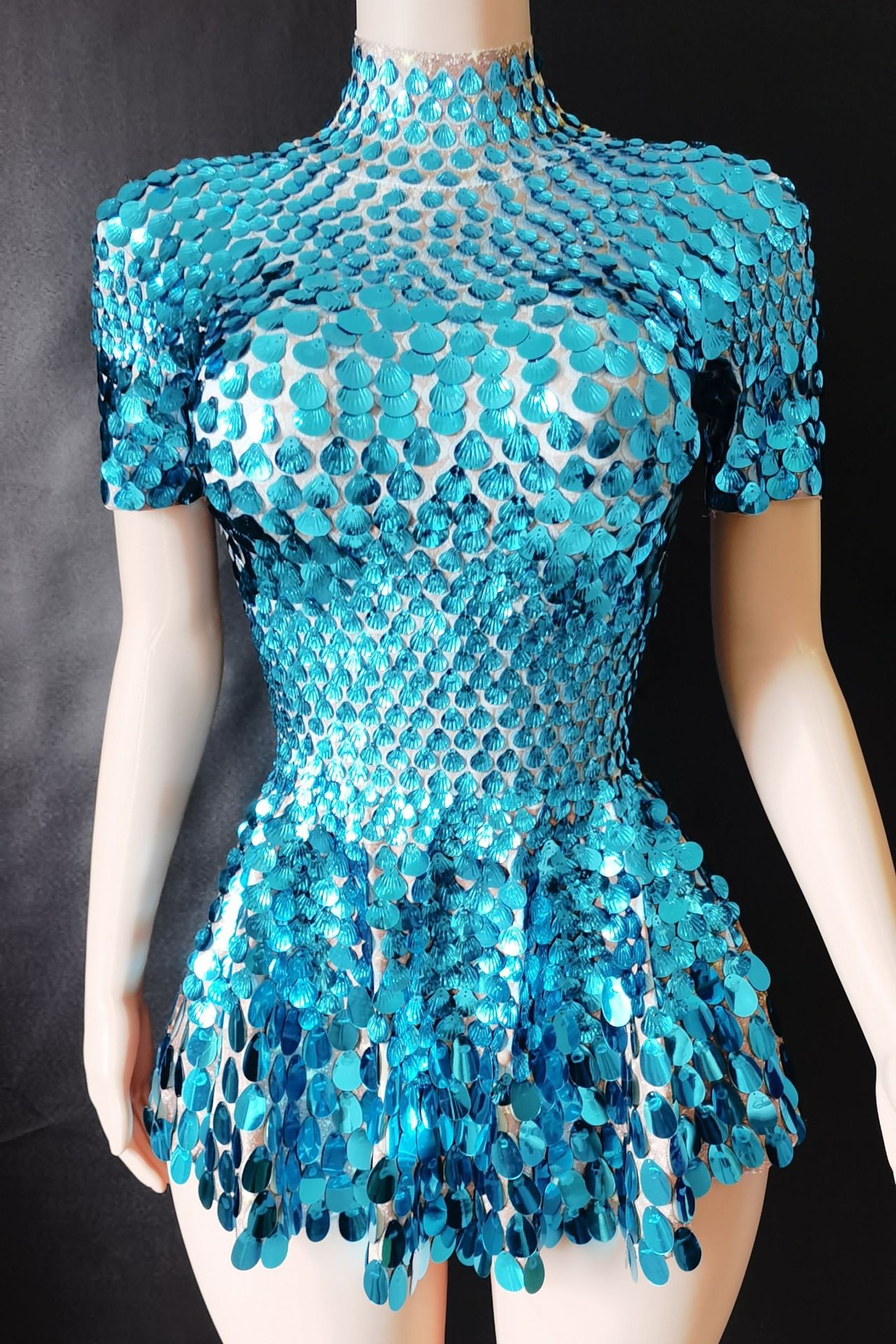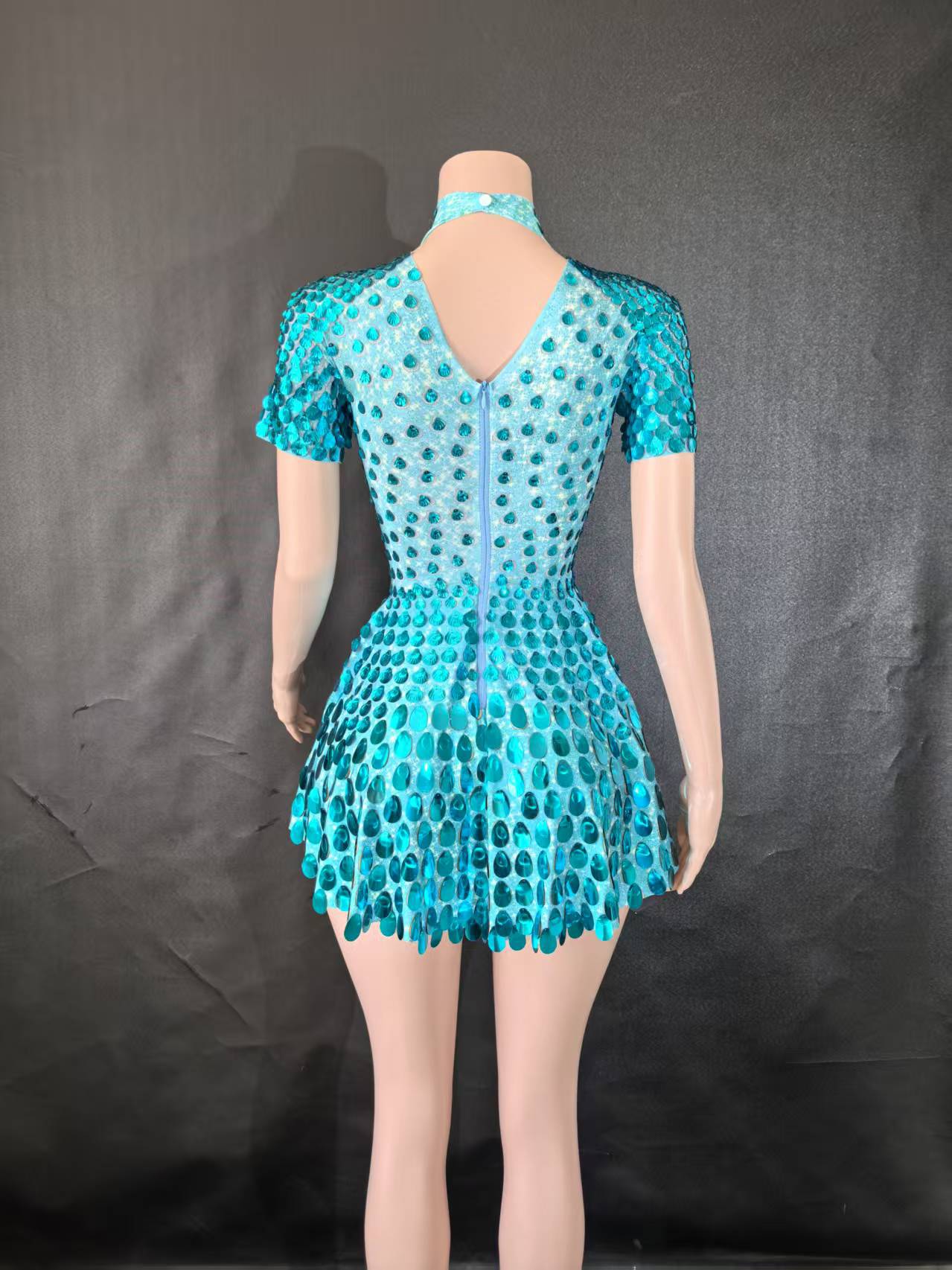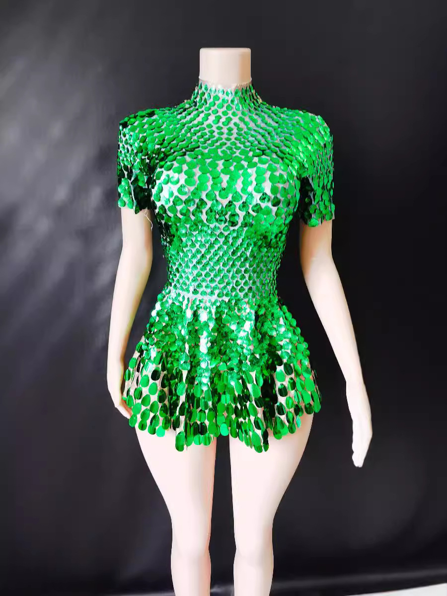Nuvans Летняя новая зеленая круглая блестка обтягивающие сексуальные мини-юбки с шеей без спинки на молнии Вечерняя вечеринка