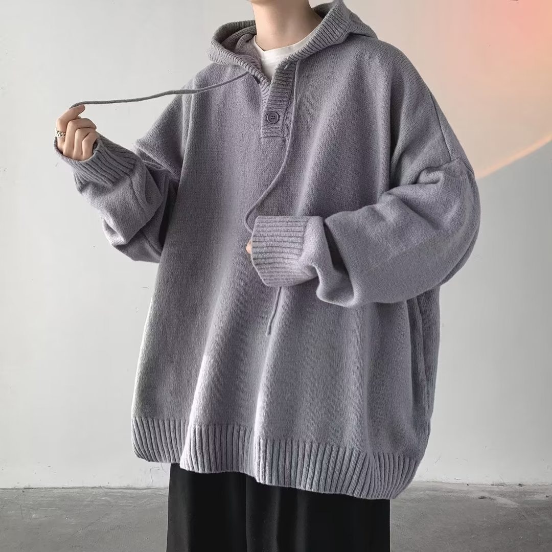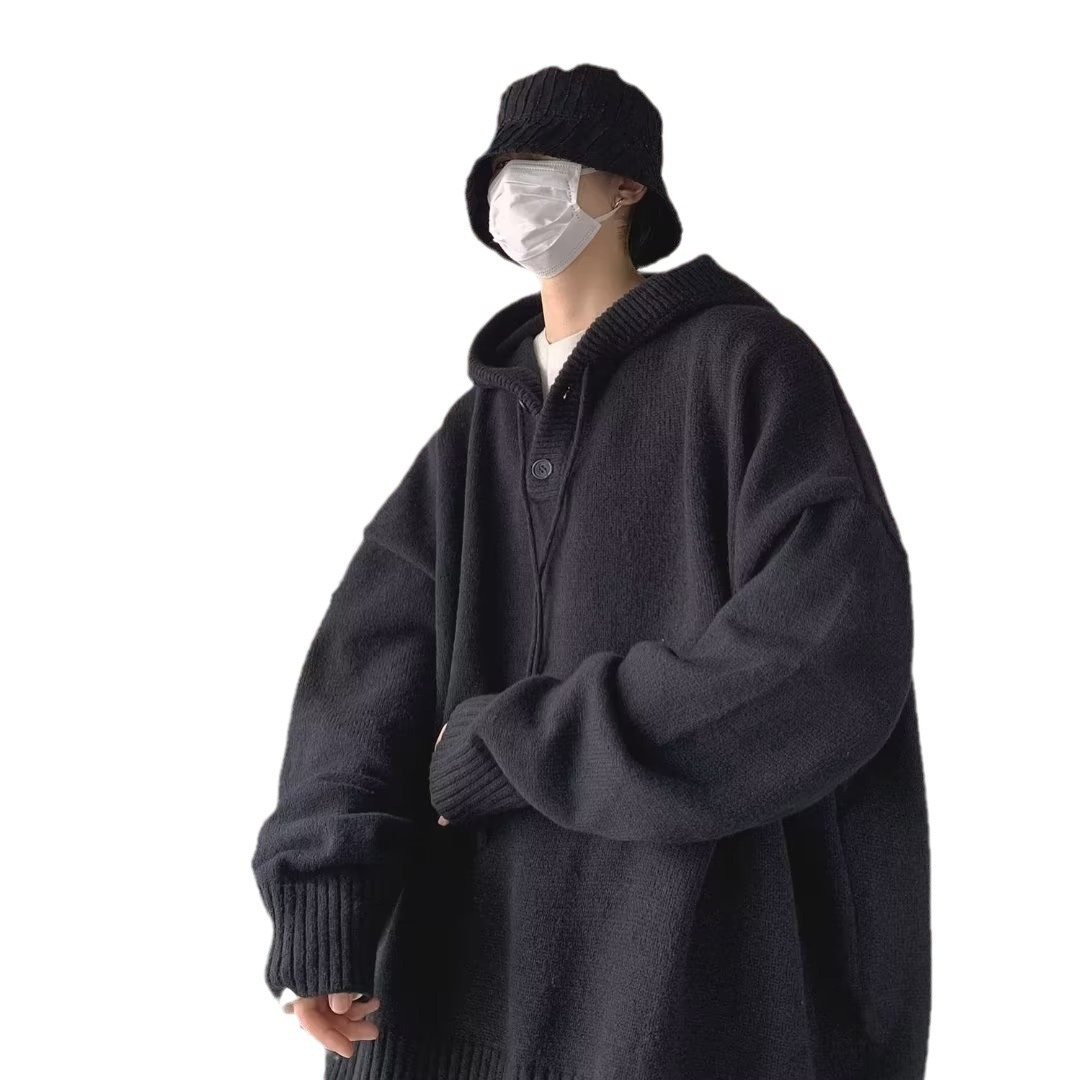 Vintage Американский ретро ленивый стиль пуговицы с капюшоном свитер мужской дизайн чувство нишевые красивые ленивые свитера