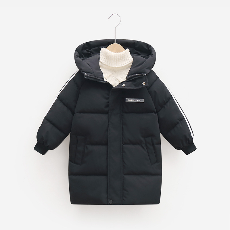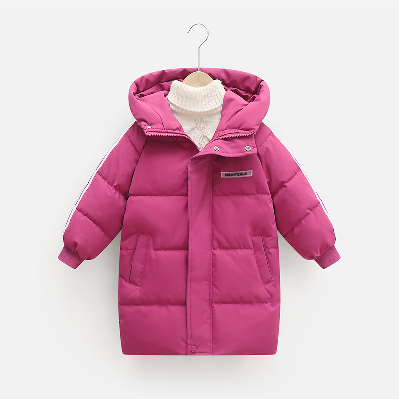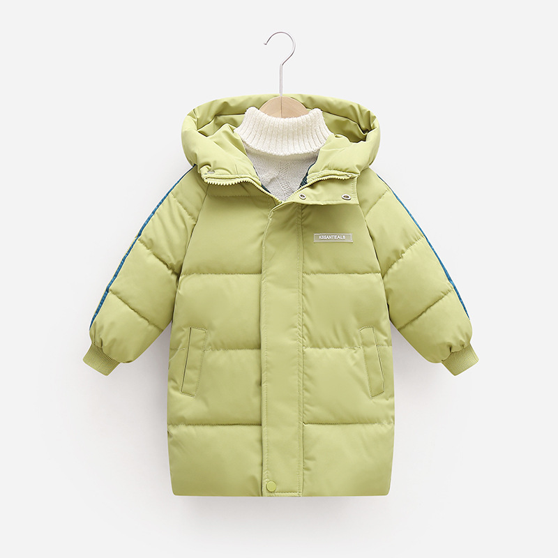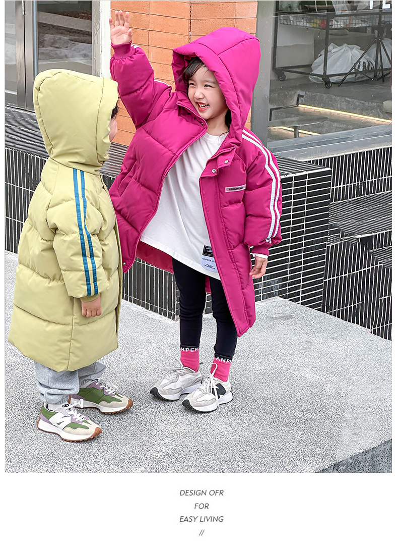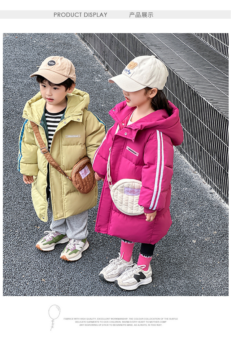 Новая детская утепленная куртка 2025 года, средней длины, в корейском стиле, для мальчиков и девочек, удлиненное утепленное хлопковое пальто до колен, оптом.