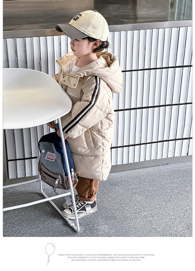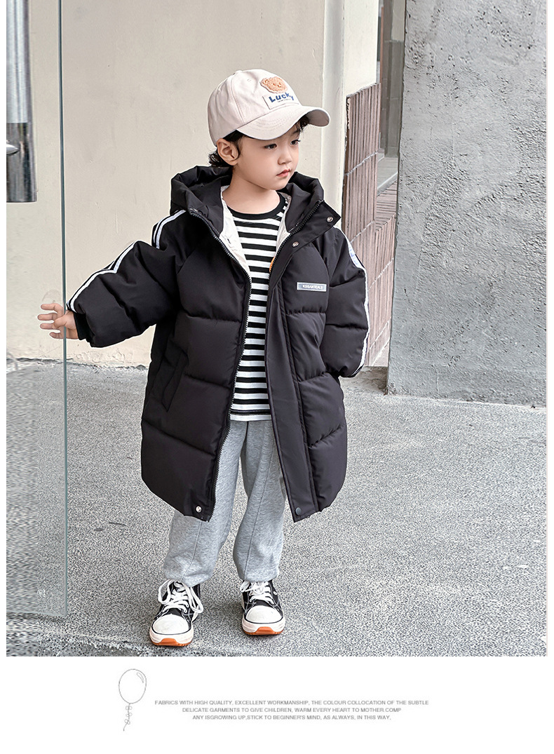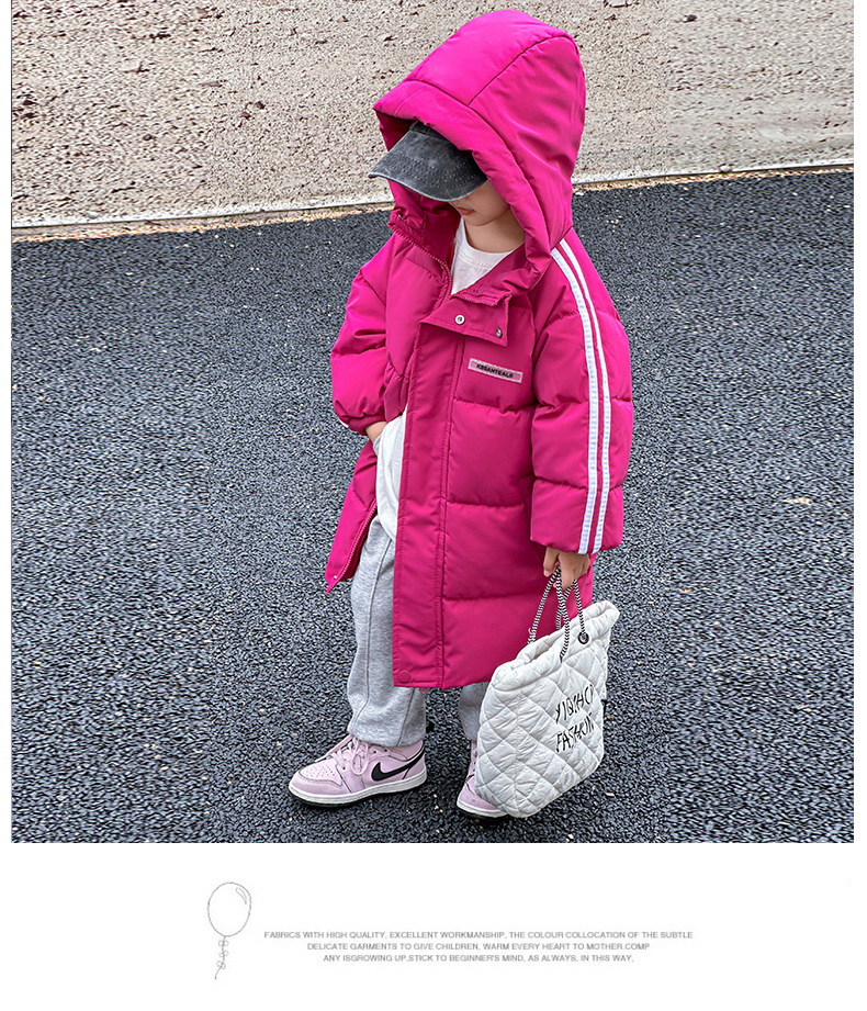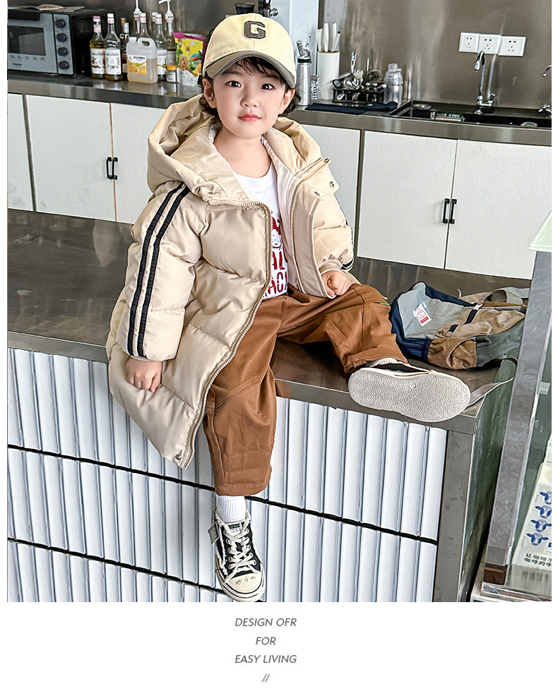 Новая детская утепленная куртка 2025 года, средней длины, в корейском стиле, для мальчиков и девочек, удлиненное утепленное хлопковое пальто до колен, оптом.