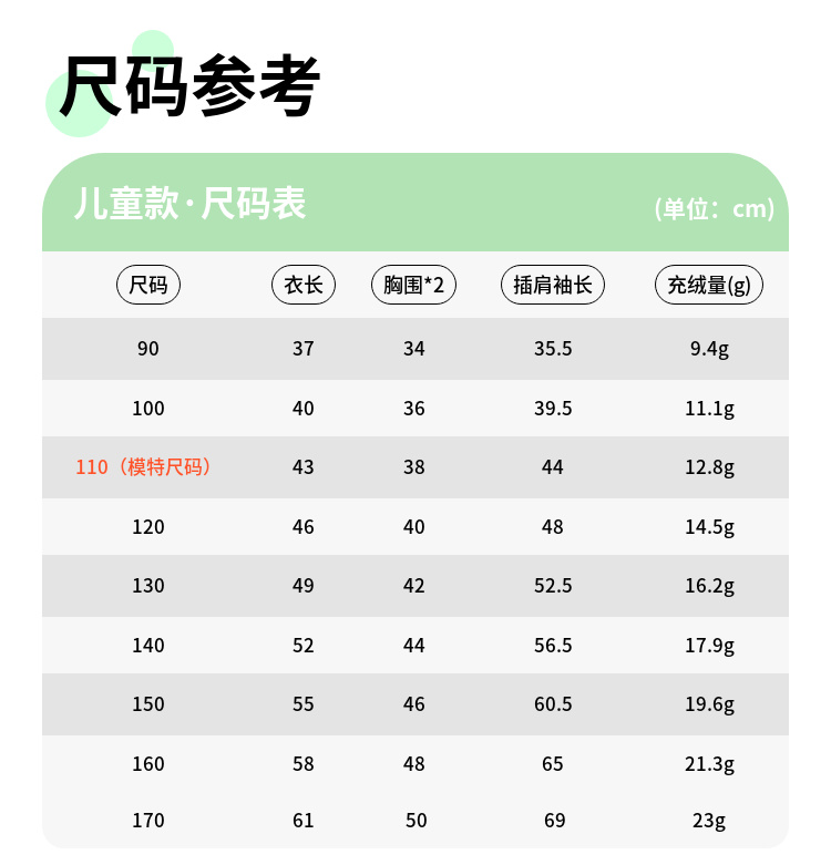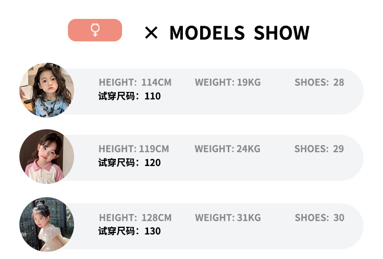Размер 100, рост около 100 см.; Размер 110, рост около 110см (размер модели); Размер 120, высота около 120 см.; Размер 130, высота около 130 см.; Размер 140, высота около 140 см.; Размер 150, рост около 150см.; Размер 160, высота около 160см.; Размер 170 подходит примерно на 67.5kg