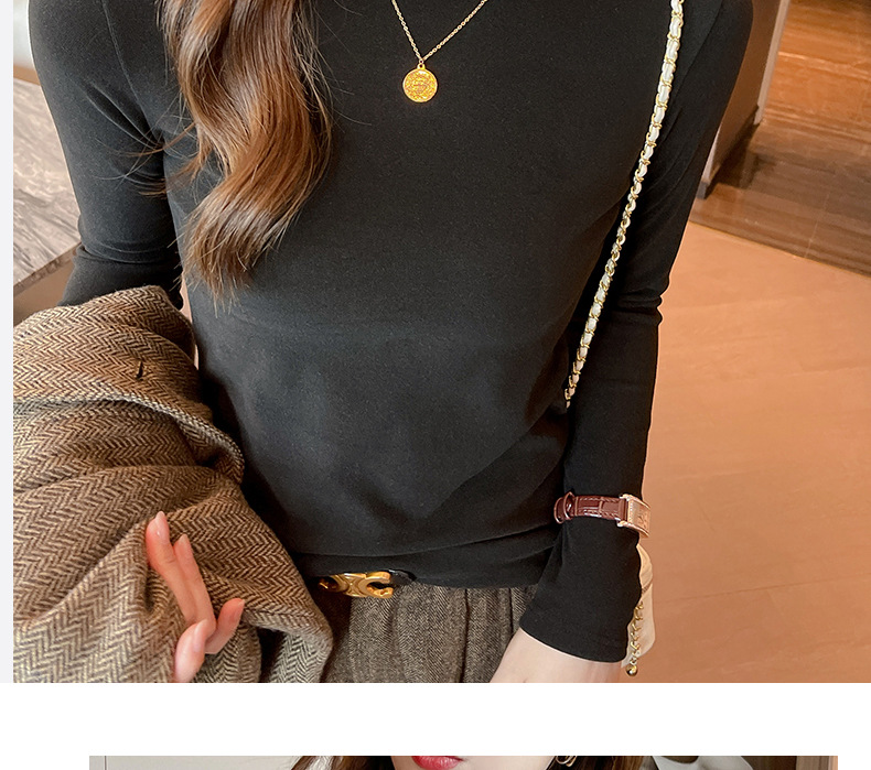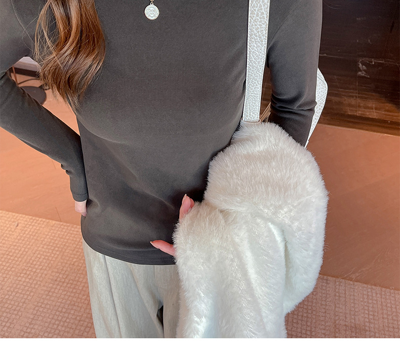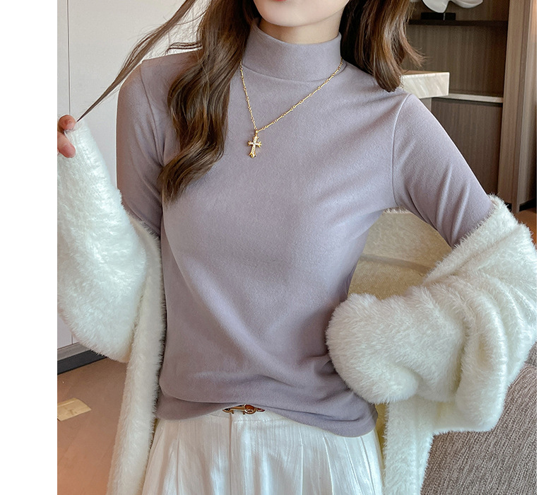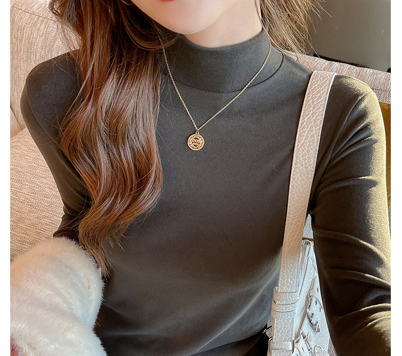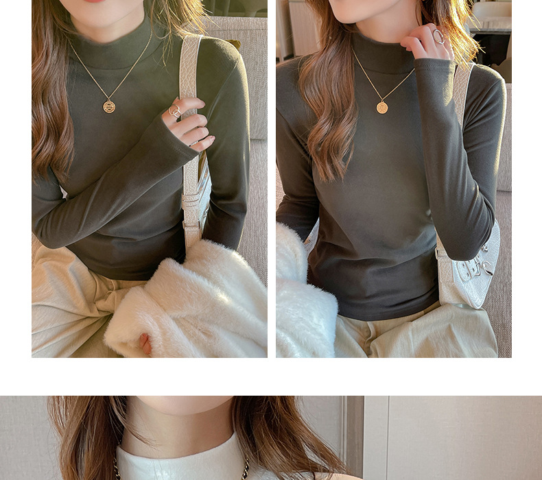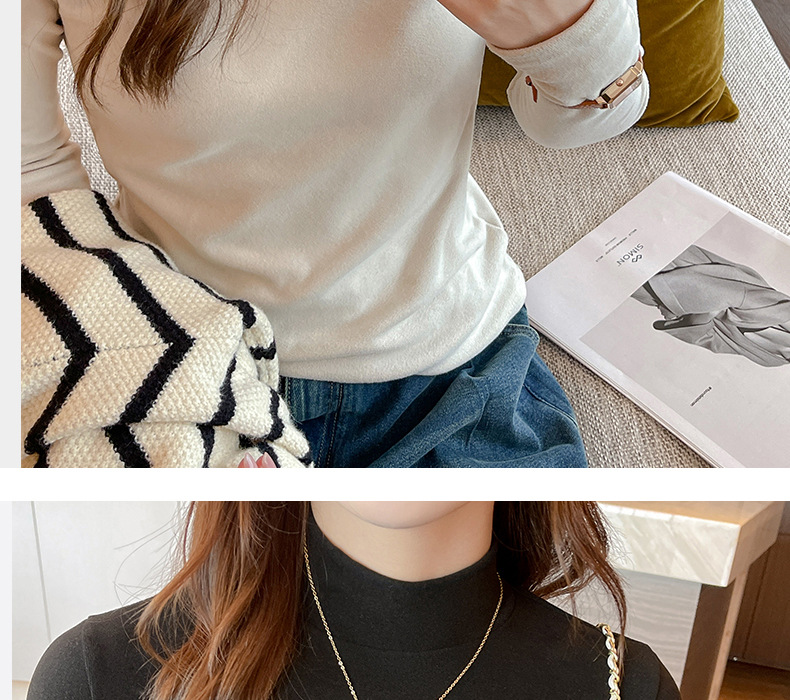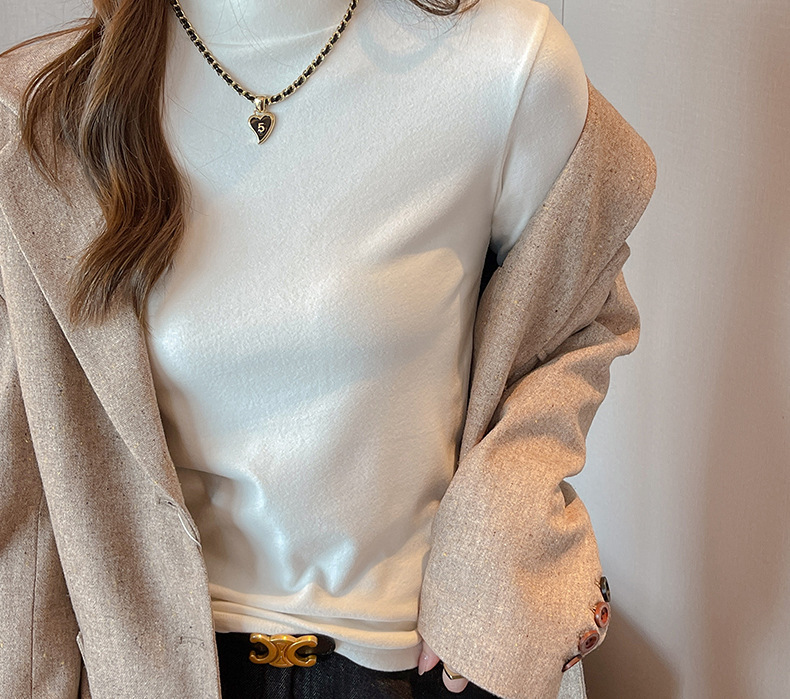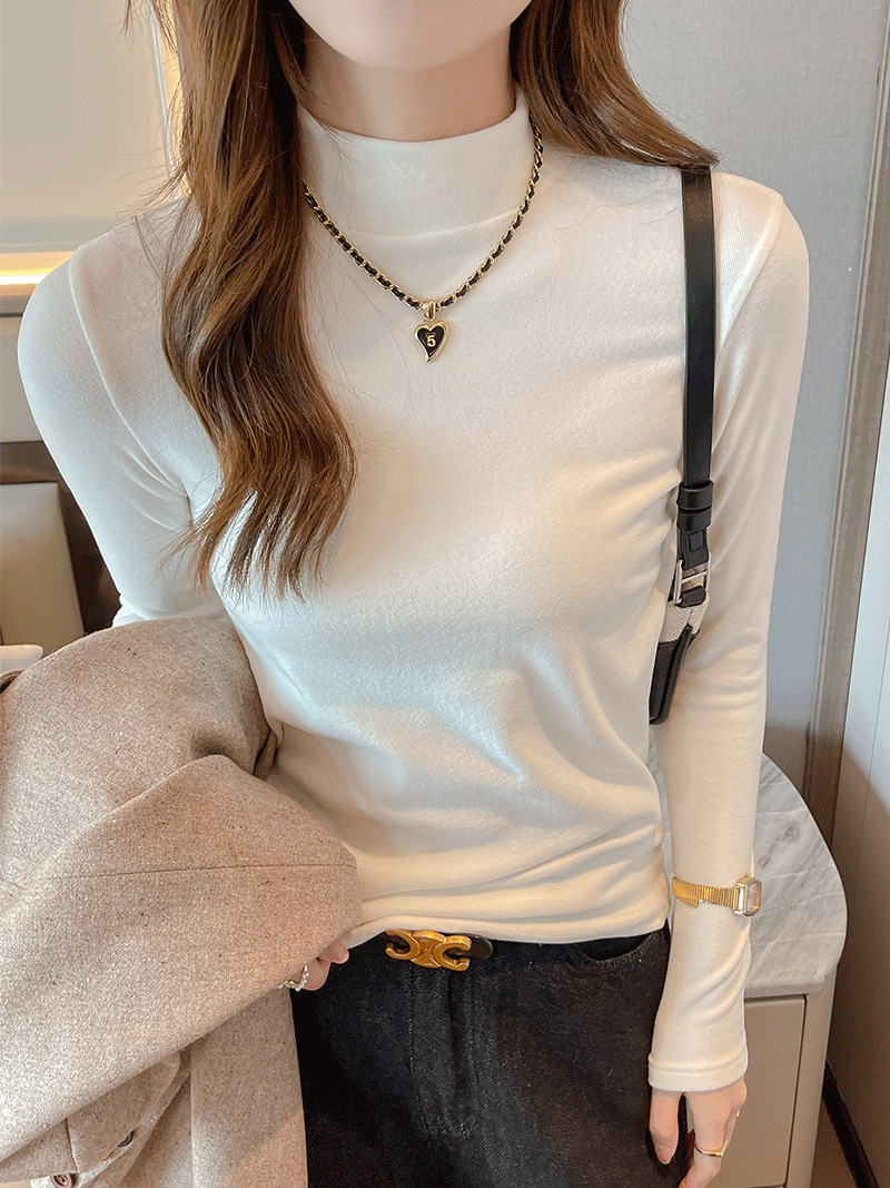 Фабричная белая бархатная рубашка с полугольфом для женщин, осенне-зимний стиль, футболка с длинными рукавами и средним воротником, которую можно носить на улице.