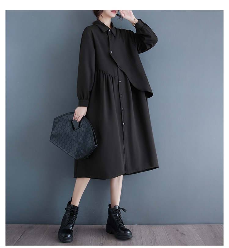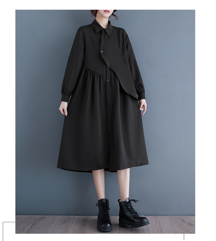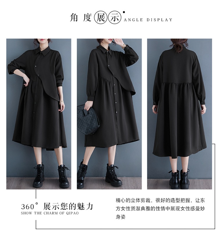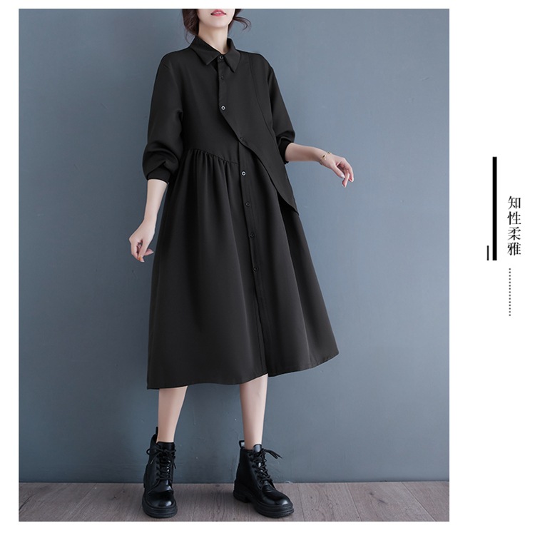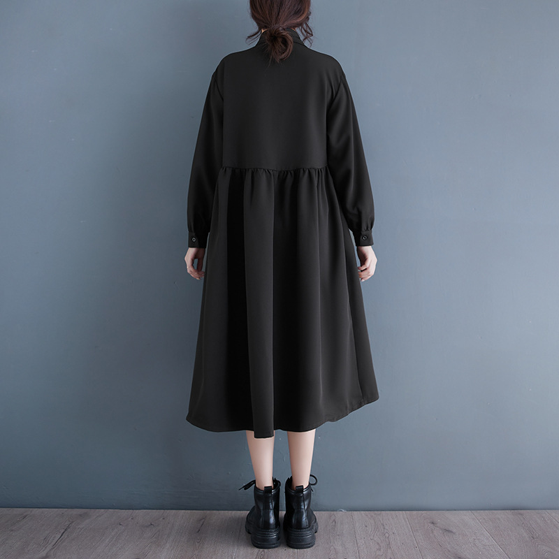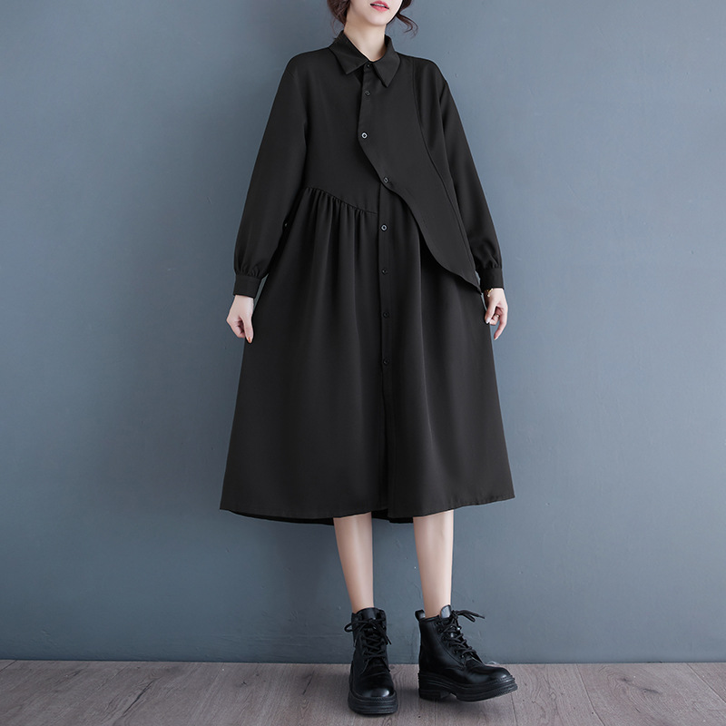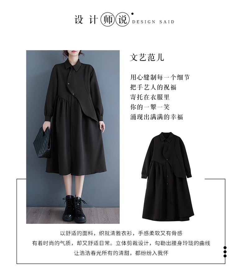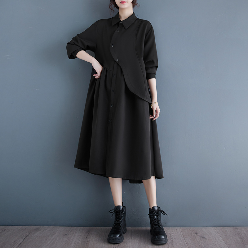 2024 Нерегулярная нишевый стиль Хепберн черная рубашка платье ранней осенью